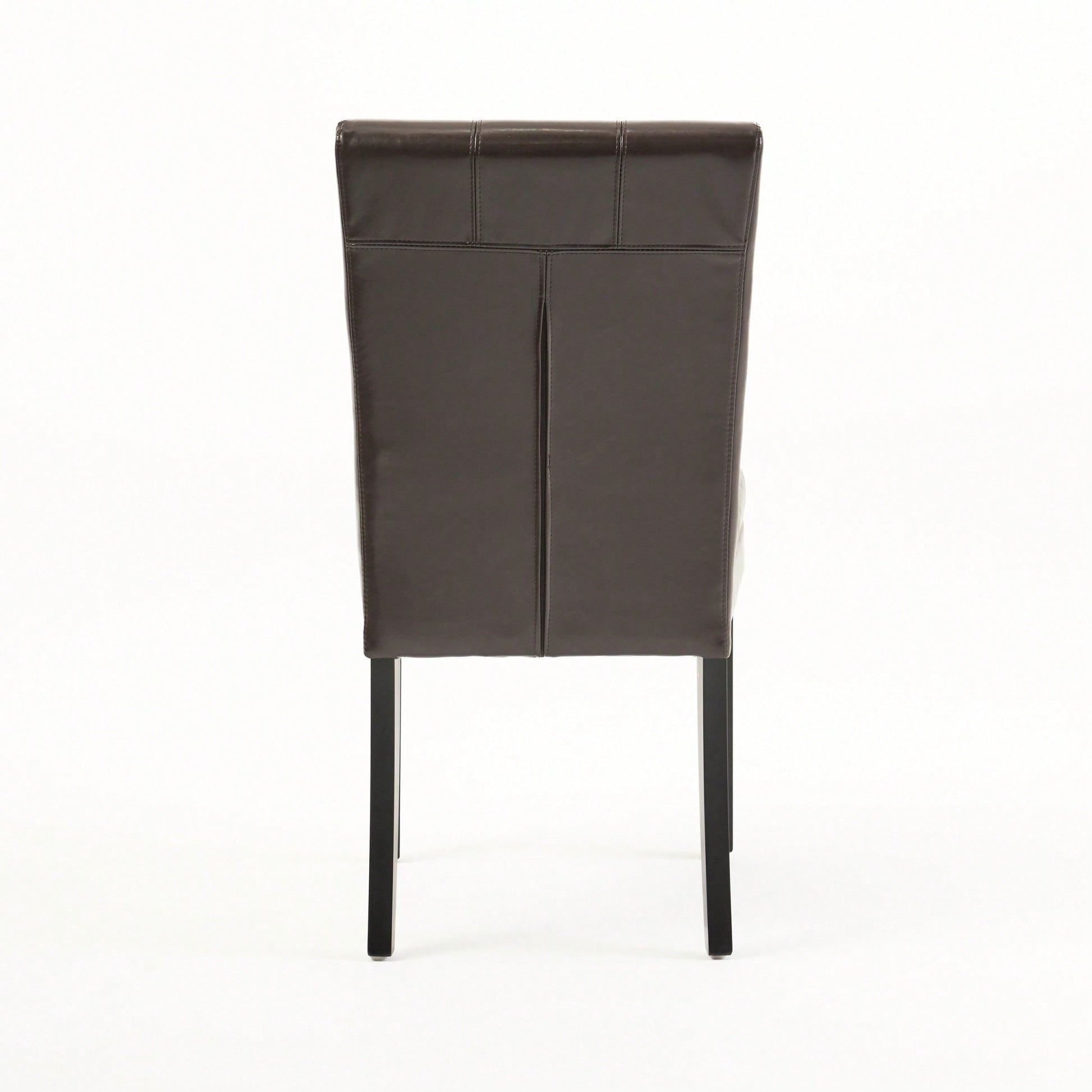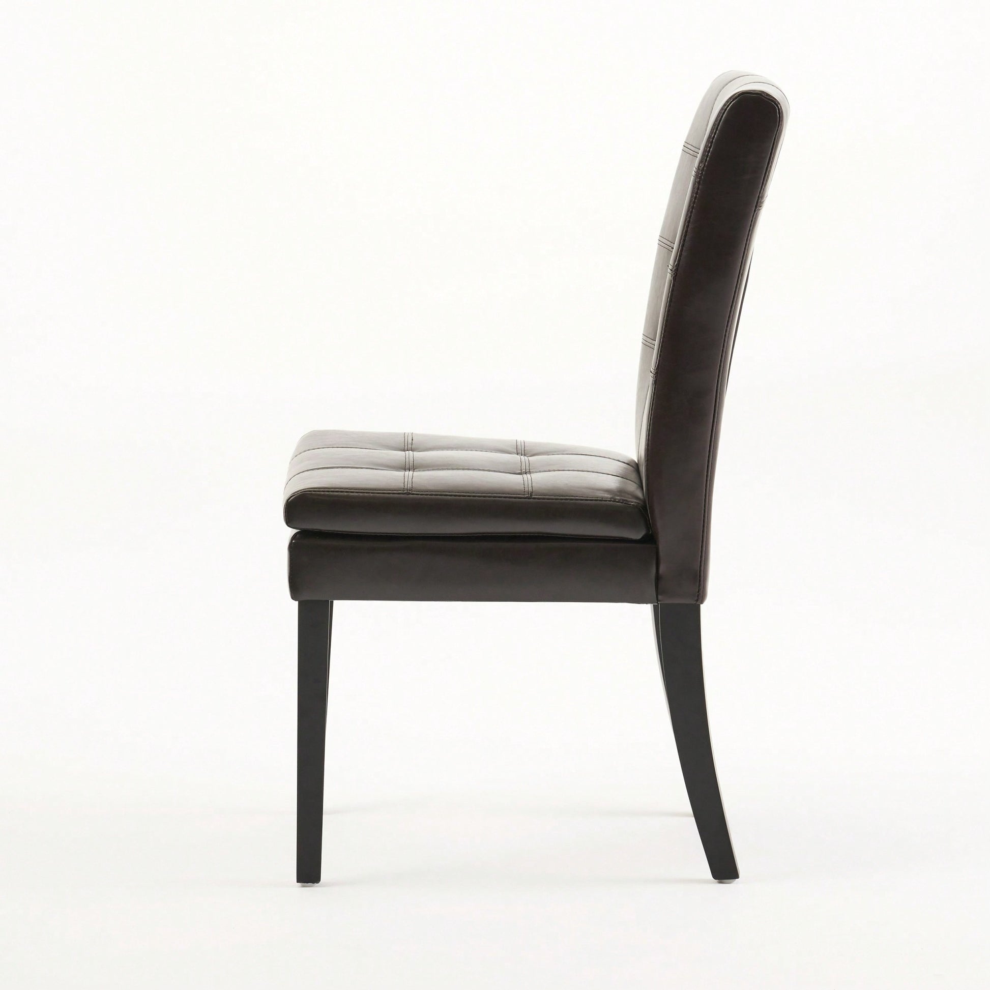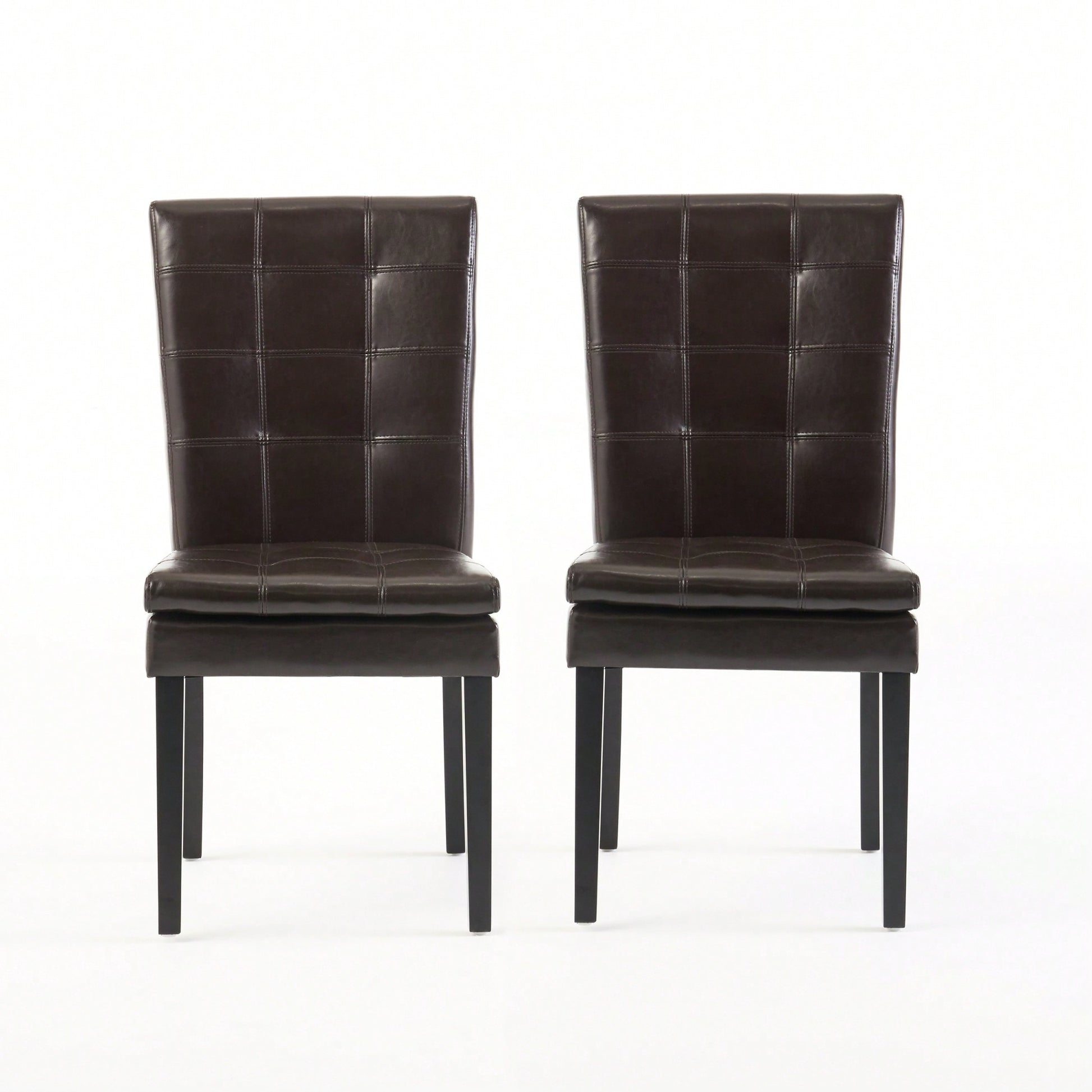 These bonded leather dining chairs are a perfect addition to any dining space, offering both comfort and style. Constructed from strong hardwood, they feature well-padded seats covered in soft brown bonded leather. The unique tufted back design enhances the overall aesthetic, making them a great fit for modern decor. With their sleek profile and refined contours, these chairs provide a contemporary charm that complements various interior themes. Designed for versatility, they are suitable for everyday dining, special occasions, and gatherings, ensuring an elegant touch to your dining area for years to come.