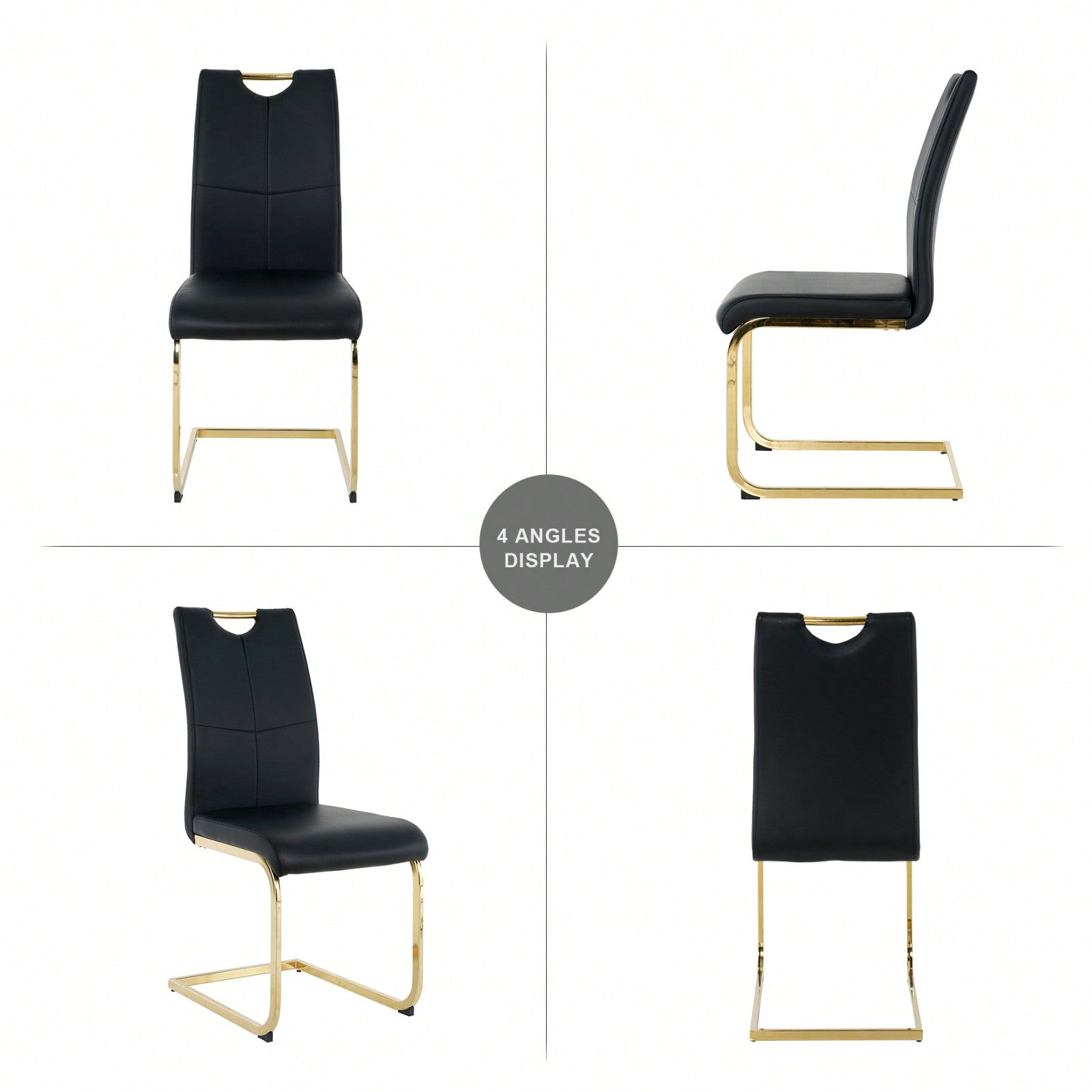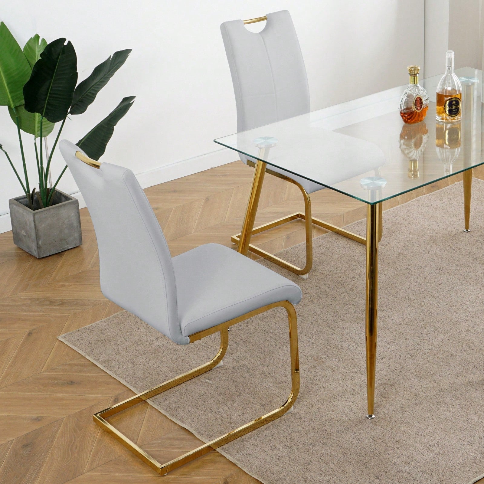 Set Of 2, Modern Dining Chairs With Faux Leather Padded Seat Upholstered Chair With Gold Metal Legs For Kitchen, Living, Bedroom