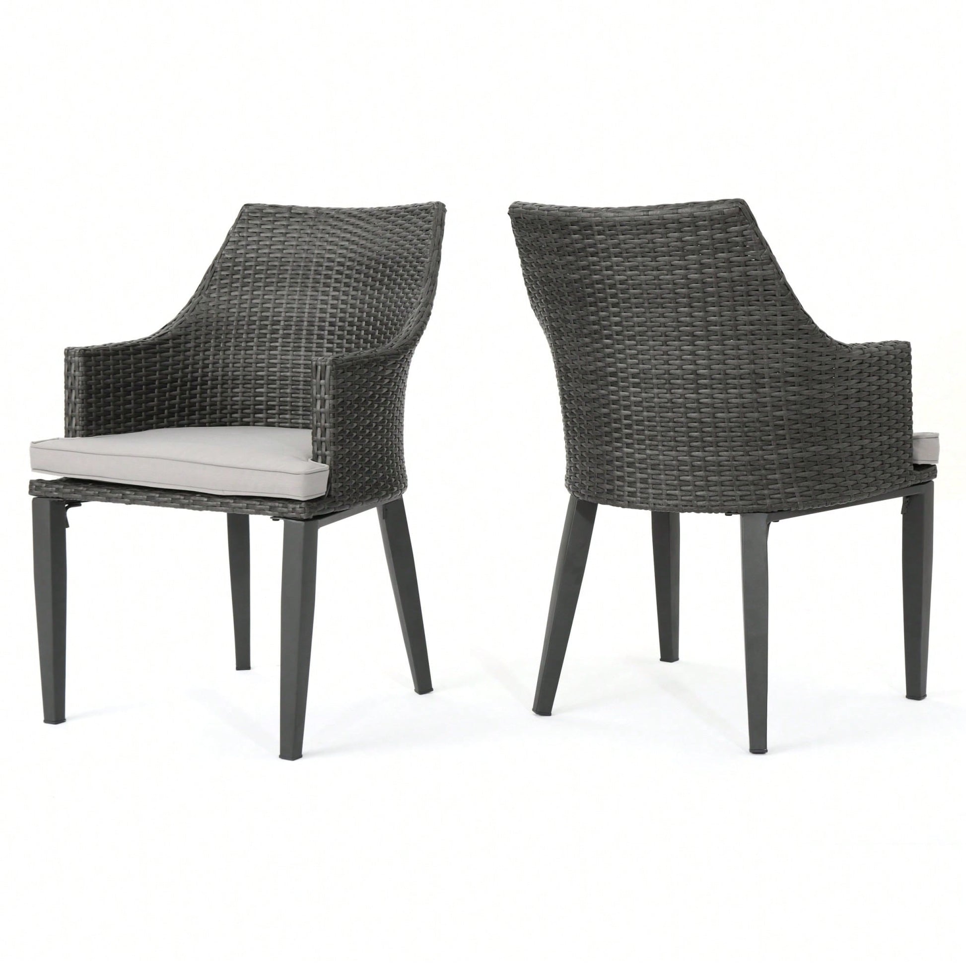 This outdoor chair set is designed for relaxation and style, making it an ideal choice for your patio or garden. The chairs are constructed from premium rattan and adhere to high manufacturing standards, ensuring long-lasting use. Each set includes two chairs, perfect for entertaining or leisurely afternoons outside. The cushions are crafted from weather-resistant polyester fabric, providing both comfort and protection from the elements. With a modern aesthetic and strong construction, these chairs are a wonderful addition to any outdoor space.