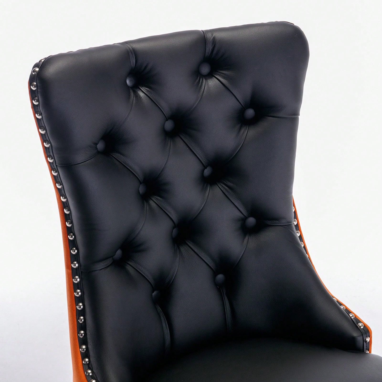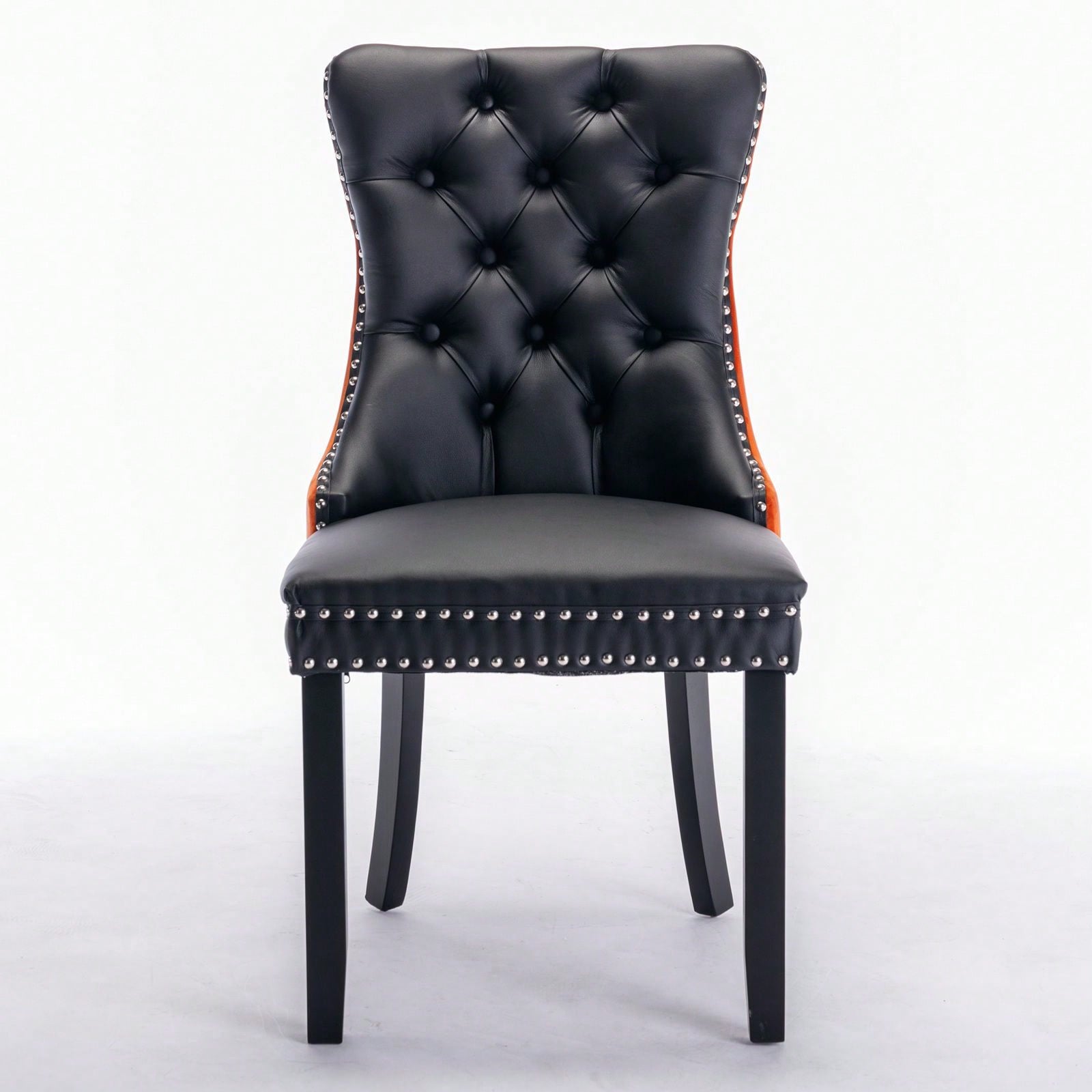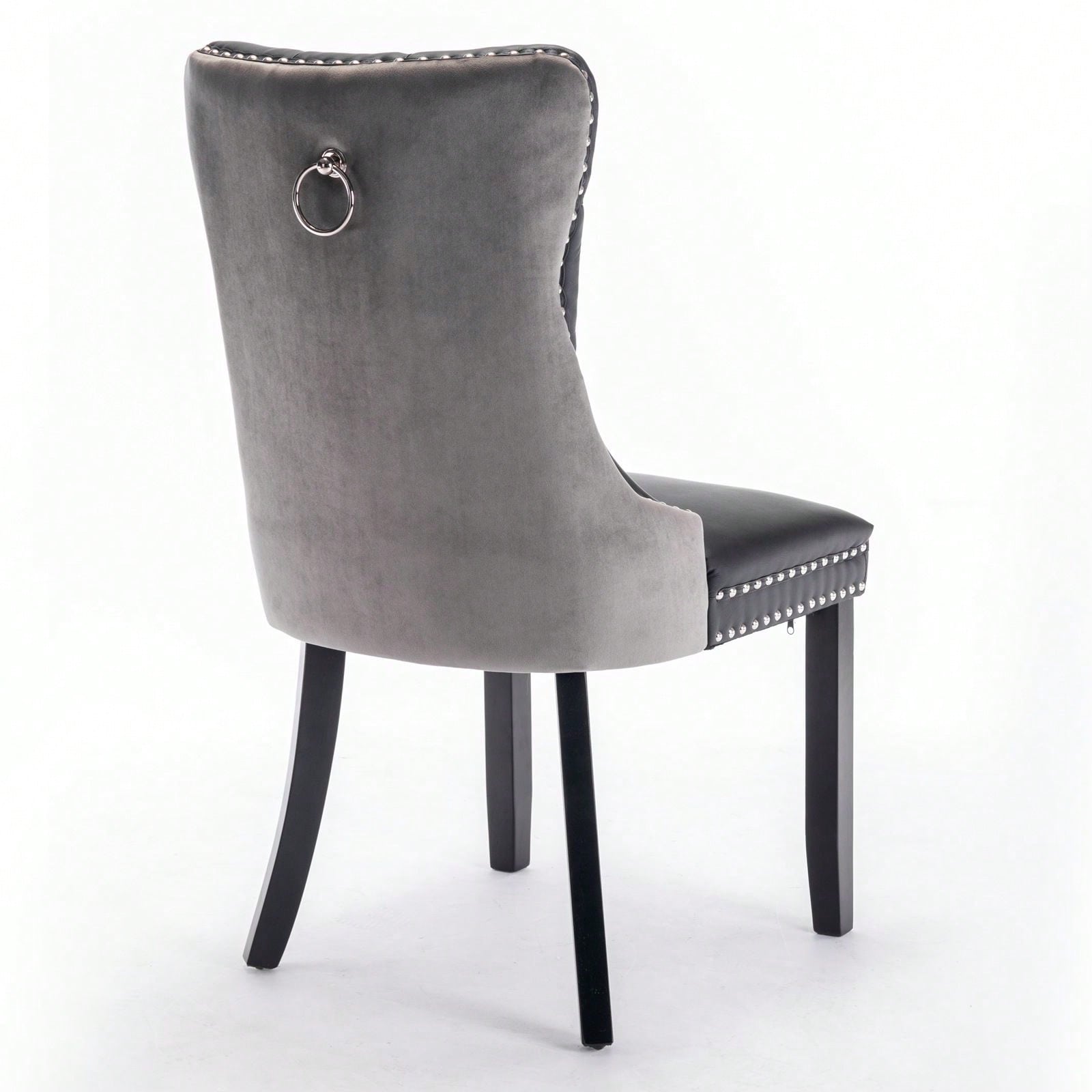 1. Modern and high-end tufted solid wood contemporary PU and velvet upholstered dining chair with wood legs nailhead trim.