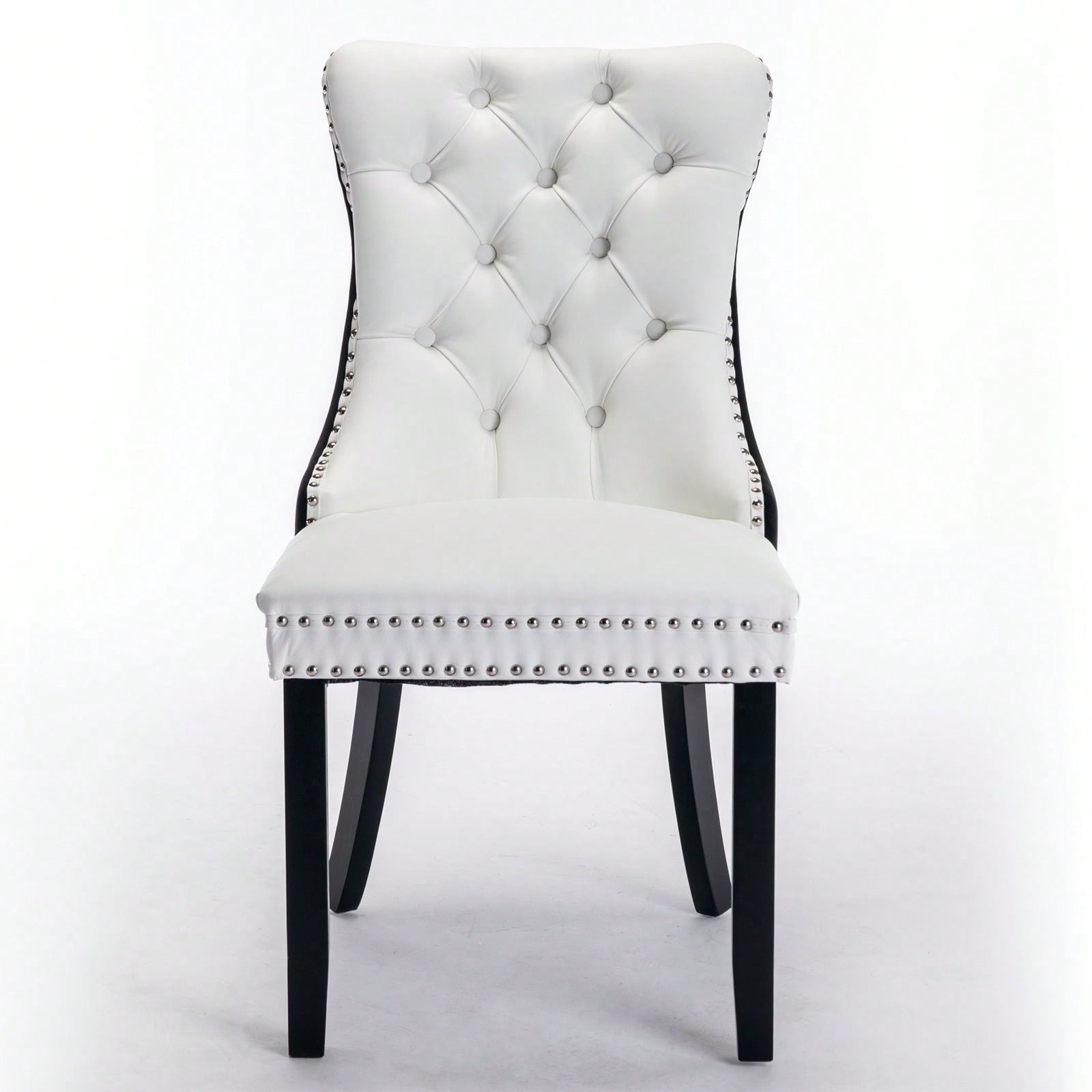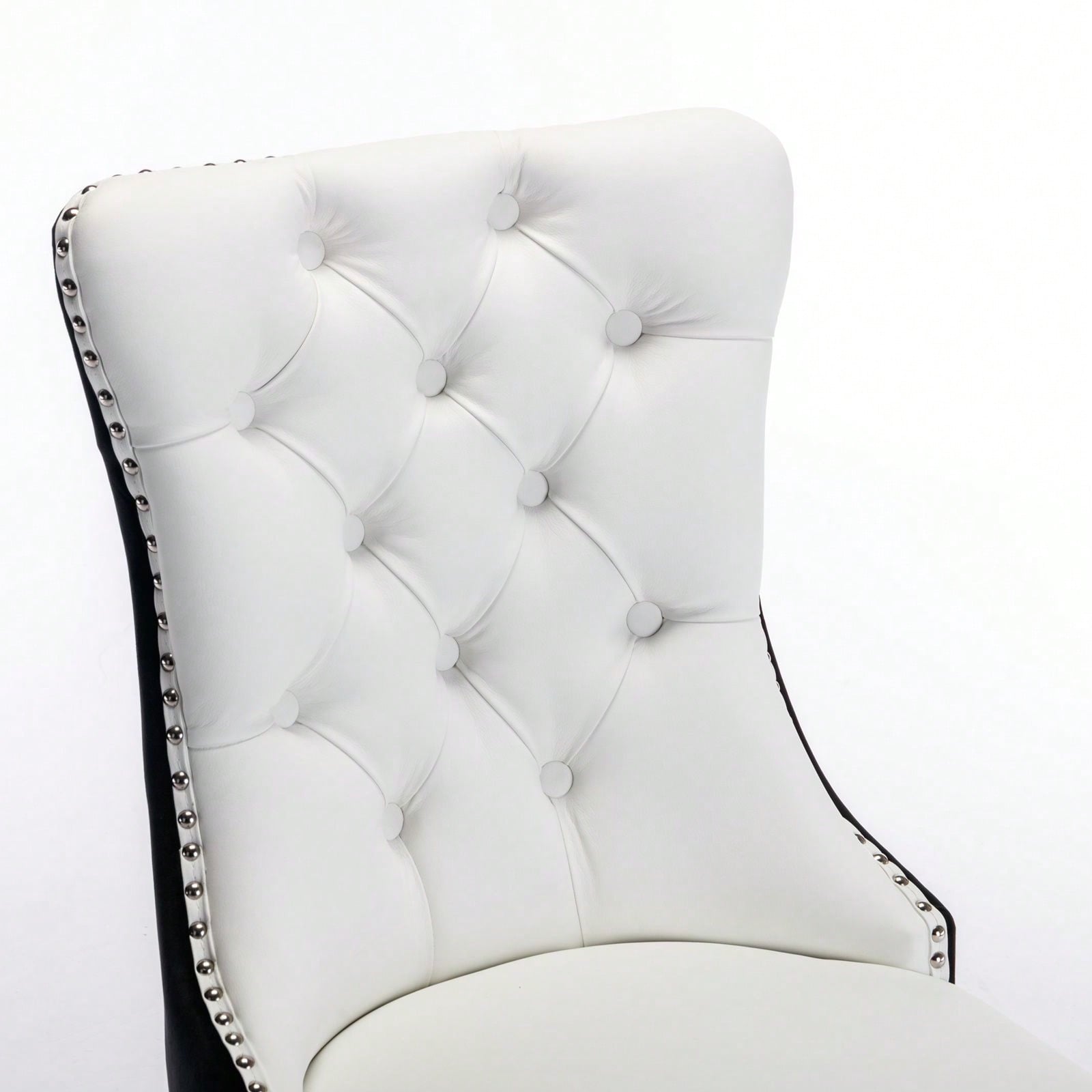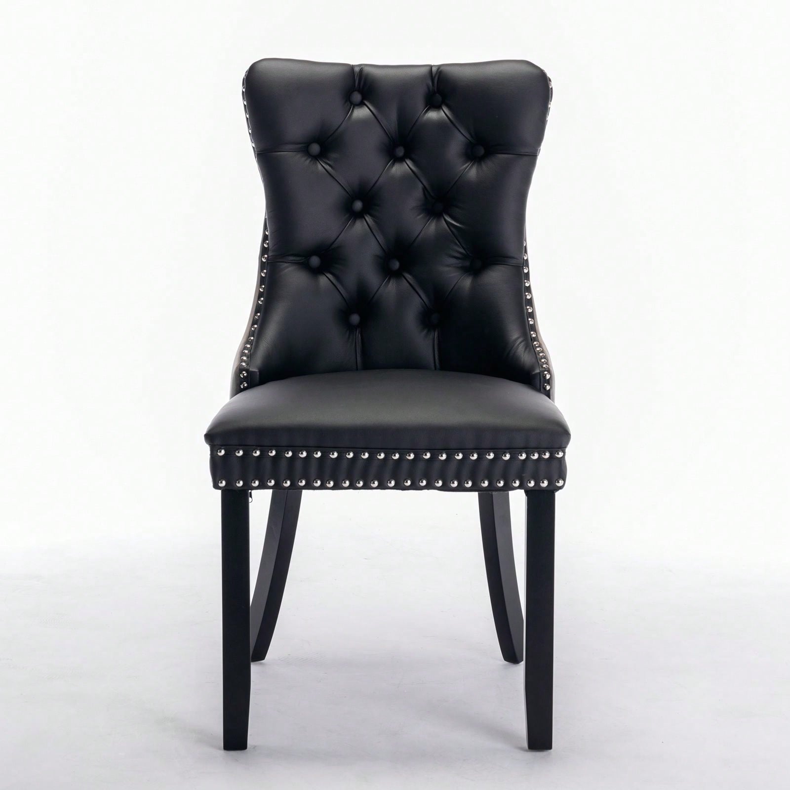 1. Modern and high-end tufted solid wood contemporary PU and velvet upholstered dining chair with wood legs nailhead trim.