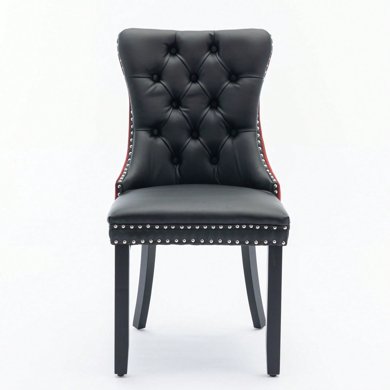 Modern High-End Tufted Dining Chairs Set of 2 Velvet Upholstered Wood Legs Nailhead Trim Black and Wine Red