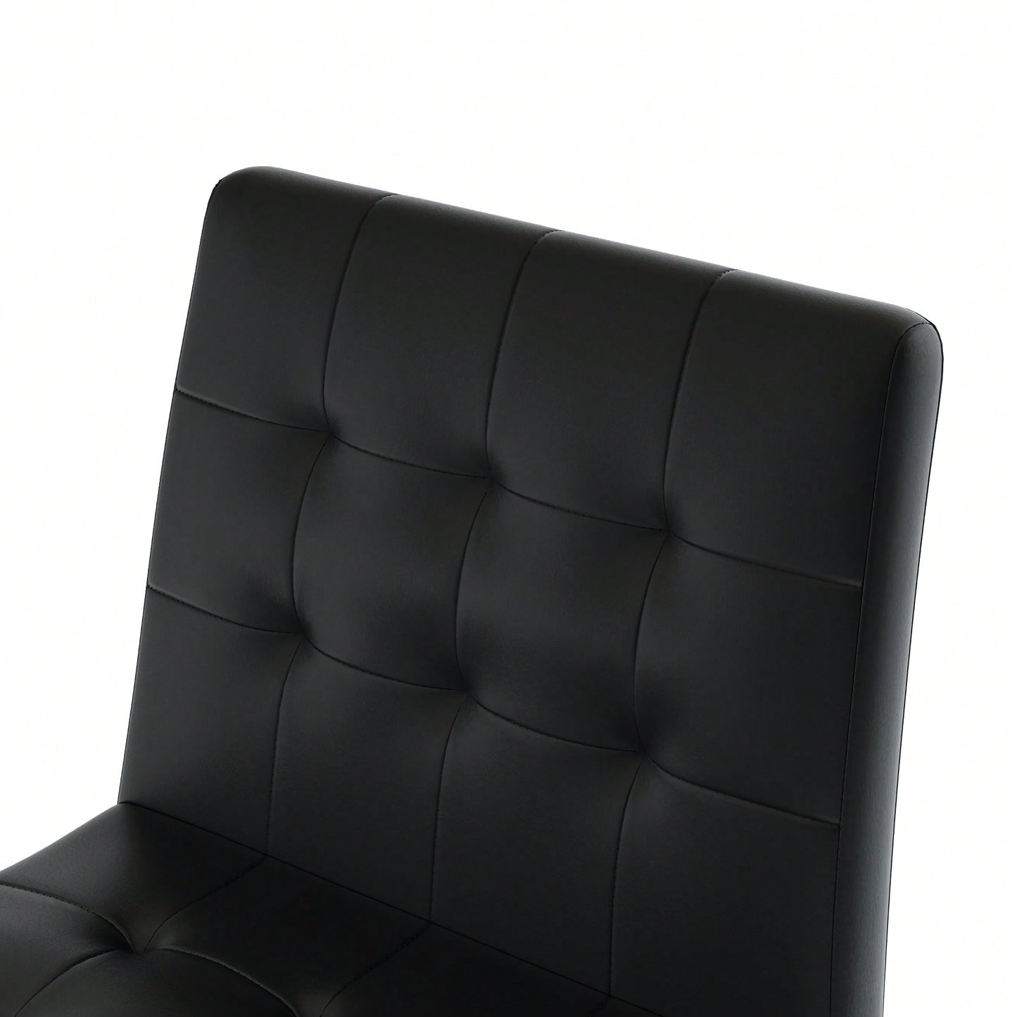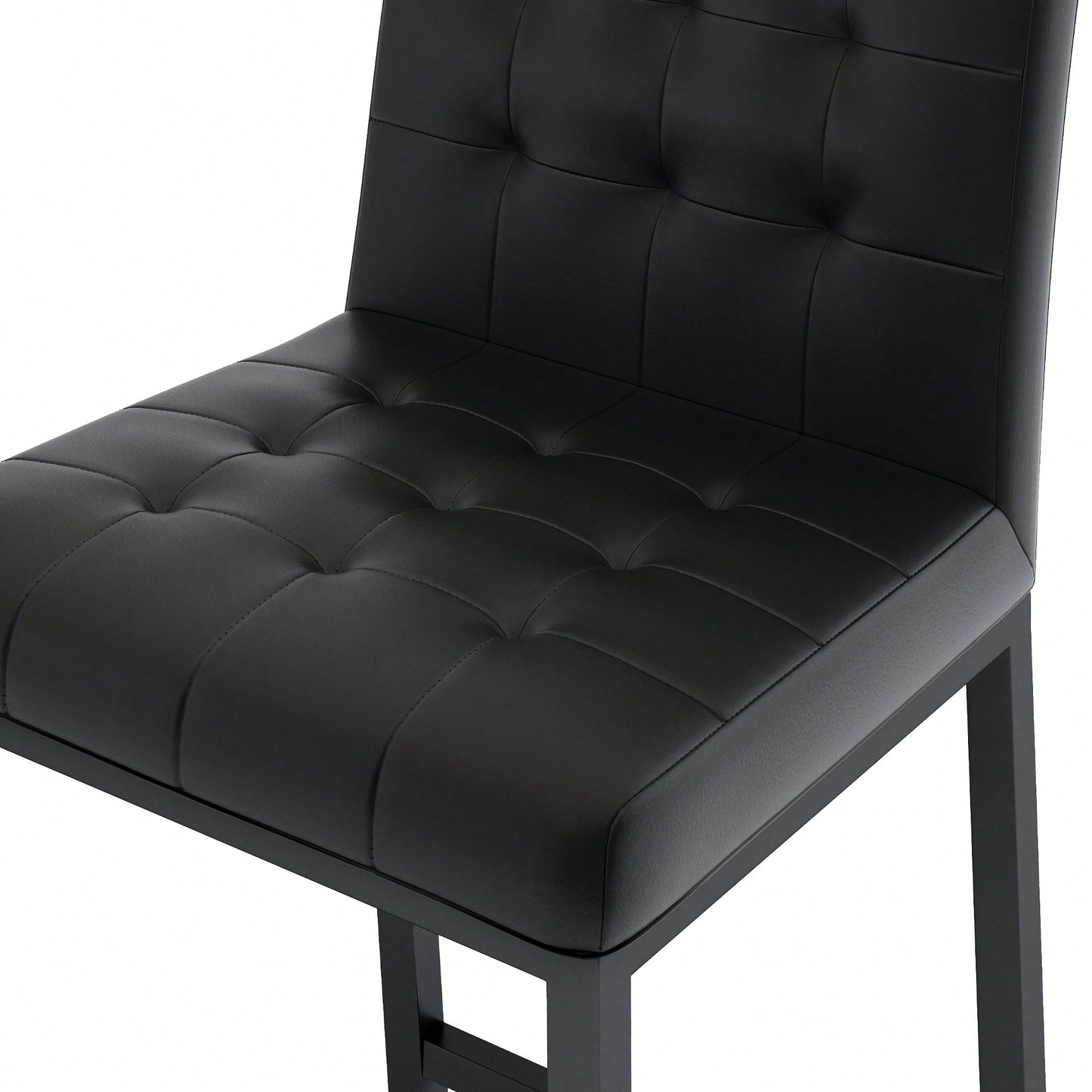 - Modern design high stool with metal legs - Black PU seating with a unique grid style - Sturdy frame with a thickness of 1.2mm for enhanced stability - Easy assembly with only 4 screws required - Suitable for high-end venues like bars and restaurants This set of two modern bar stools features a sleek design with black PU seating and durable metal legs. The fresh thick sponge cushioning ensures comfort, while the backrest's gentle curve provides ergonomic support. The unique grid style adds a touch of elegance, making these stools a perfect fit for upscale environments. The robust frame can support weights up to 150kg, ensuring stability and reliability during use. Assembly is straightforward, requiring only four screws to connect the backrest and legs, making it accessible for anyone. Specifications: - Frame thickness: 1.2mm - Weight capacity: 120kg to 150kg - Package includes: 2 bar chairs, 1 AI, 1 fitting bag
