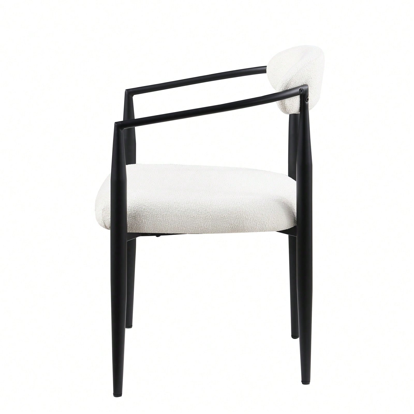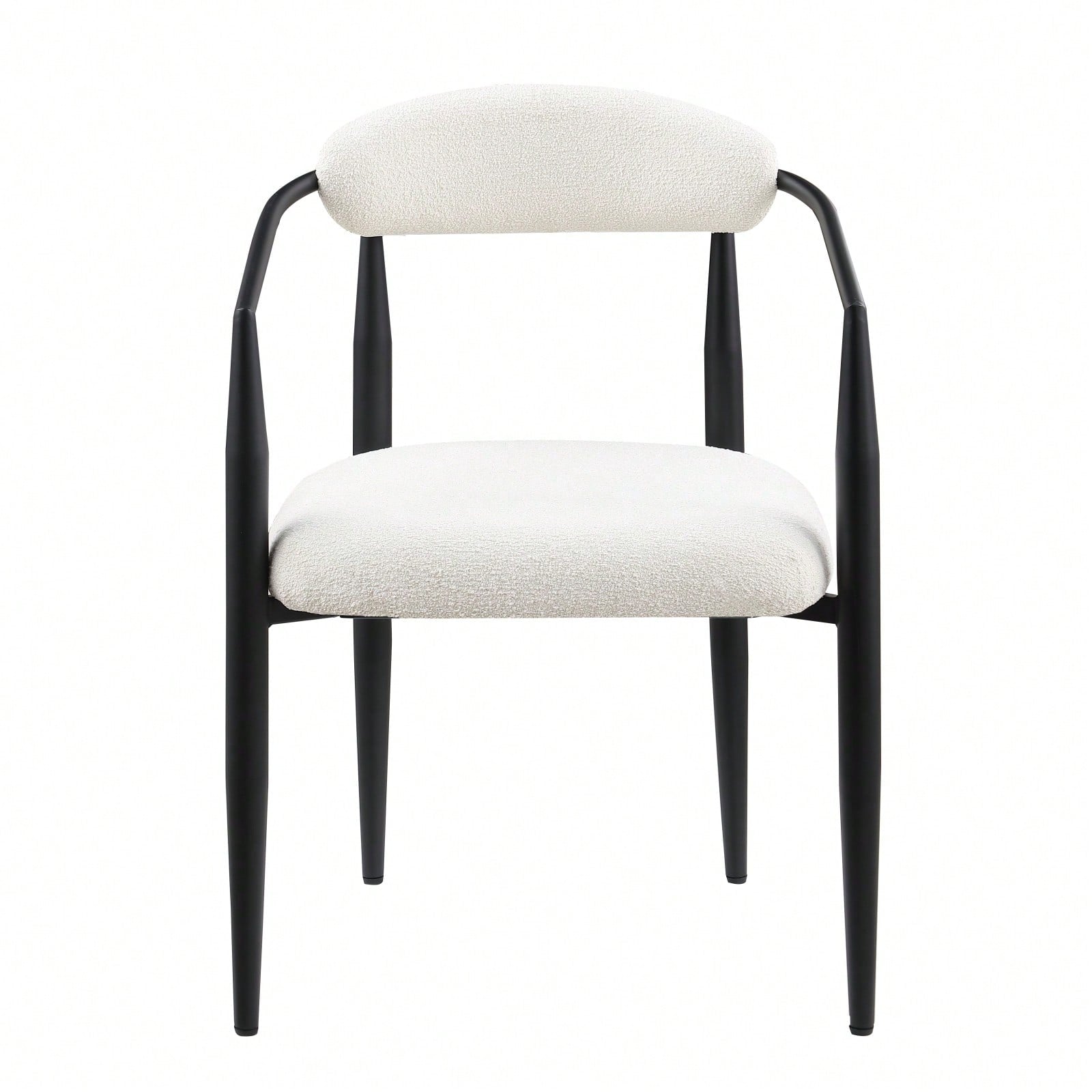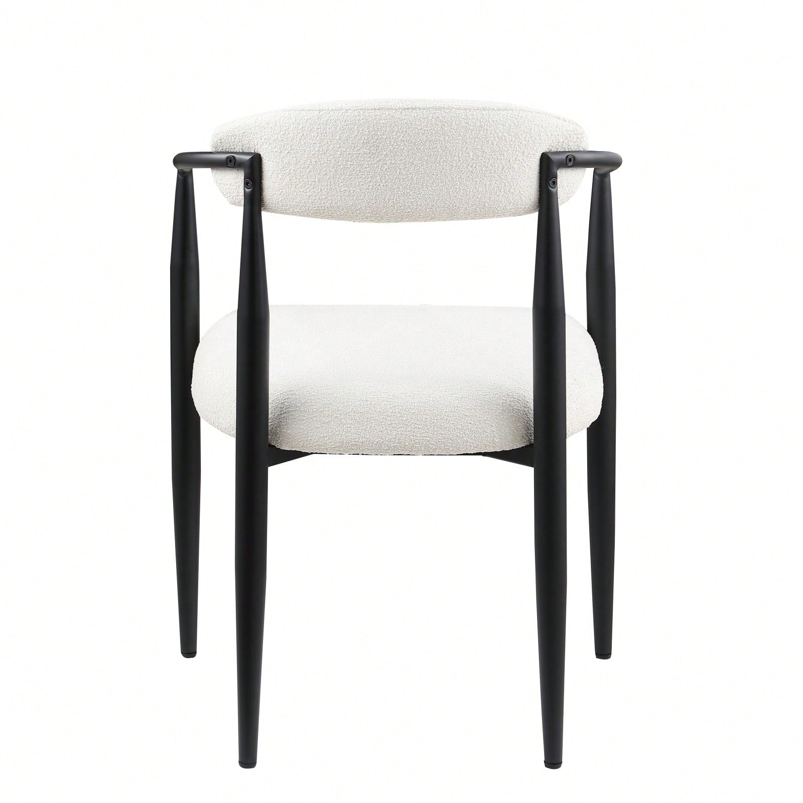 Mid-Century Modern Upholstered Dining Chairs Set of 2 with Iron Frame and Boucle Backrest Comfortable Seating for Kitchen or Dining Room