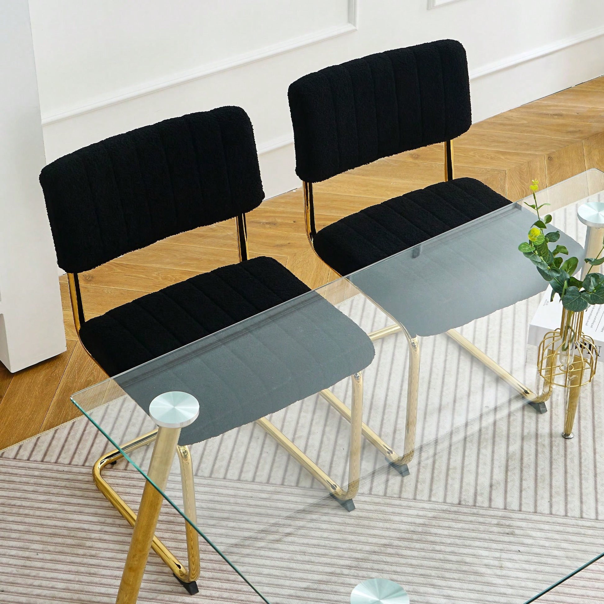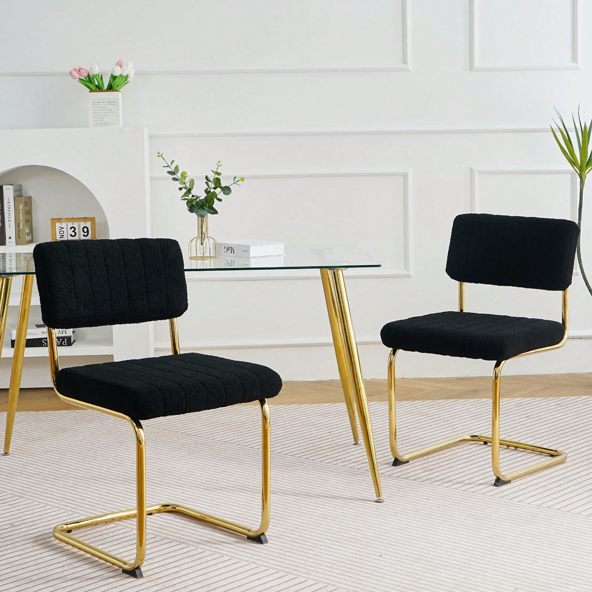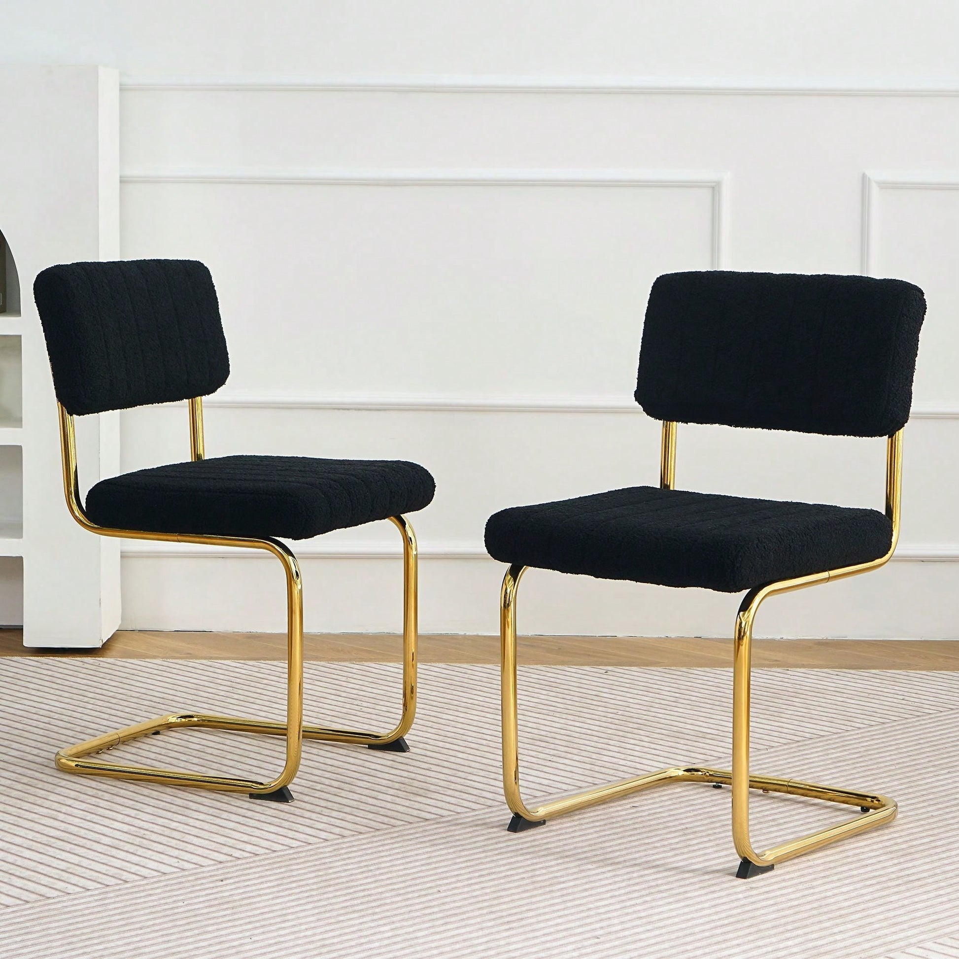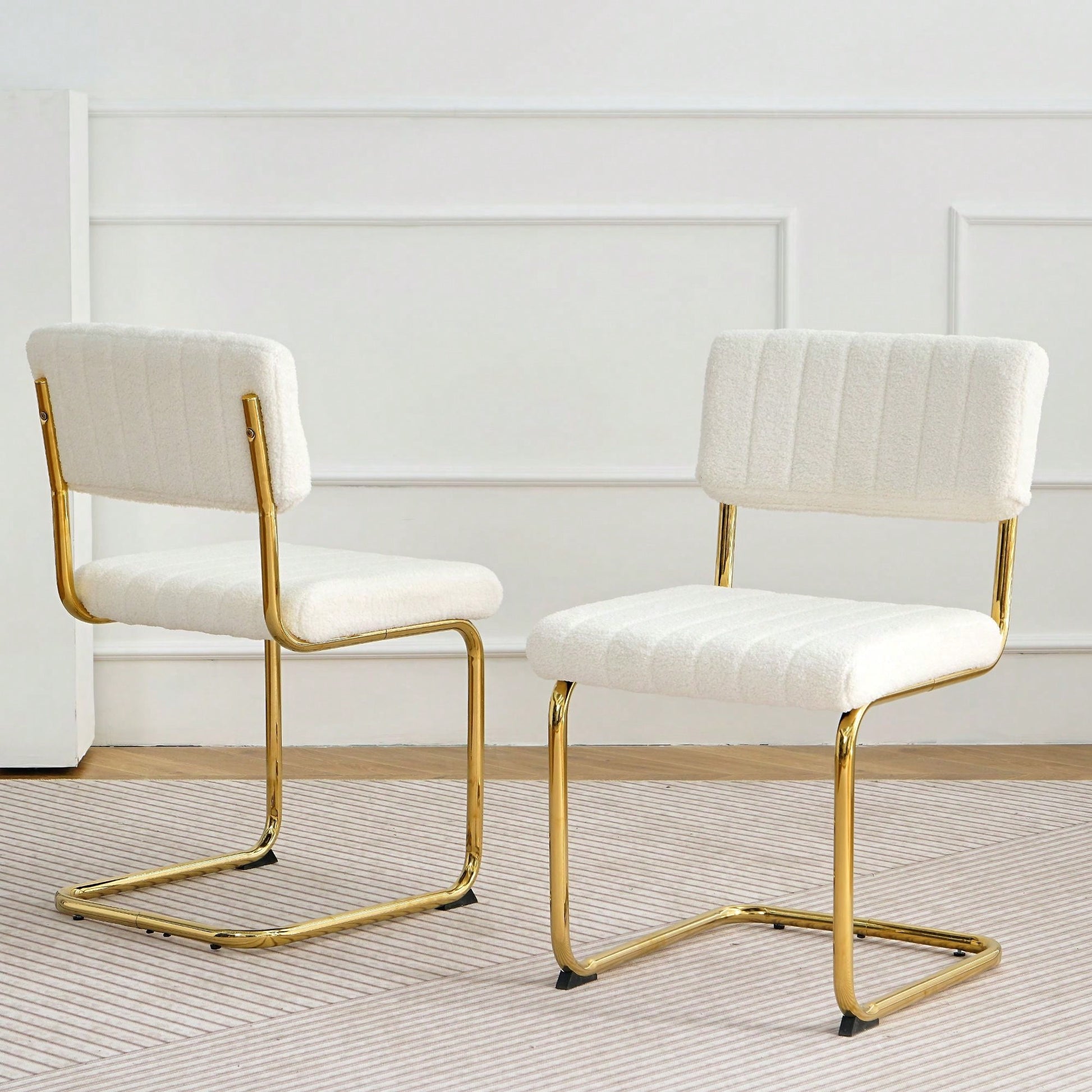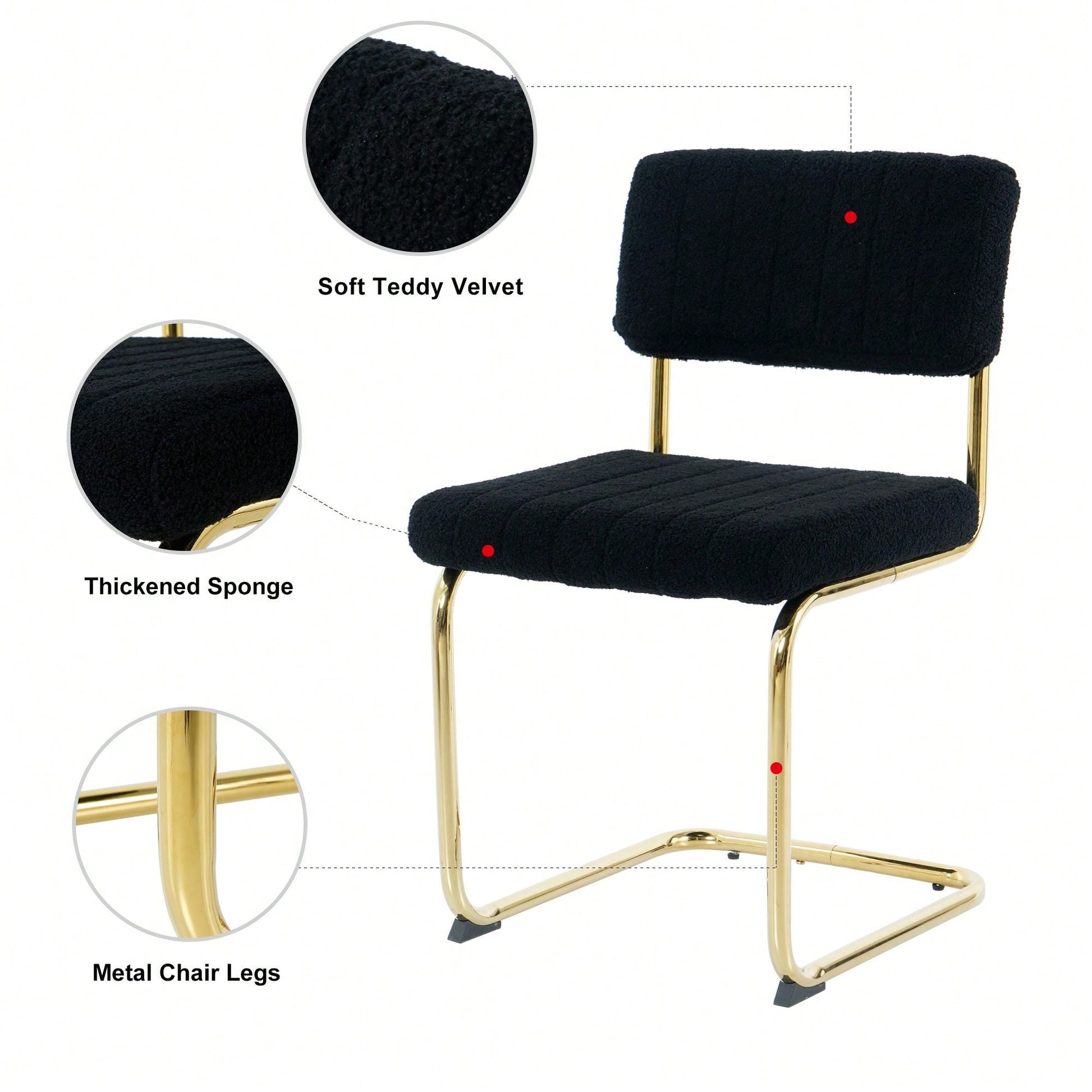 Set Of 2, Modern Simple Light Luxury Dining Chair Home Bedroom Stool Back Dressing Chair Student Desk Chair Gold Metal Legs