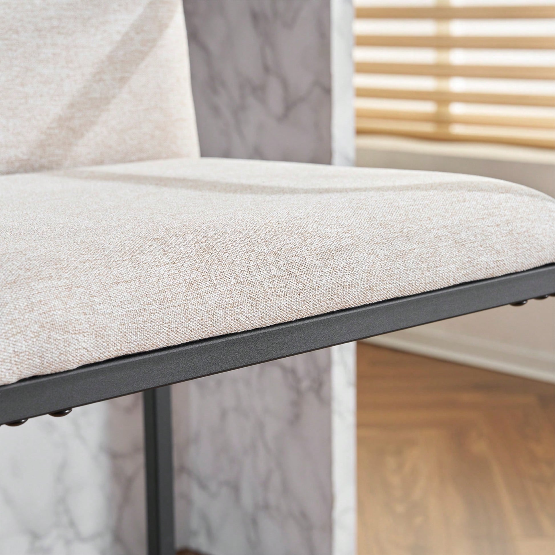 1. Key Features: - Comfortable and spacious seating design with padded seats and armrests for extra support - Stylish modern appearance with beige fabric and black metal frame - Durable and stable structure made of high-quality metal - Foot crossbar design provides extra support for reliability - Multi-functional use suitable for home bar, kitchen island, or dining room 2. Product Description: This set of 2 modern upholstered counter height bar stools features a comfortable and spacious seating design with padded seats and armrests, providing extra support for relaxing meals or leisure time. The stylish beige fabric and black metal frame create a contemporary look that blends seamlessly with various décor styles. Crafted from high-quality metal, these stools offer a durable and stable structure, while the foot crossbar design enhances reliability and safety for long-term use. Perfect for a home bar, kitchen island, or dining room, these stools are ideal for family gatherings or daily meals. Assembly is quick and easy with the included instructions, and the durable fabric is simple to clean, ensuring the stools always look new. Specifications: - Material: Metal frame, padded fabric seat - Color: Beige fabric, black frame - Height: Counter height - Assembly: Easy assembly required