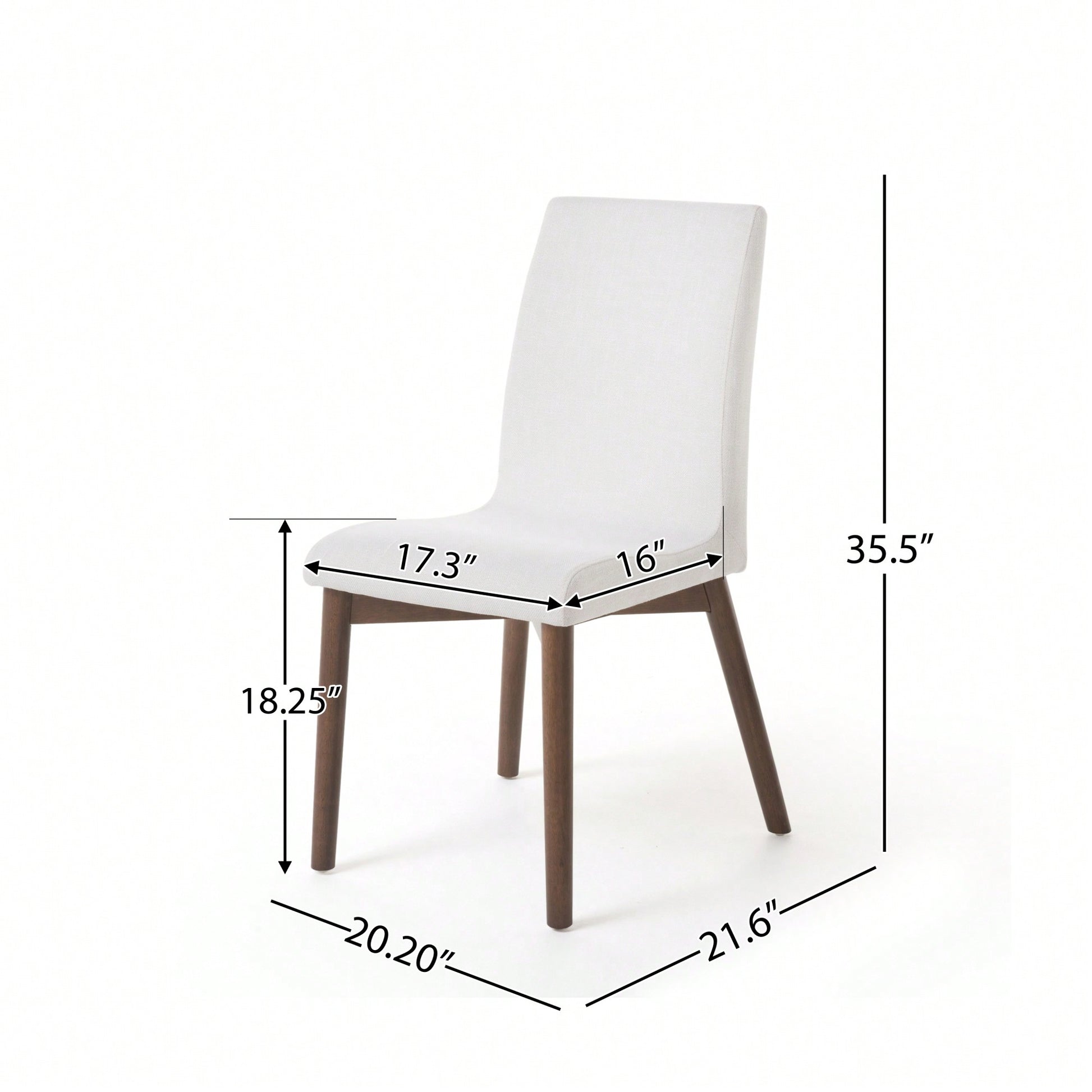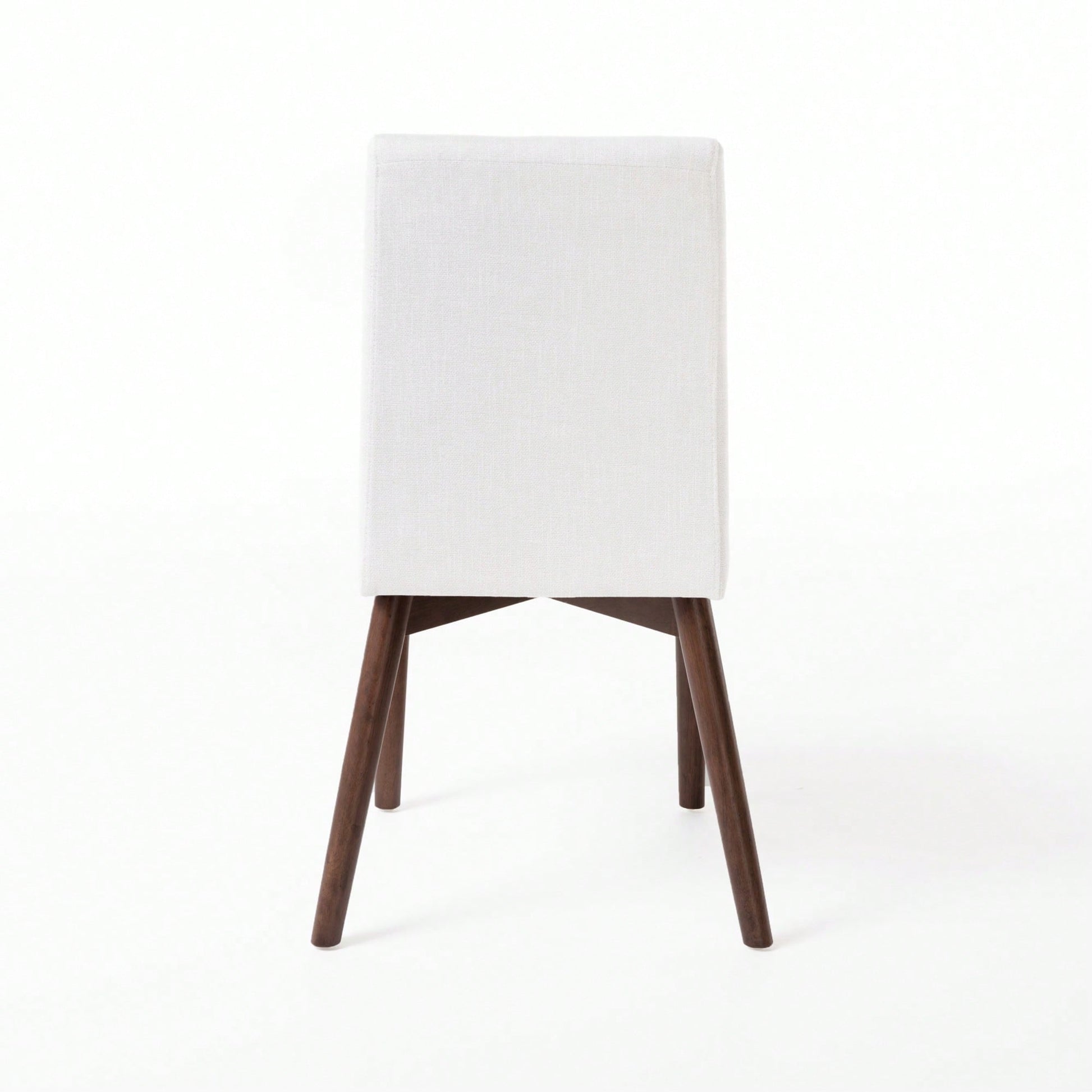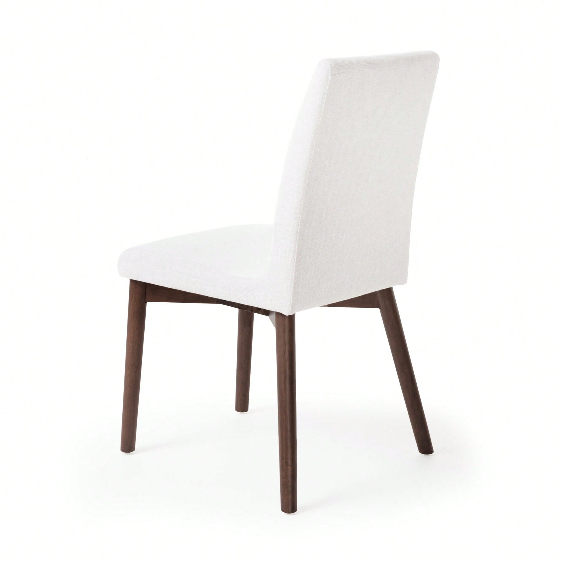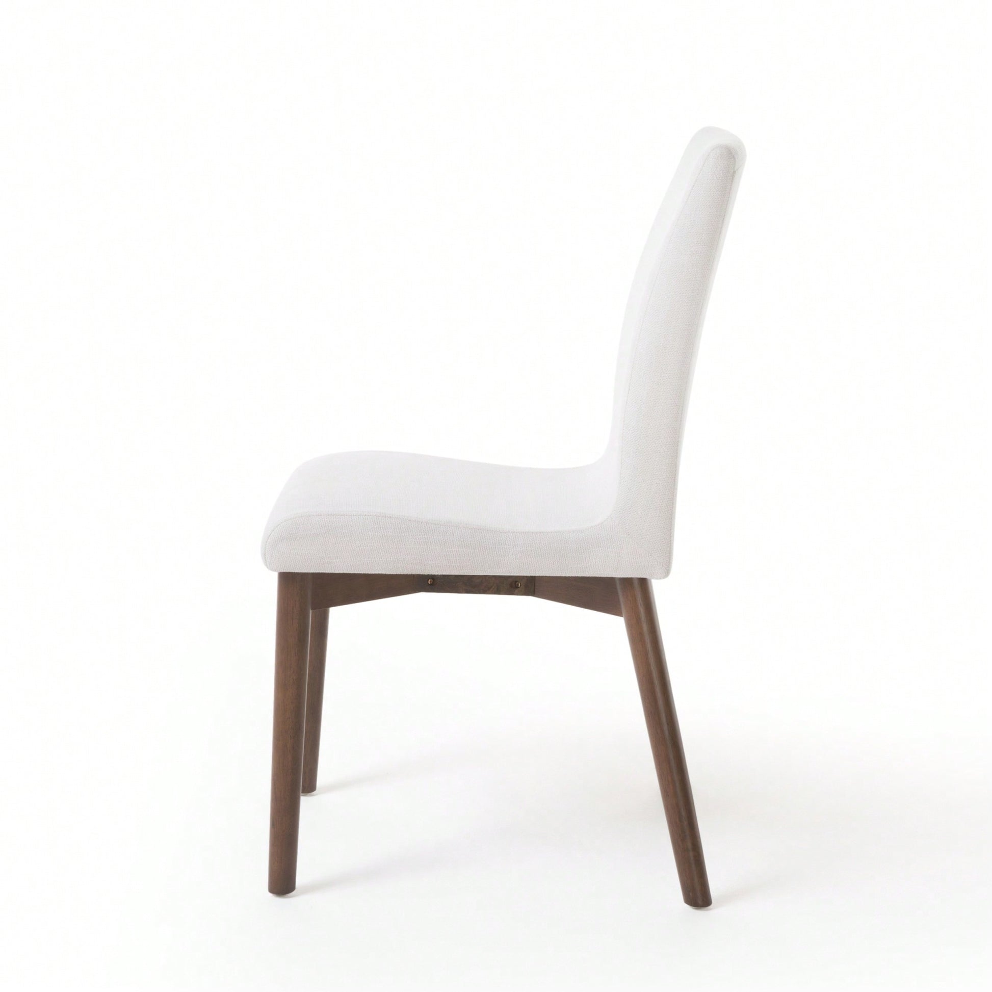 These fabric dining chairs are designed to enhance your dining experience with a sleek and stylish look. The light beige upholstery complements the natural walnut legs, creating an inviting atmosphere in your dining room. Their compact size ensures that you can dine comfortably without overwhelming your space. Ideal for modern and Scandinavian decor, these side chairs feature a solid back for added support.