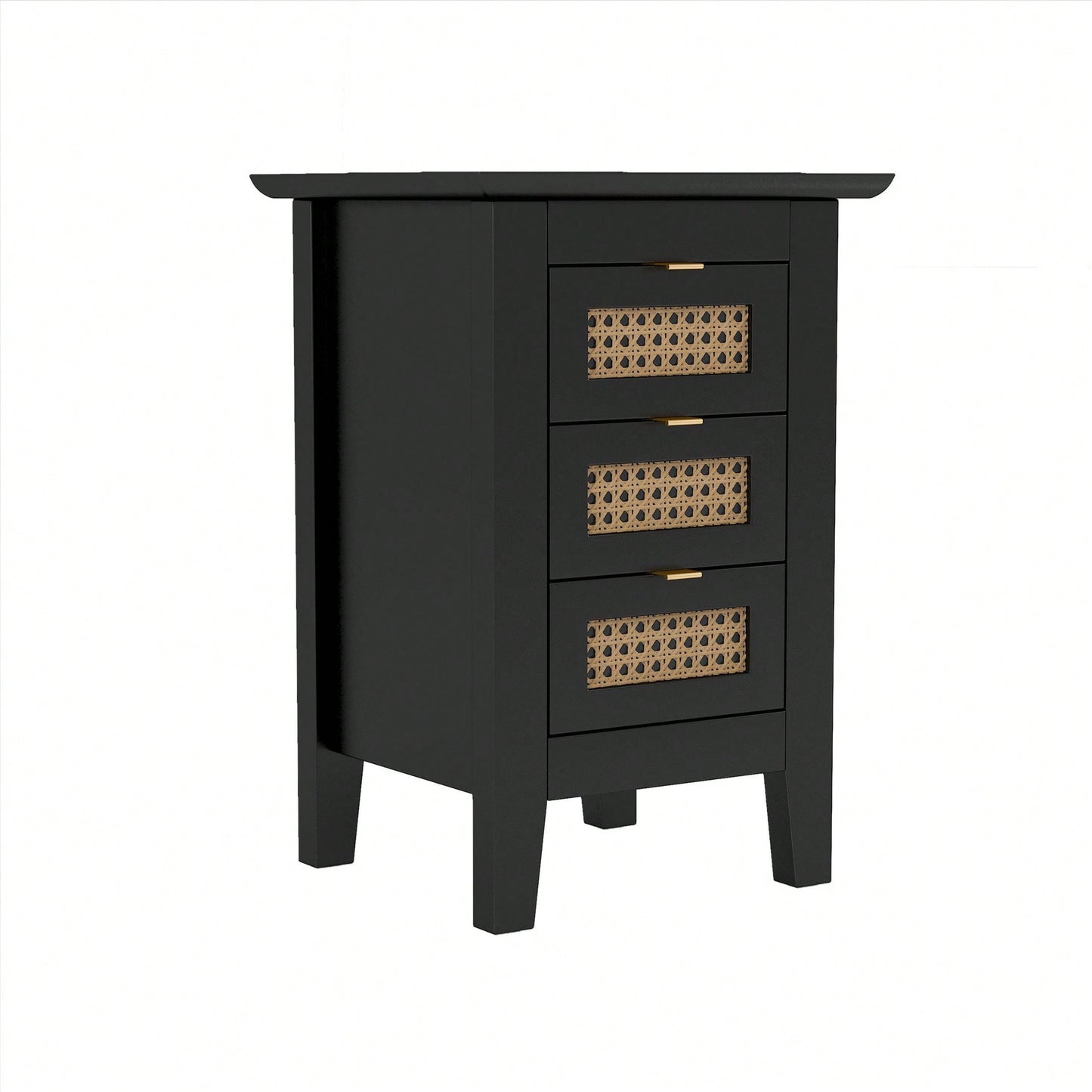 Set Of 2, Rattan-Woven Nightstand With Three Drawers, Exquisite Elegance For Bedroom