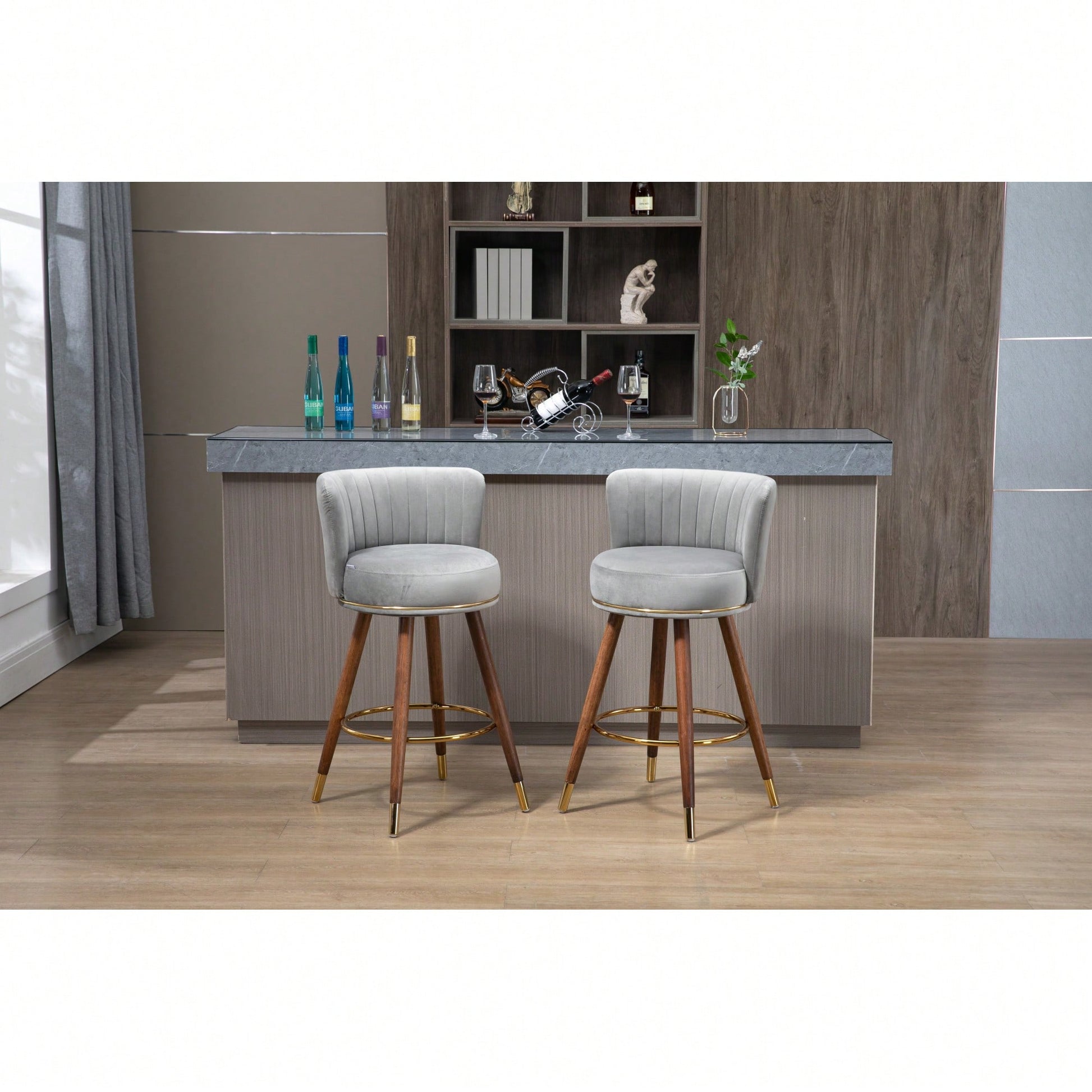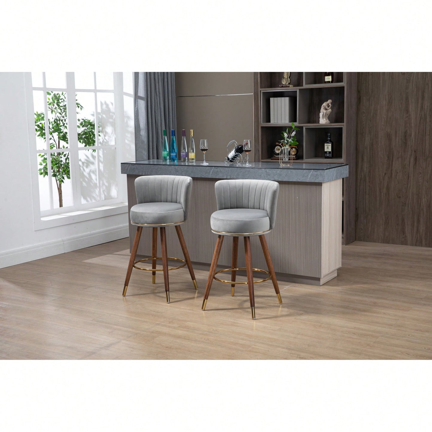 1. Features: - Set of 2 counter height bar stools - Solid wood legs for durability - 360-degree swivel functionality - Comfortable backrest and footrest - Ideal for kitchen counters or bar areas 2. Product Description: These counter height bar stools are designed for both style and comfort. Featuring solid wood legs, they provide a sturdy base while the 360-degree swivel allows for easy movement. The backrest and footrest enhance comfort, making them perfect for extended use in kitchens or bar areas. Their sleek design complements various decor styles, adding a modern touch to your space. Specifications: - Height: Counter height - Material: Solid wood legs - Swivel: Yes, 360 degrees - Backrest: Yes - Footrest: Yes