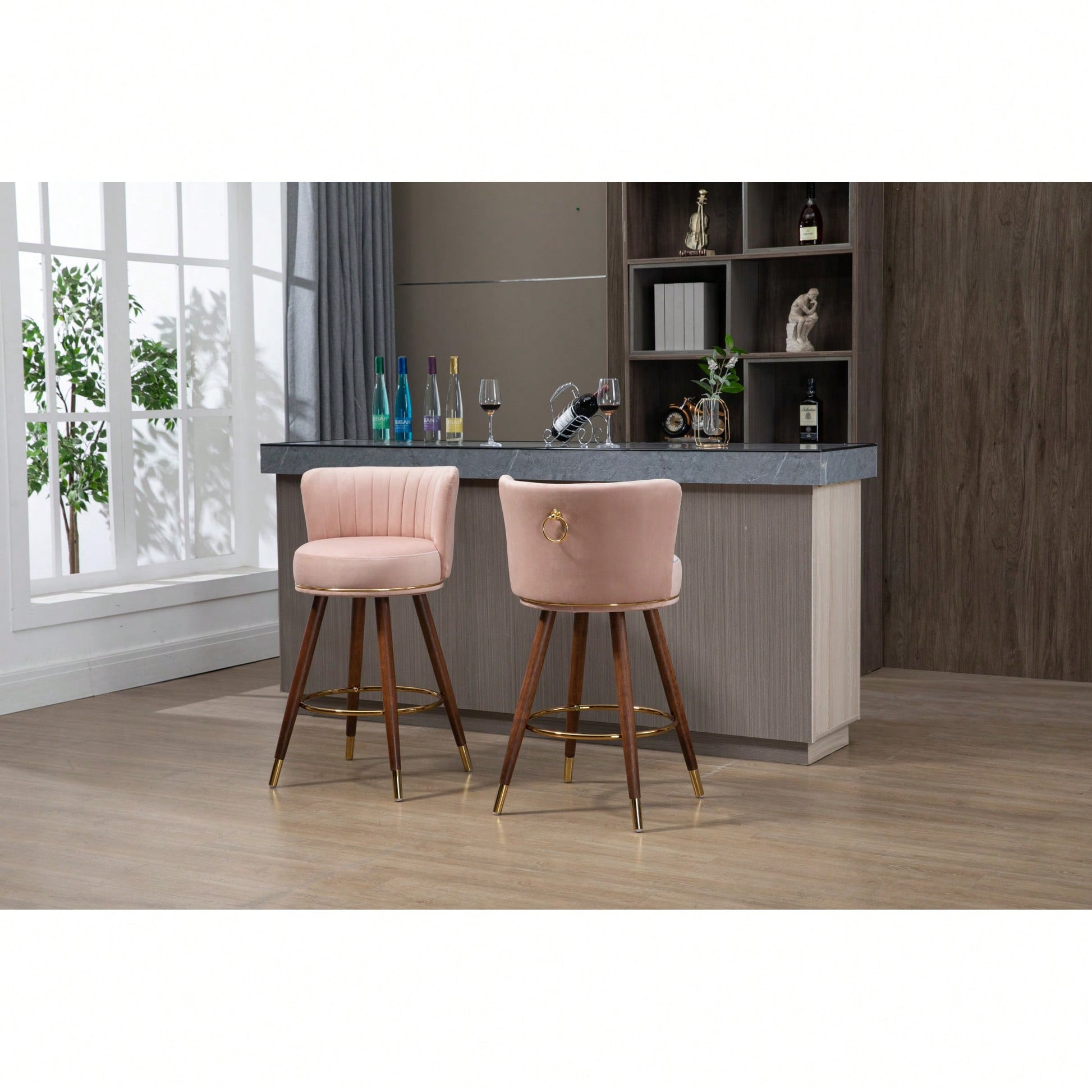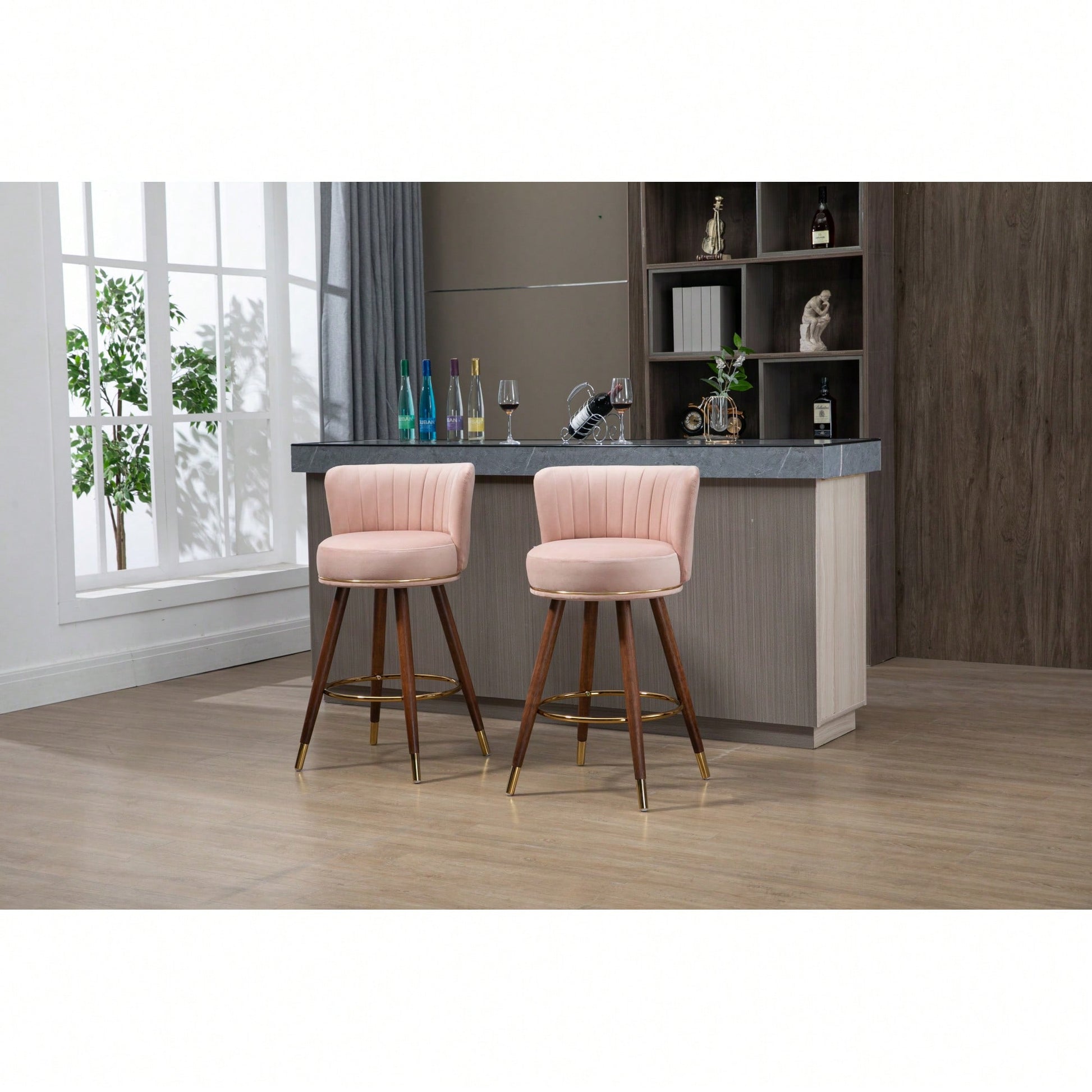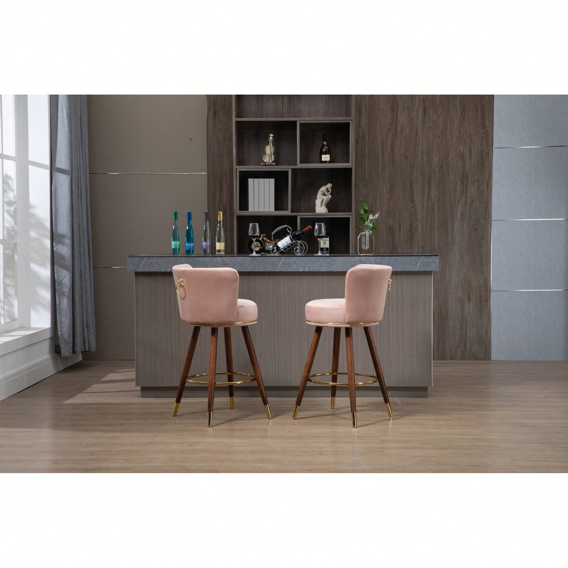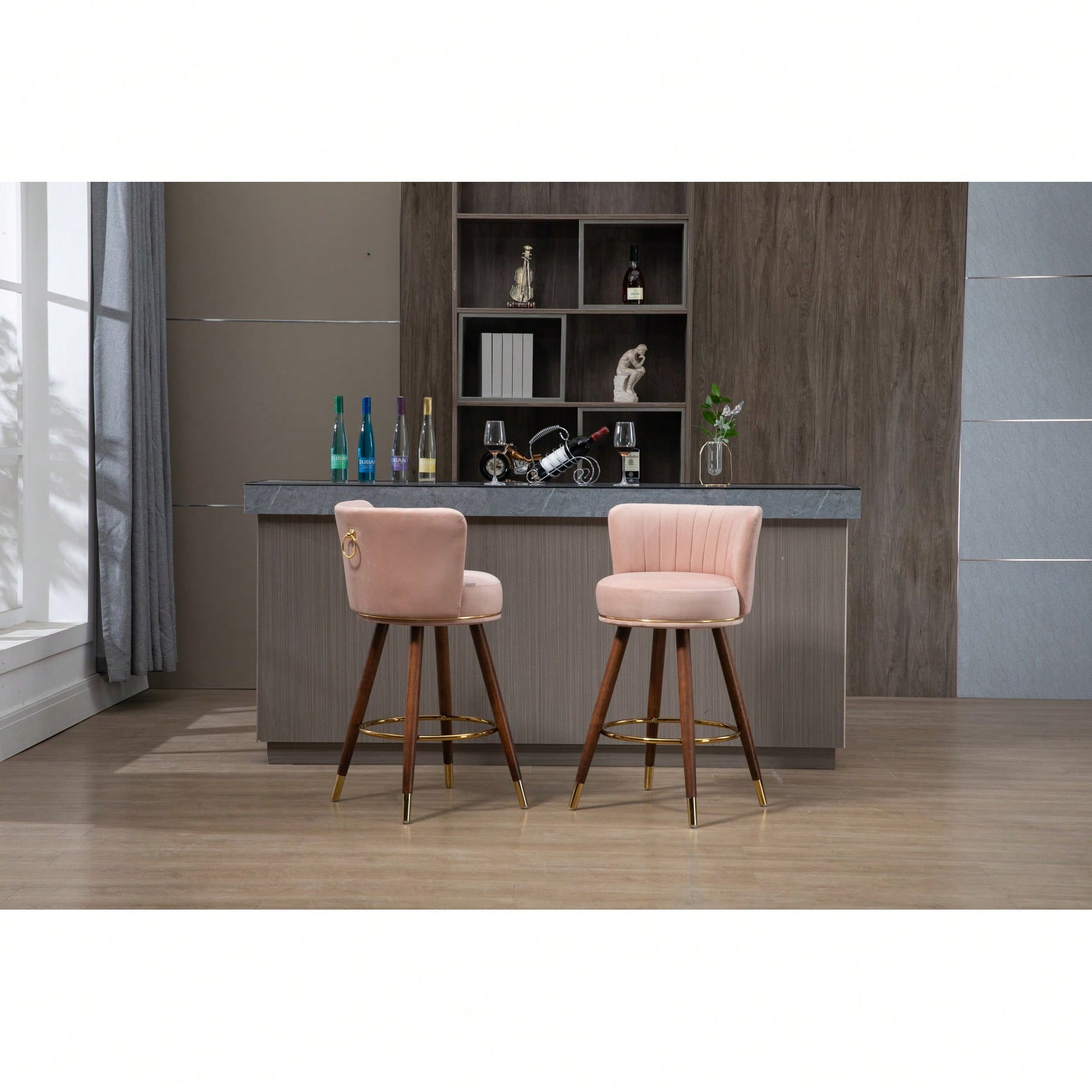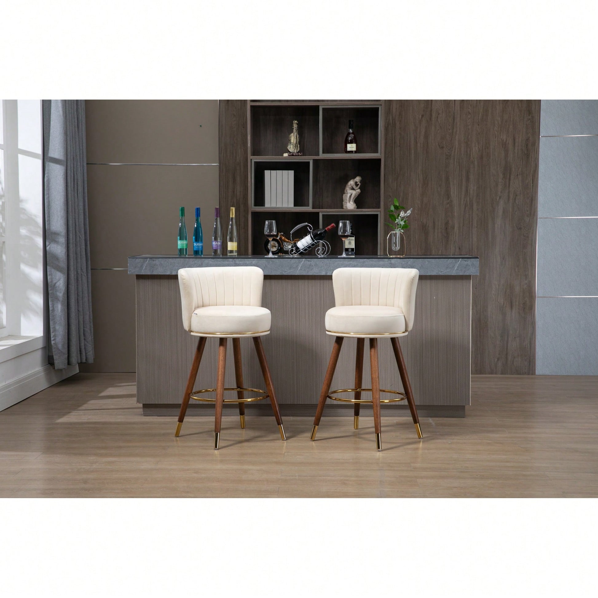Set Of 2 Solid Wood Counter Height Bar Stools With 360 Degree Swivel For Kitchen And Dining