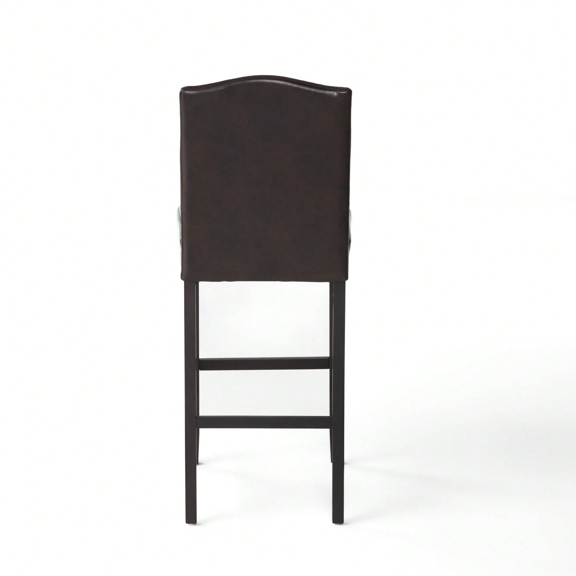2. These stylish barstools are a perfect addition to any home, providing a comfortable seating option that seamlessly transitions from the kitchen to the living room. Featuring a chic ivory fabric upholstery and sturdy espresso stained legs, these barstools combine elegance and functionality.