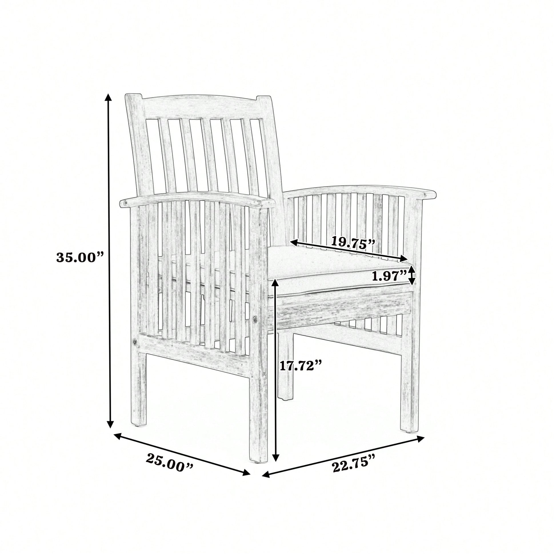 This dining chair set includes two pieces crafted from acacia wood, providing a robust and stylish addition to your outdoor space. The weather-resistant finish ensures durability, while the water-resistant cushions offer comfort and security with hook and loop ties to keep them in place. The classic wood slat design is enhanced by clean, modern lines, making these chairs a perfect fit for any decor scheme. Maintenance is simple; just cover or store the cushions when not in use and apply teak oil as needed to keep the wood looking its best. Assembly is required, but all necessary tools and instructions are included.