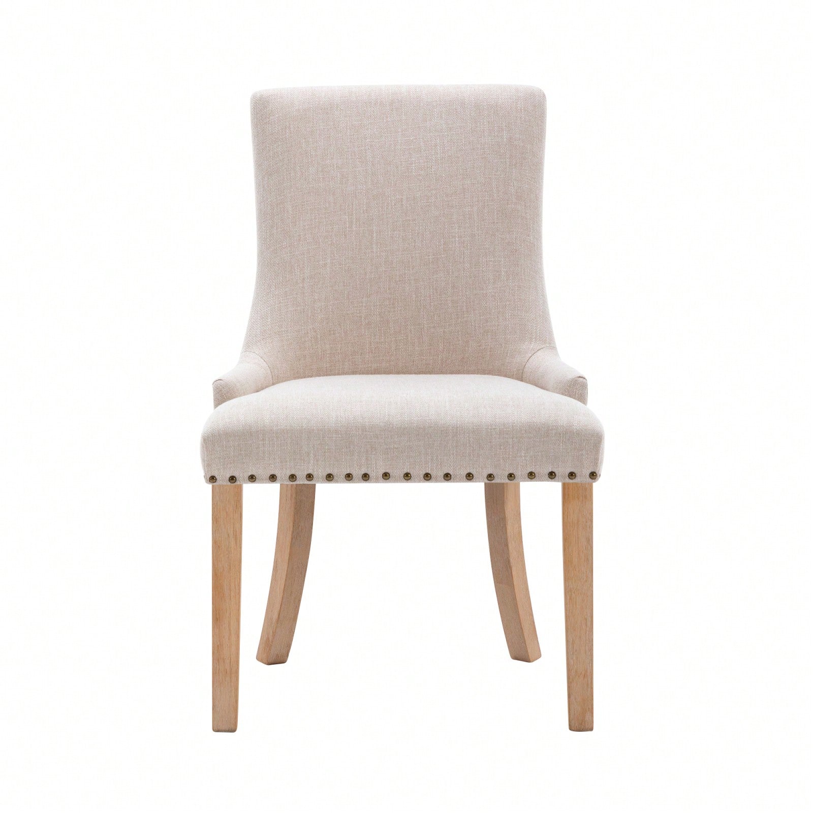 Set Of 2 Upholstered Dining Chairs, Fabric Padded Seat And Back, Solid Wood Legs, Nailed Trim, Beige, 280lbs Weight Capacity, Easy Assembly