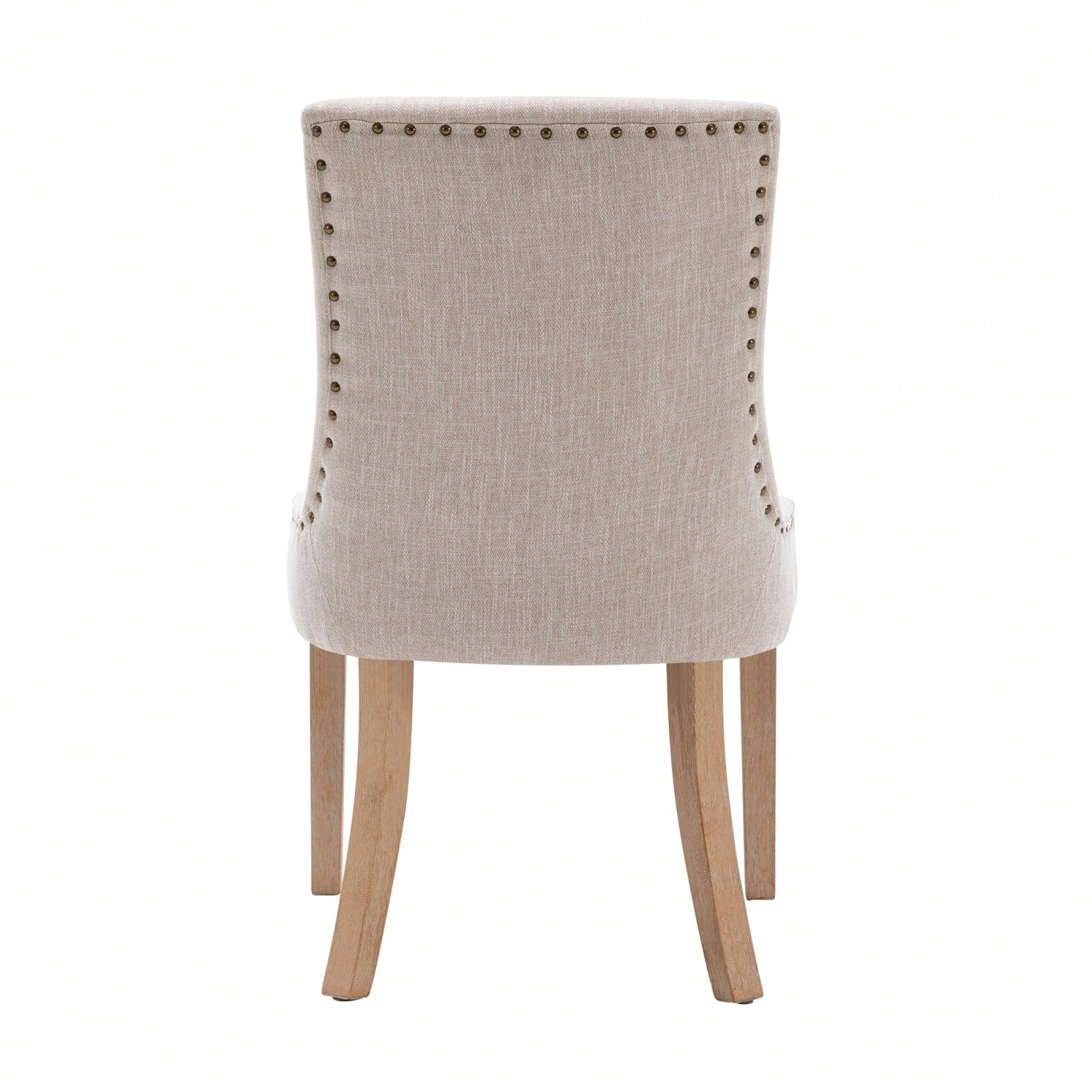 4.Sophisticated Design: Enhance your dining space with the chairs' classic design, featuring elegant nailed trim and a neutral beige fabric that complements any decor.