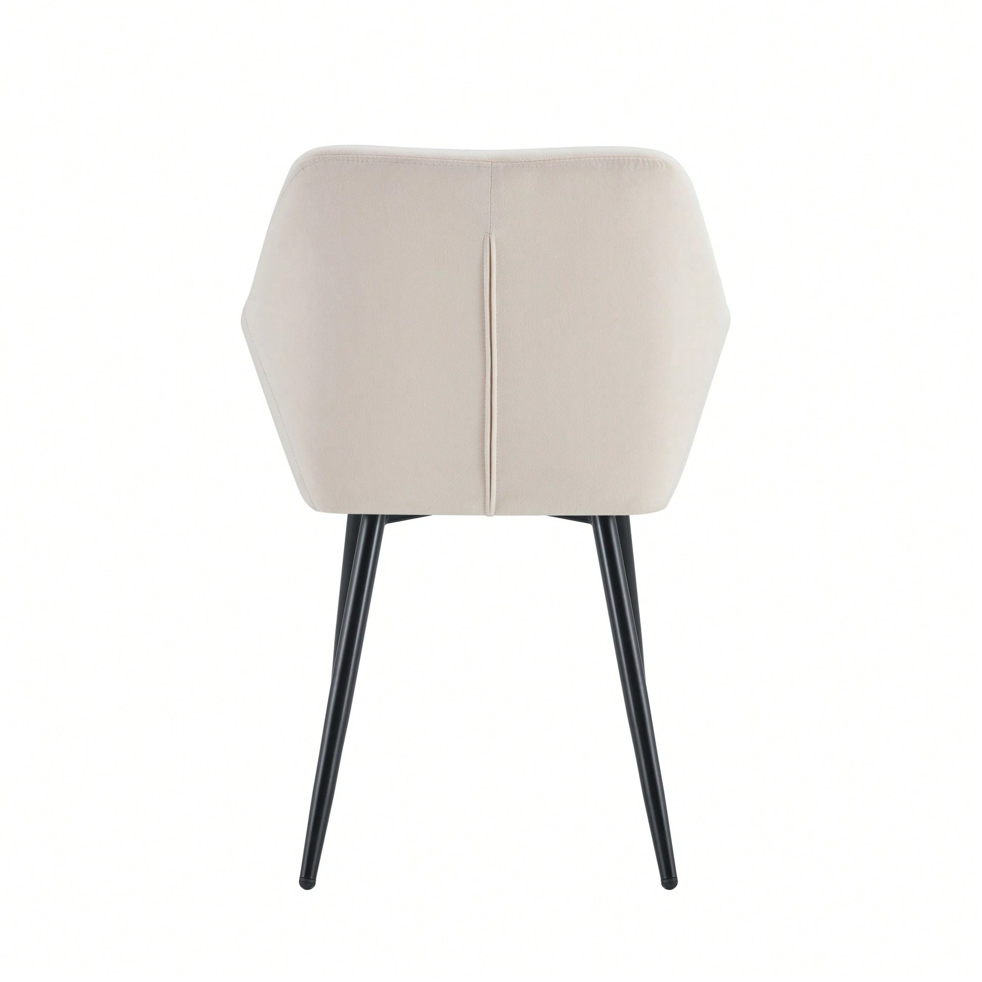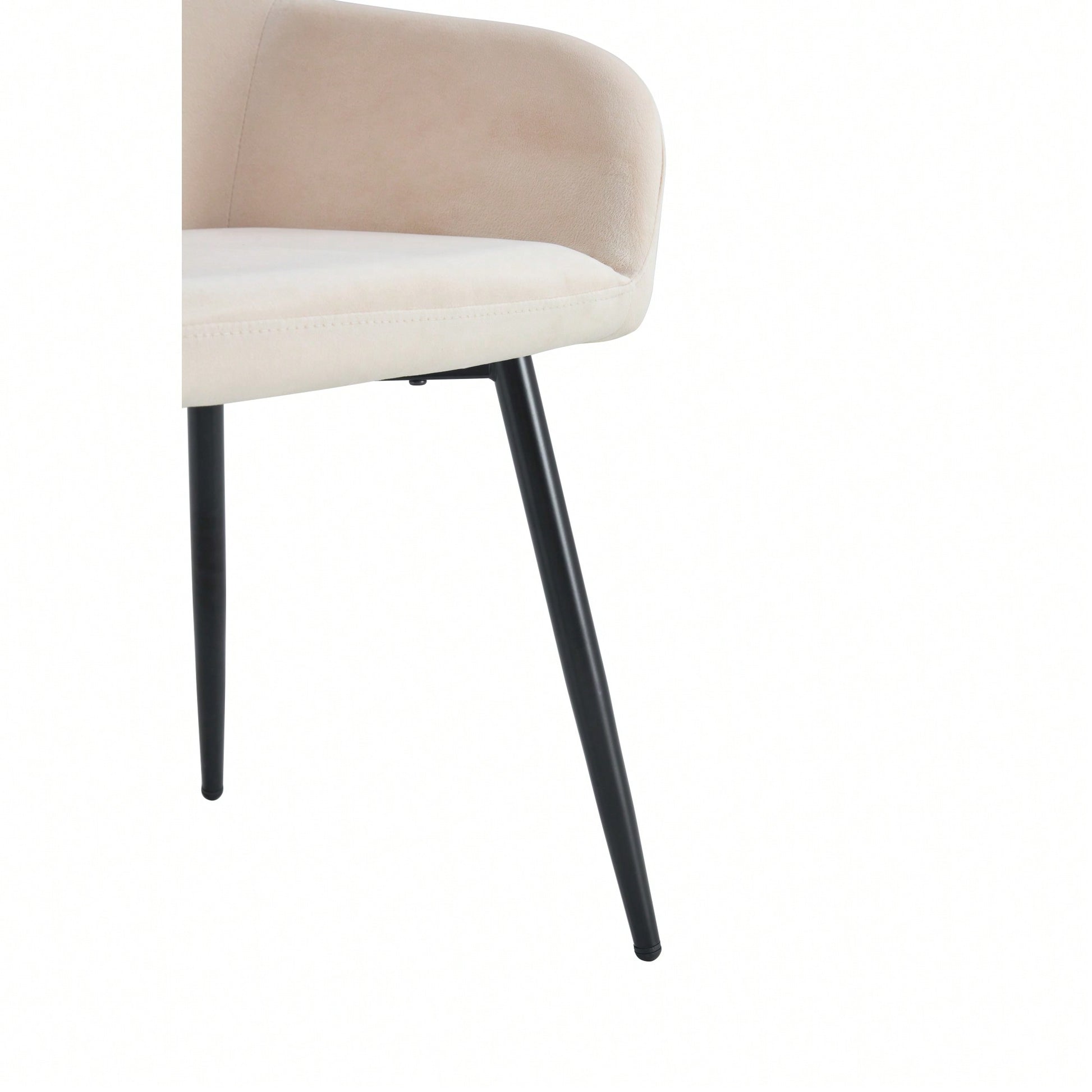 Set Of 2 Velvet Beige Accent Arm Chairs With Strong Black Metal Legs For Modern Living Room Dining Room Club Guest Seating