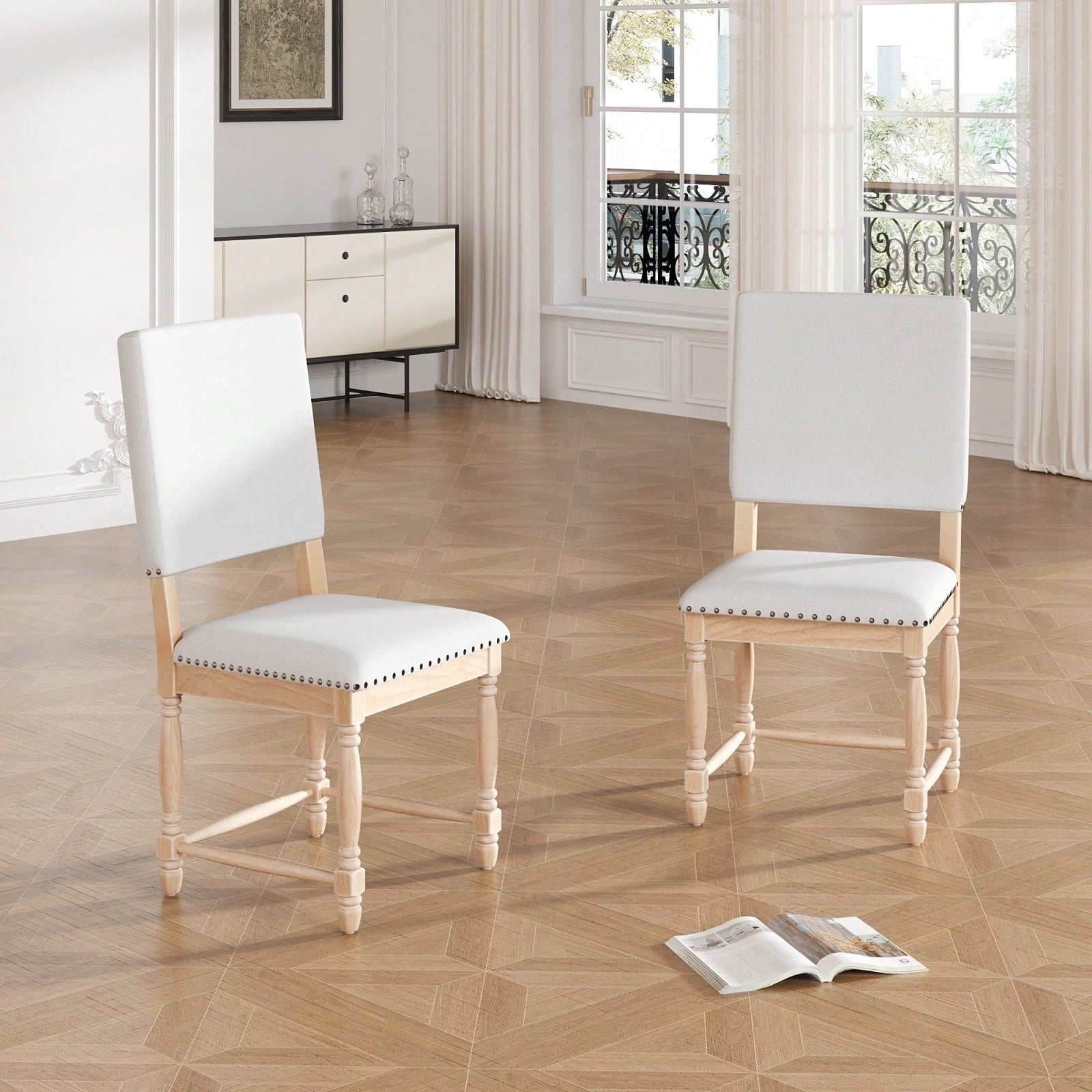 Elegant Solid Wood Vintage Dining Chairs Set of 2 Upholstered Seat Padded Back 330lbs Capacity for Dining Room Kitchen Living Room