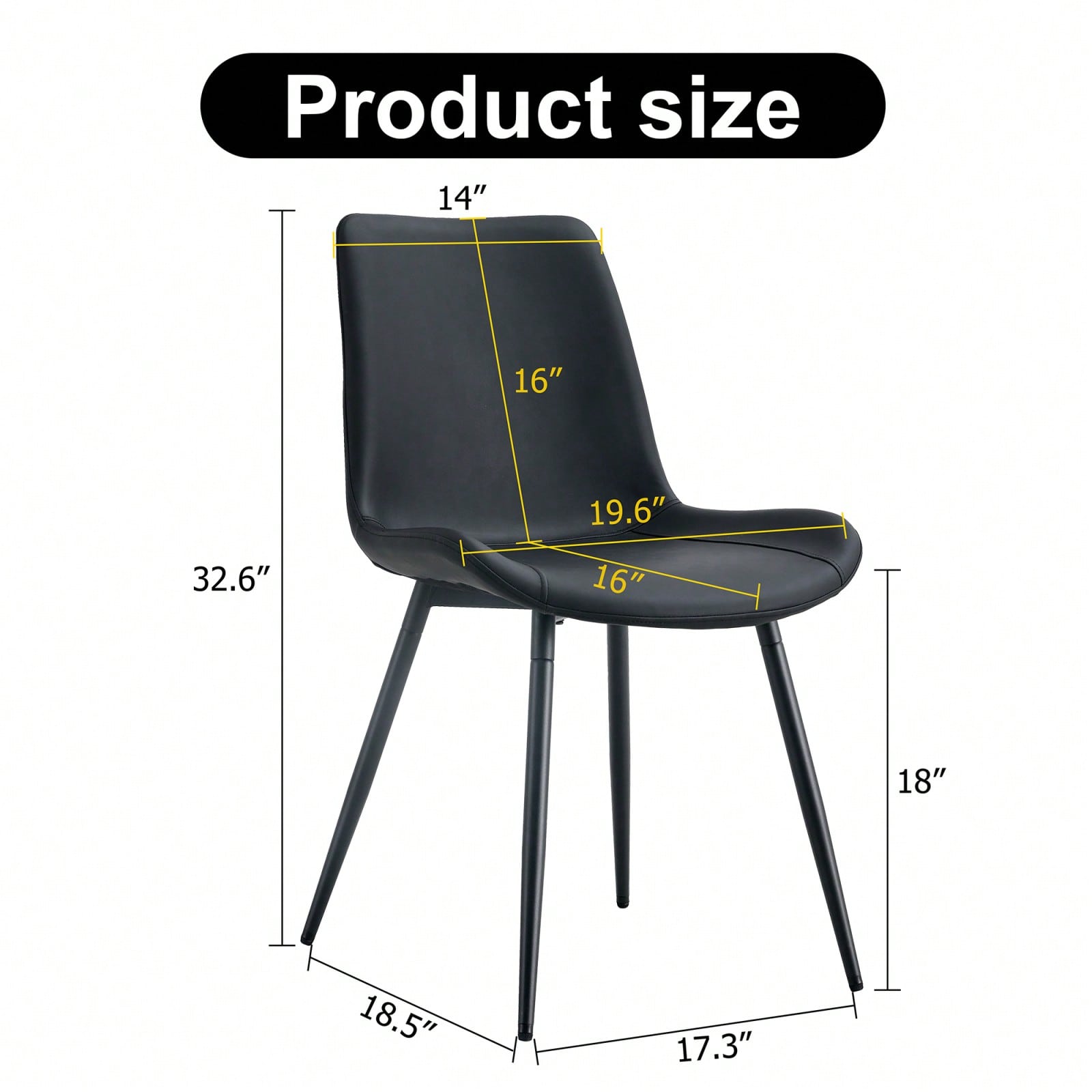 Black artificial leather backrest cushion dining chair, black metal legs, curved widened cushion design for more comfort, suitable for restaurants, kitchens, bedrooms, offices. The simple and contemporary design fits for people's simple attitude towards life and present a chic and fashionable look. Non-slip pads on the bottom of the chairs legs prevent scratching your beautiful carpet and floor, ensure stability. Assembly instruction and assemble tools are included, easy to install. Most people can do in 10-15 minutes.