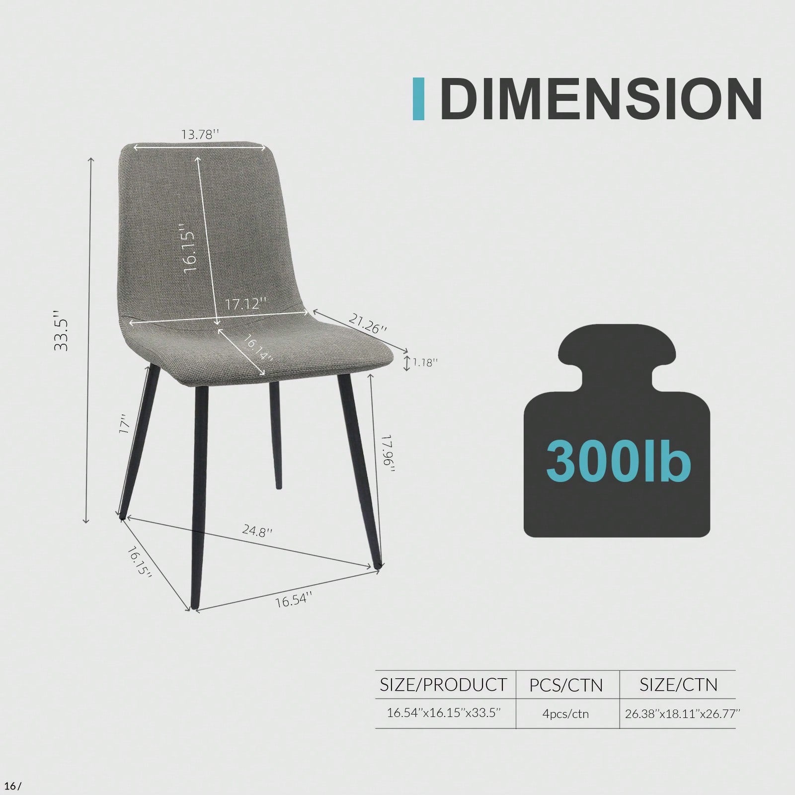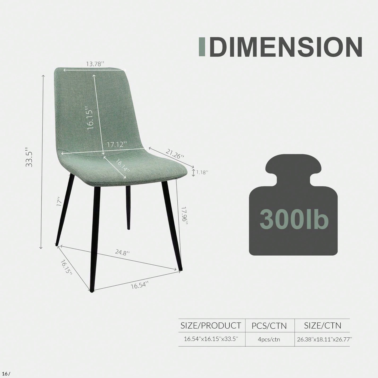 Set of 4 Upholstered Linen Dining Chairs with Comfortable Cushions and Sturdy Metal Legs for Modern Living Room and Kitchen