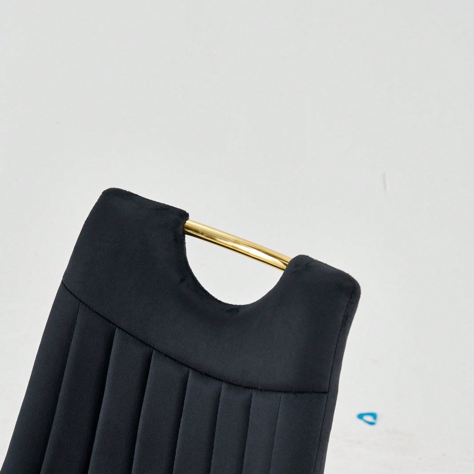 1.Modern Elegance: Elevate your home or office décor with this set of 4 contemporary dining chairs, featuring sleek black seats and luxurious golden legs for a touch of sophistication.