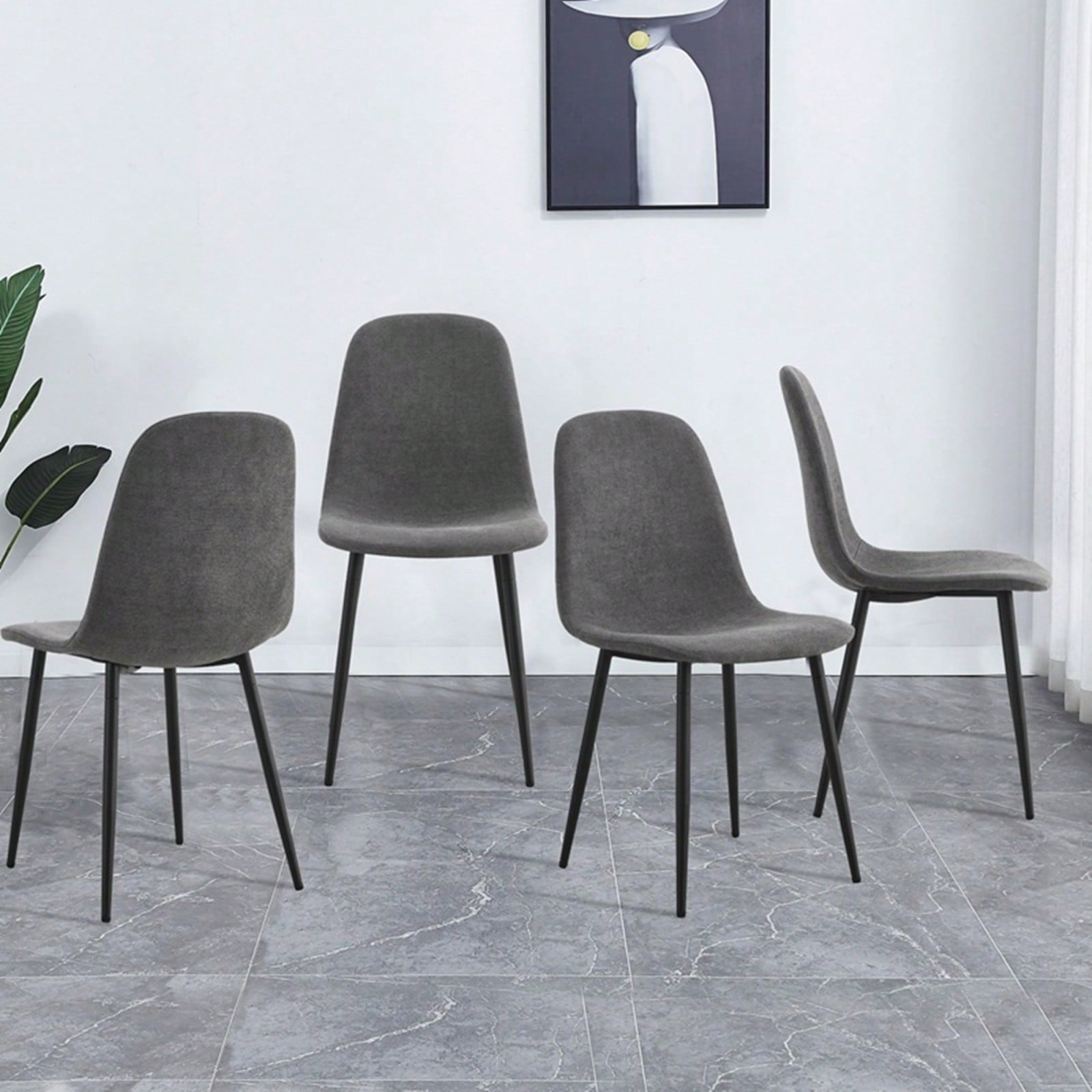 A set of 4 modern medieval style restaurant cushioned side chairs with soft linen fabric cushions and black metal legs, suitable for kitchen, lounge, and farmhouses. Ideal for home or office, decorating living room, dining room, bedroom, kitchen, lounge, reception, waiting room, or corner area. Assembly instruction and assemble tools are included, easy to install. Most people can do in 10-15 minutes. All colors on our website are for reference only, actual product colors may vary a little bit, due to different color settings of every screen device.