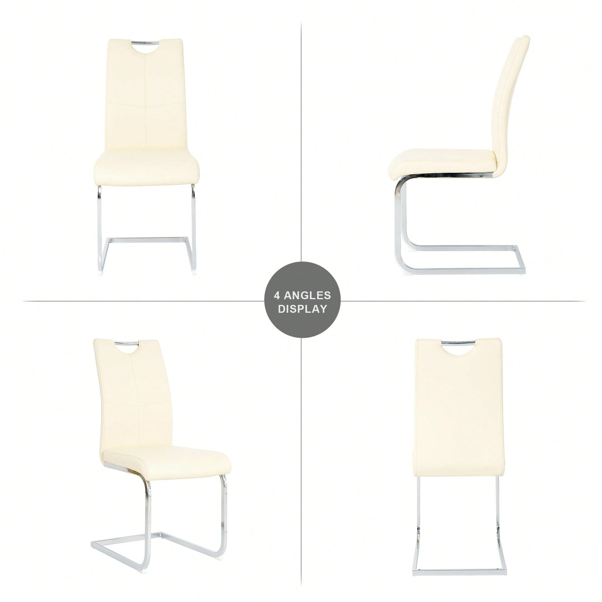 This set of four modern light yellow PU dining chairs brings a touch of elegance to any space, including kitchens, living rooms, and dining areas. The ergonomic design features smooth lines that contour to the body, helping to relieve fatigue and disperse pressure during long sitting periods. The seat is covered with fresh thick sponge, providing both comfort and aesthetic appeal. Each chair is equipped with a strong and durable base, featuring adjustable non-slip feet for added stability and quiet use. The waterproof and antifouling properties make these chairs easy to clean, ensuring they maintain their stylish look over time.