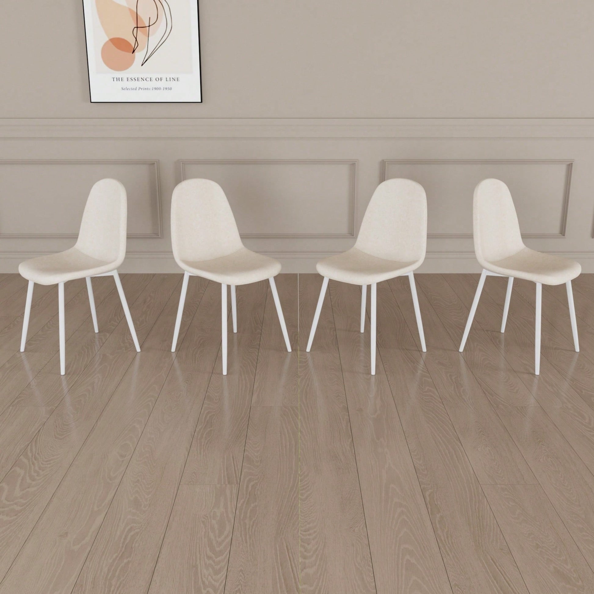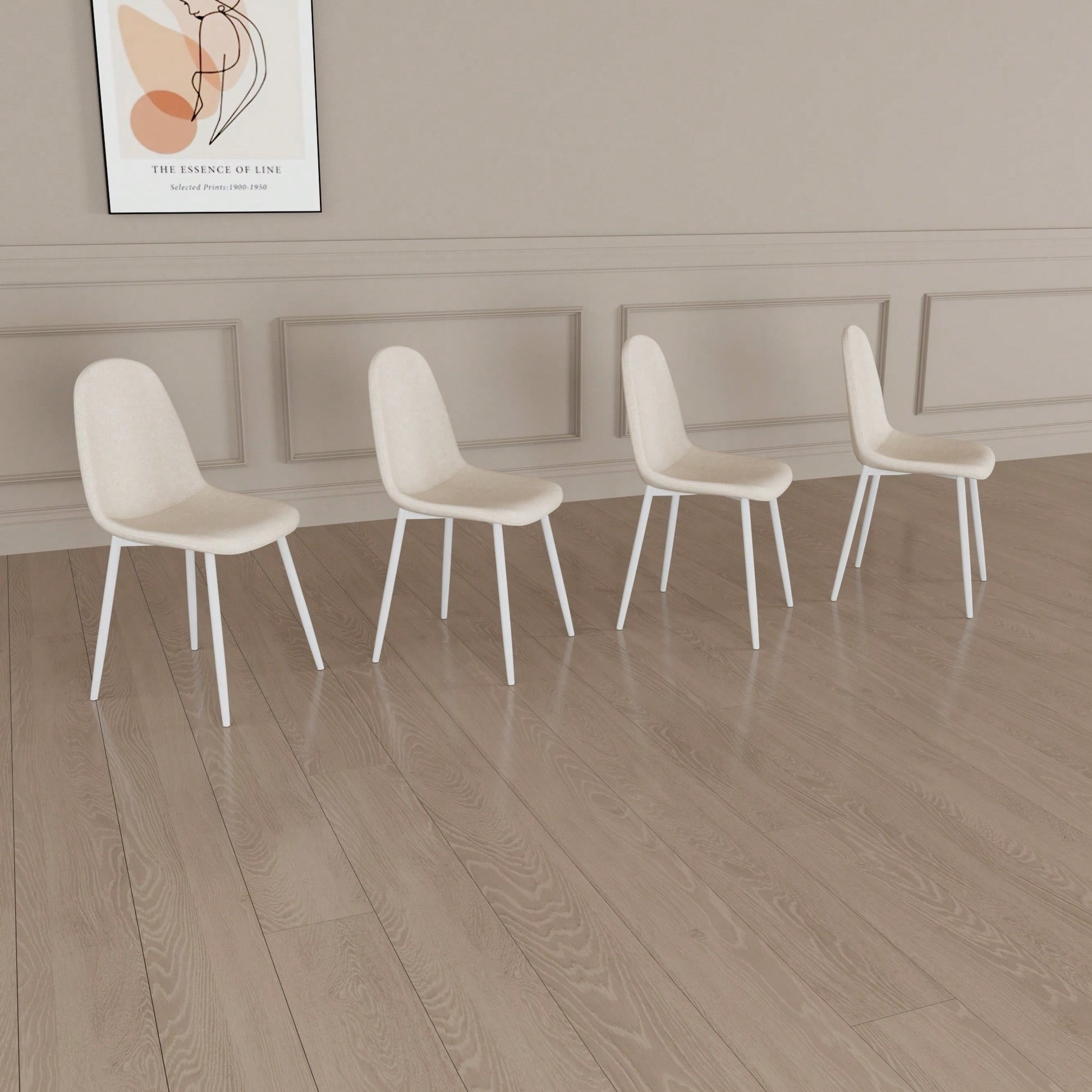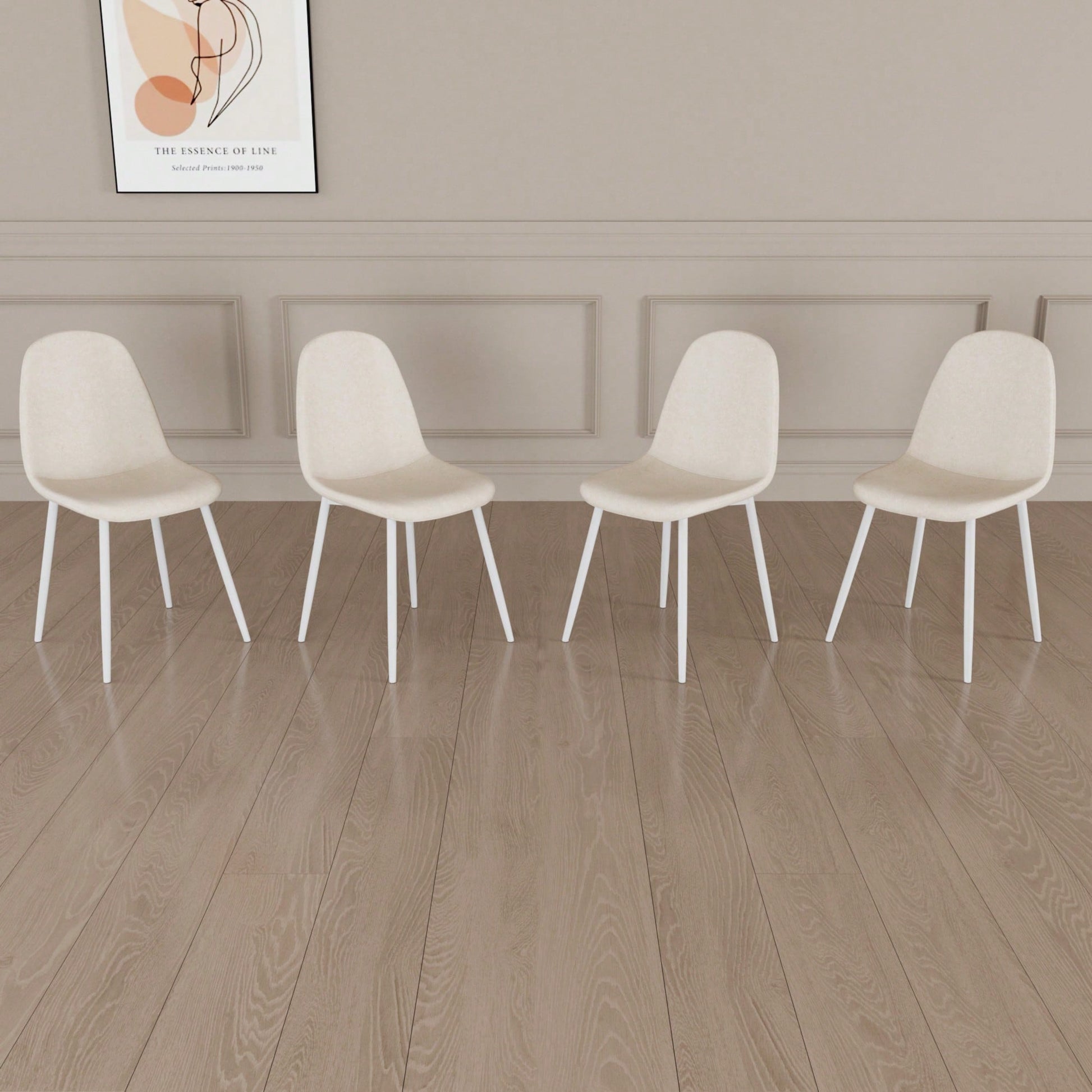 This set of 4 dining chairs combines modern elegance with practical design, perfect for enhancing any dining space. The chairs feature a simplistic, mid-century inspired silhouette that fits seamlessly in various décor styles. Upholstered in soft, padded linen fabric, each chair provides exceptional comfort, while sturdy white metal legs offer solid support and stability. Additionally, the legs are outfitted with anti-slip pads to your flooring from scratches and noise.