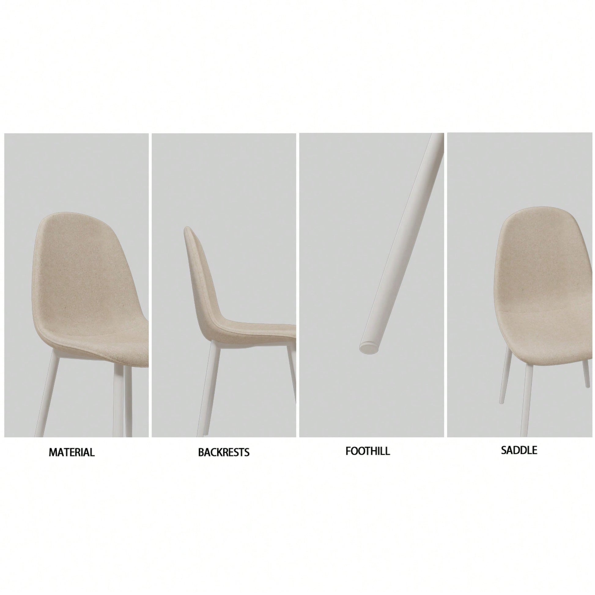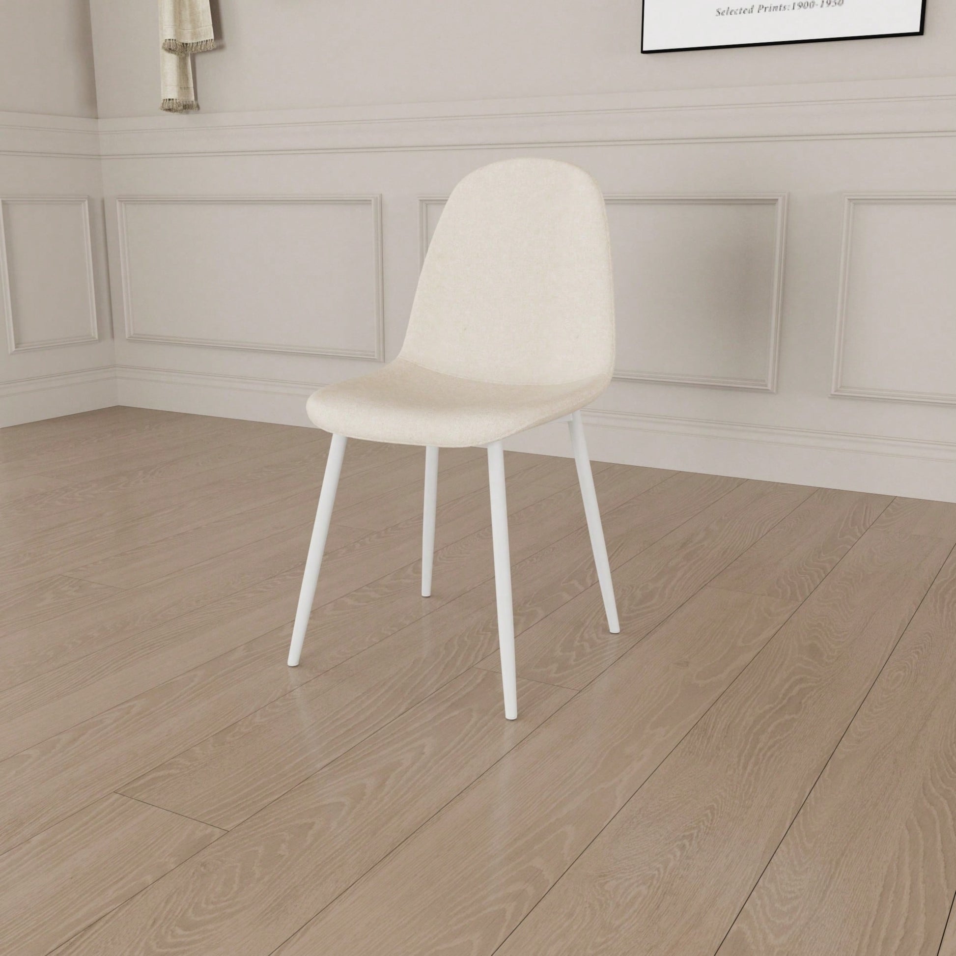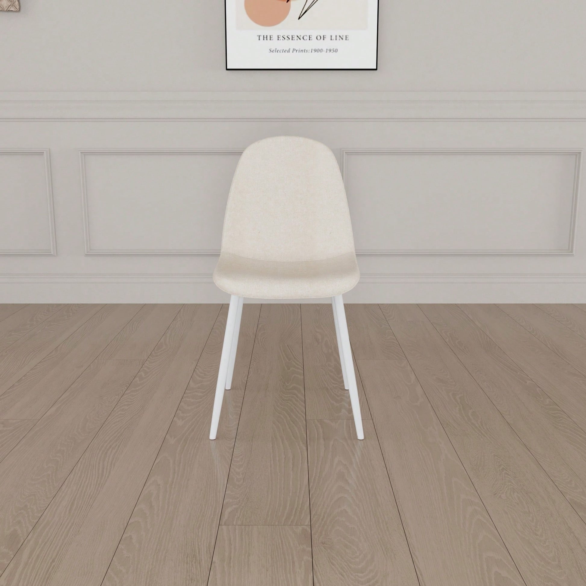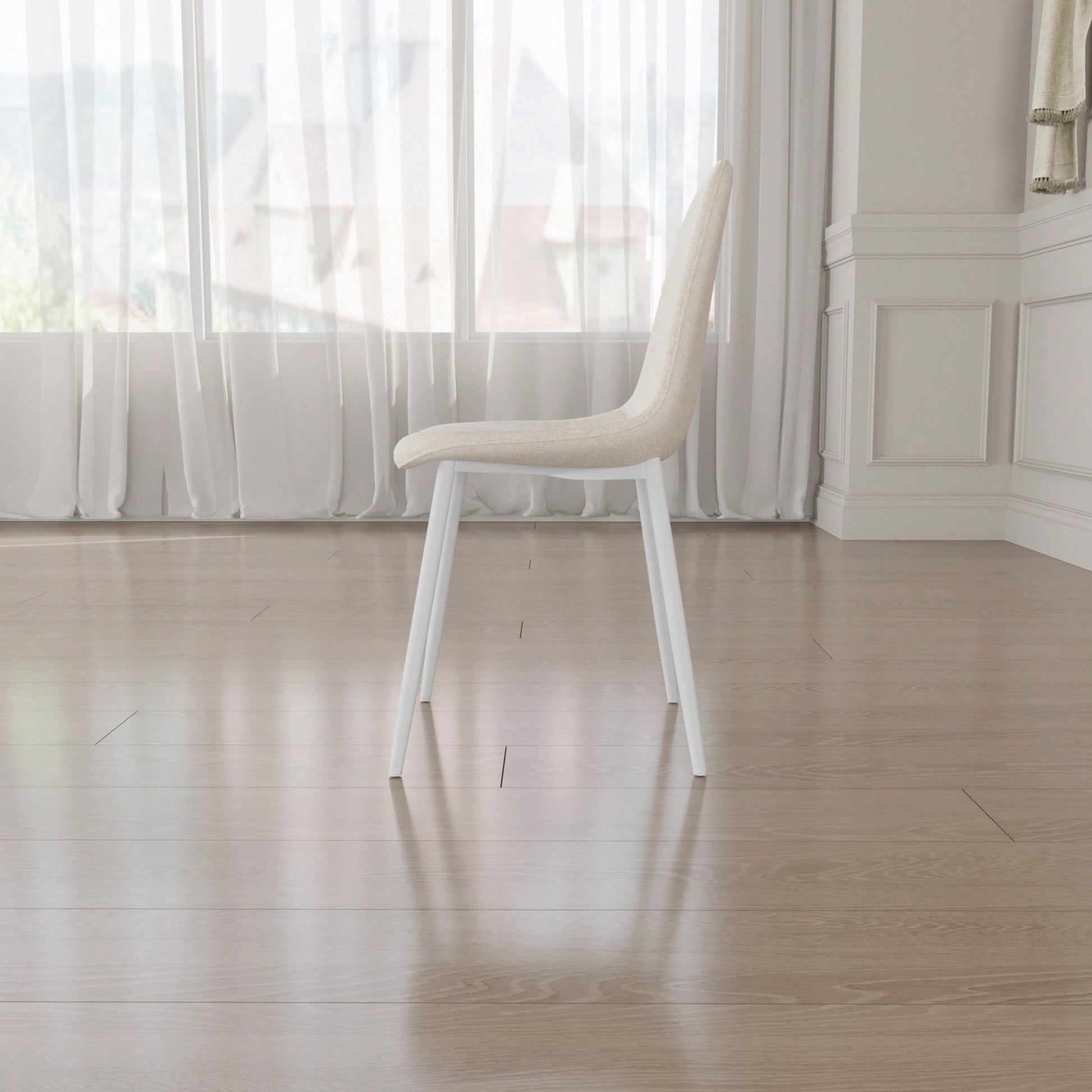This set of 4 dining chairs combines modern elegance with practical design, perfect for enhancing any dining space. The chairs feature a simplistic, mid-century inspired silhouette that fits seamlessly in various décor styles. Upholstered in soft, padded linen fabric, each chair provides exceptional comfort, while sturdy white metal legs offer solid support and stability. Additionally, the legs are outfitted with anti-slip pads to your flooring from scratches and noise.
