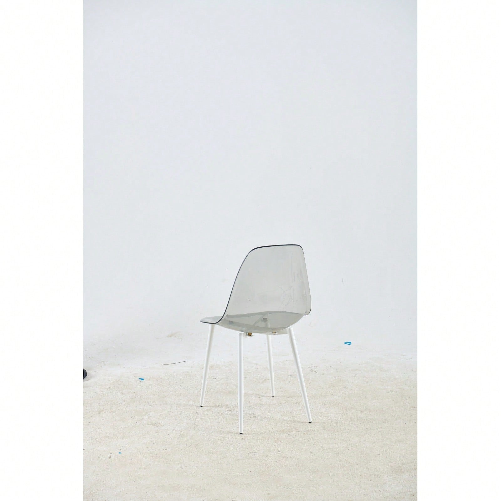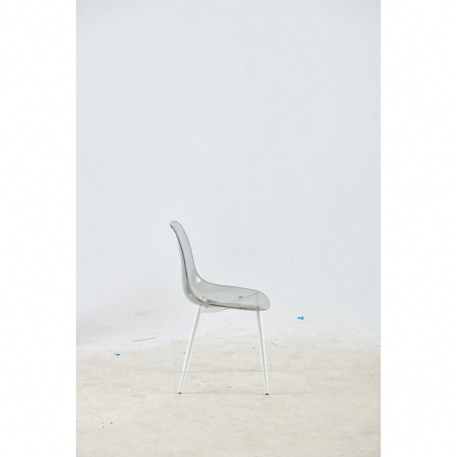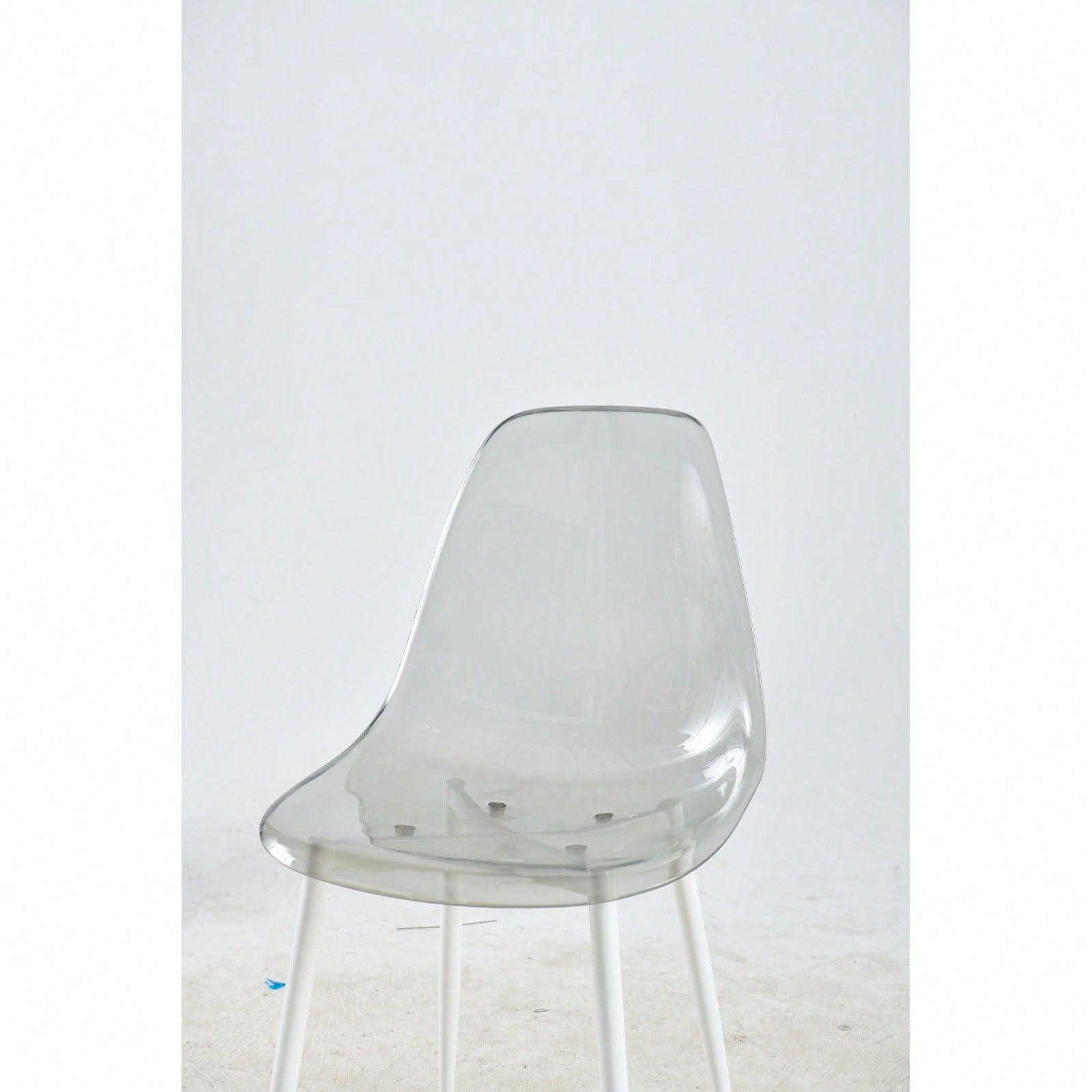 This set of four dining chairs offers a stylish and modern seating solution for your dining area. Each chair features a sleek and durable construction, combining a comfortable plastic seat with sturdy metal legs. The transparent grey color adds a touch of sophistication to any decor, seamlessly blending in with various styles. Designed for both comfort and practicality, these chairs are easy to assemble and maintain, making them an ideal choice for everyday use. The robust construction ensures long-lasting performance, providing reliable seating for you and your guests.