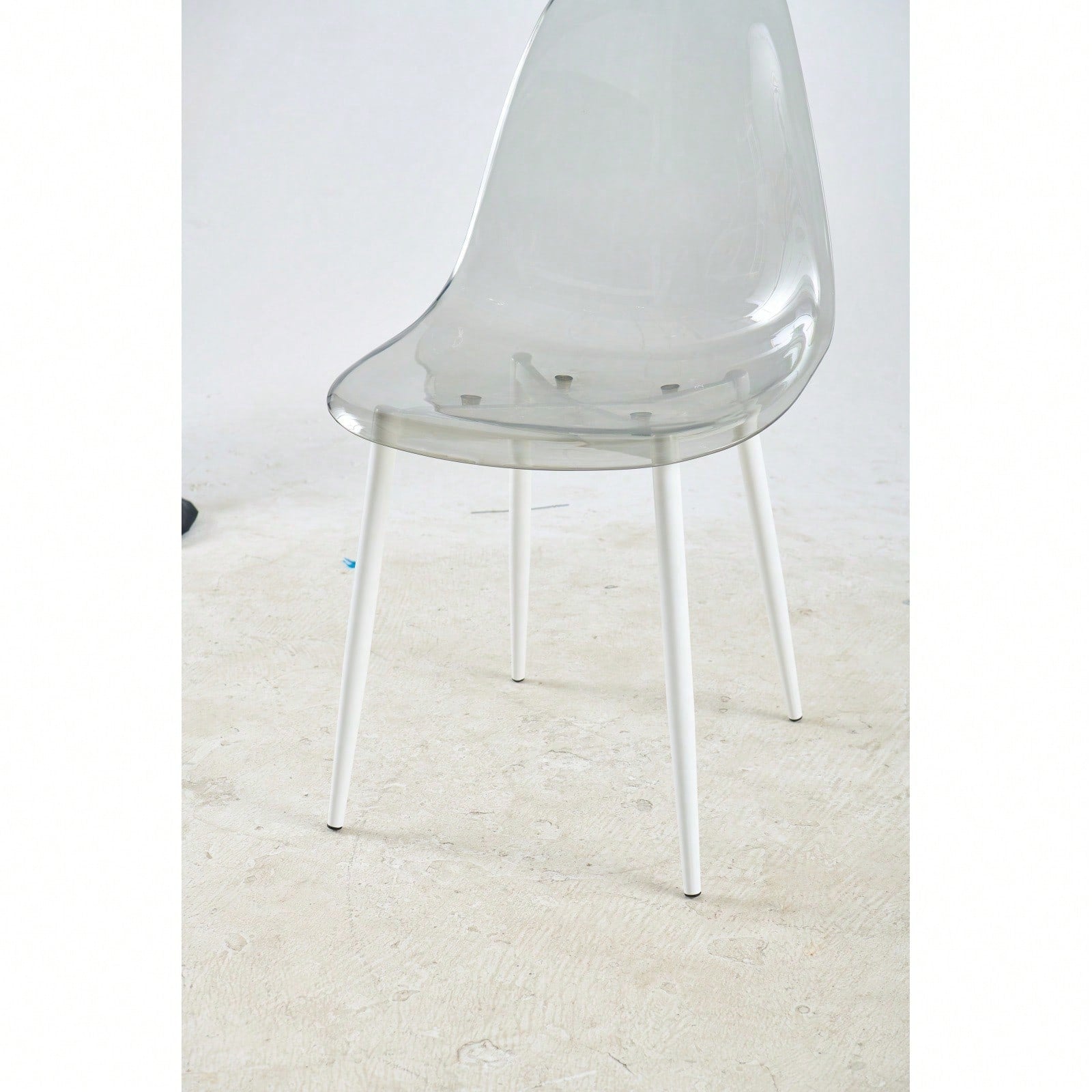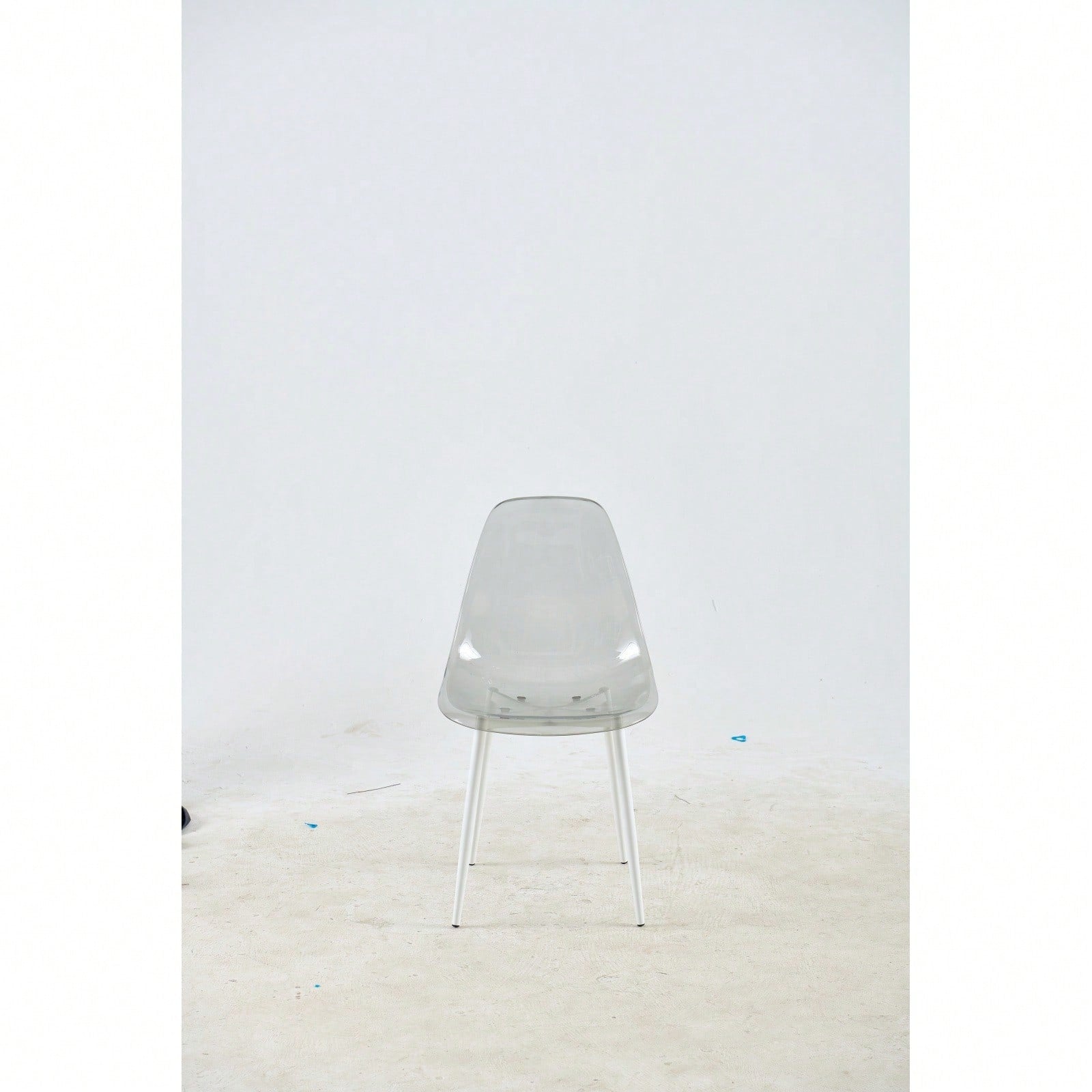 Set Of 4 Transparent Grey Dining Chairs With Metal Legs