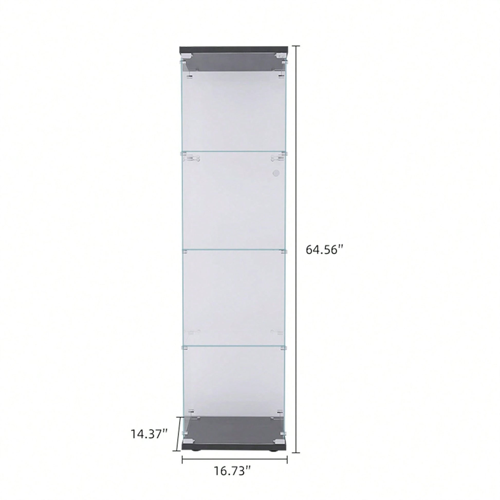 Shelves Glass Cabinet Glass Display Cabinet With One Door, Black