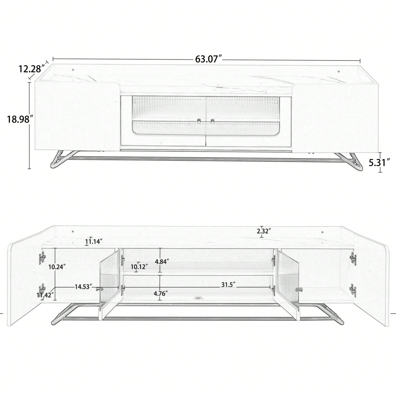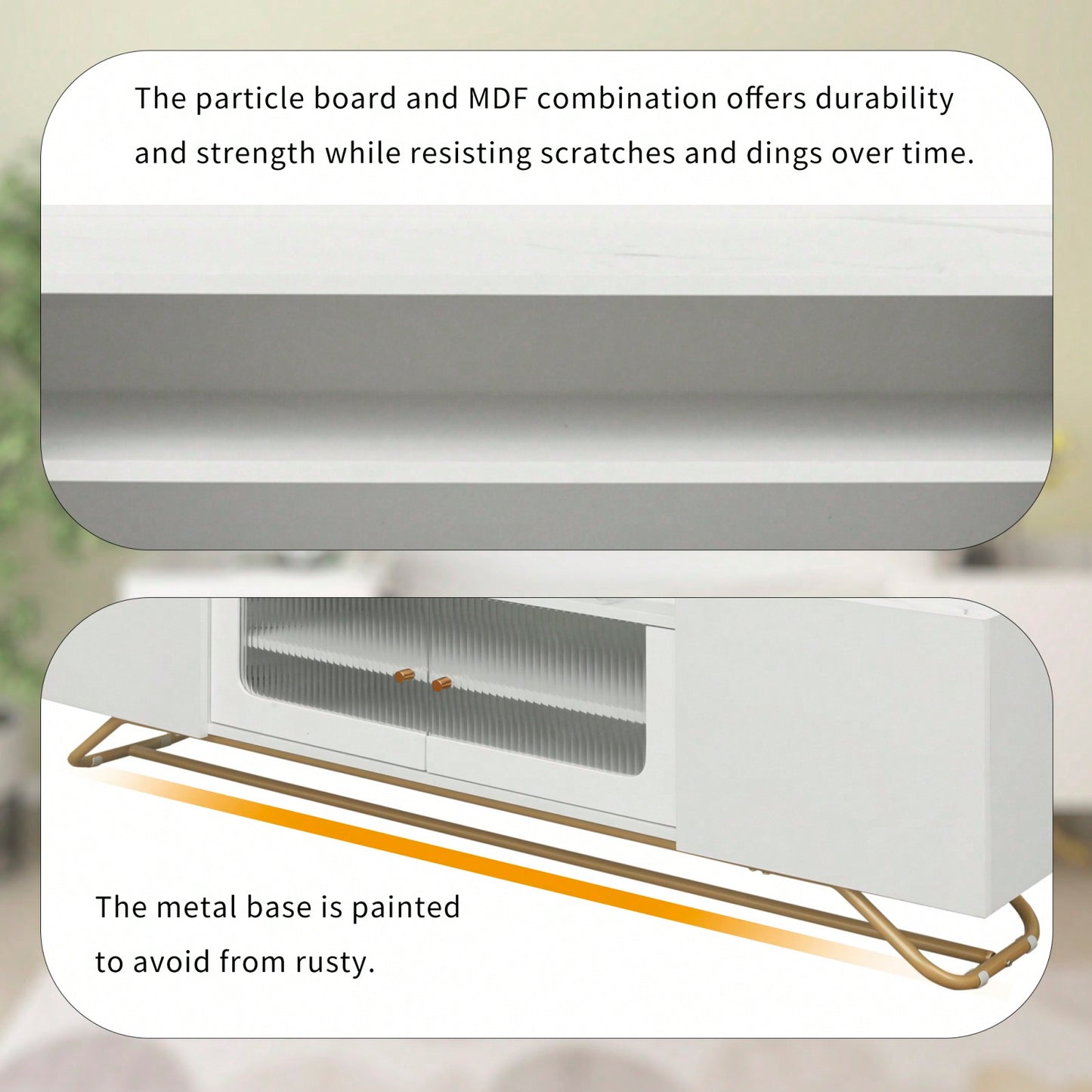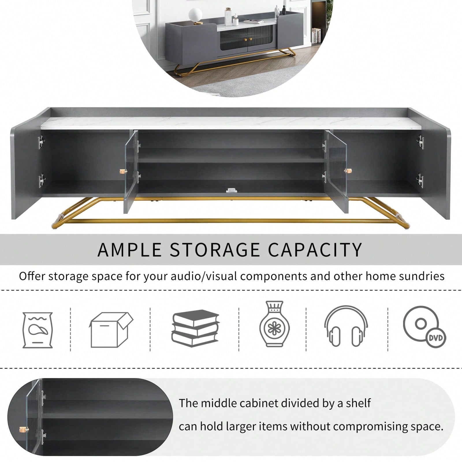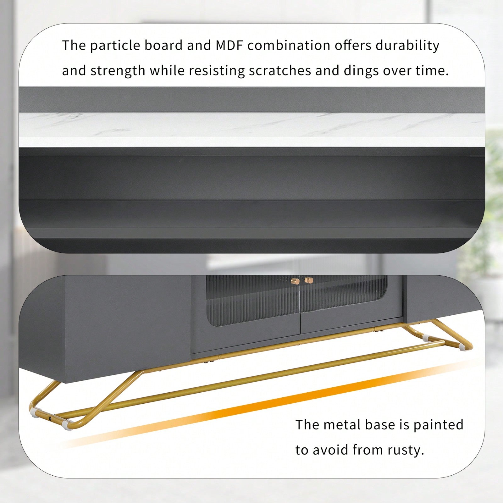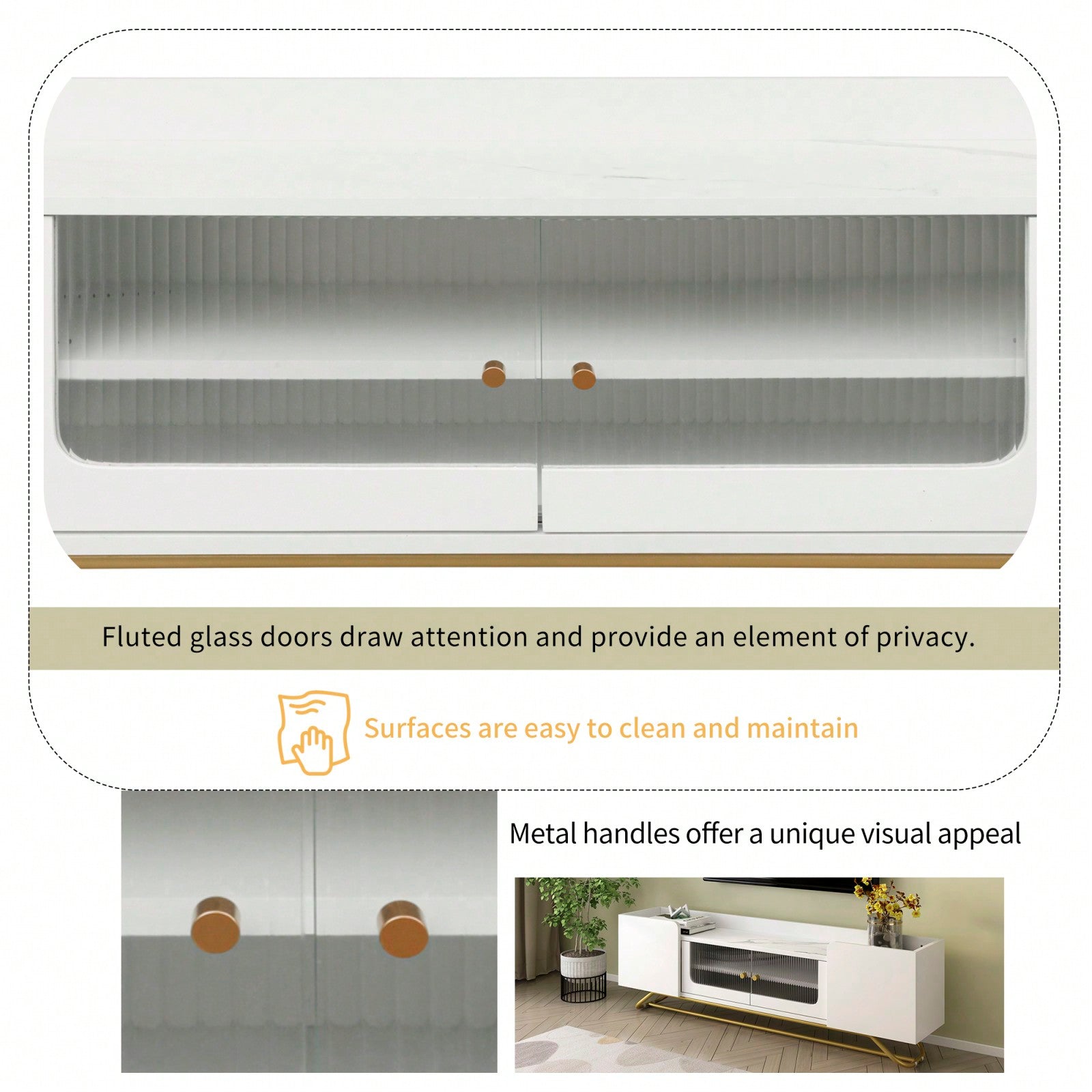 Contemporary TV Stand with Fluted Glass Doors and Faux Marble Top for TVs Up to 70 Inches Stylish Entertainment Center