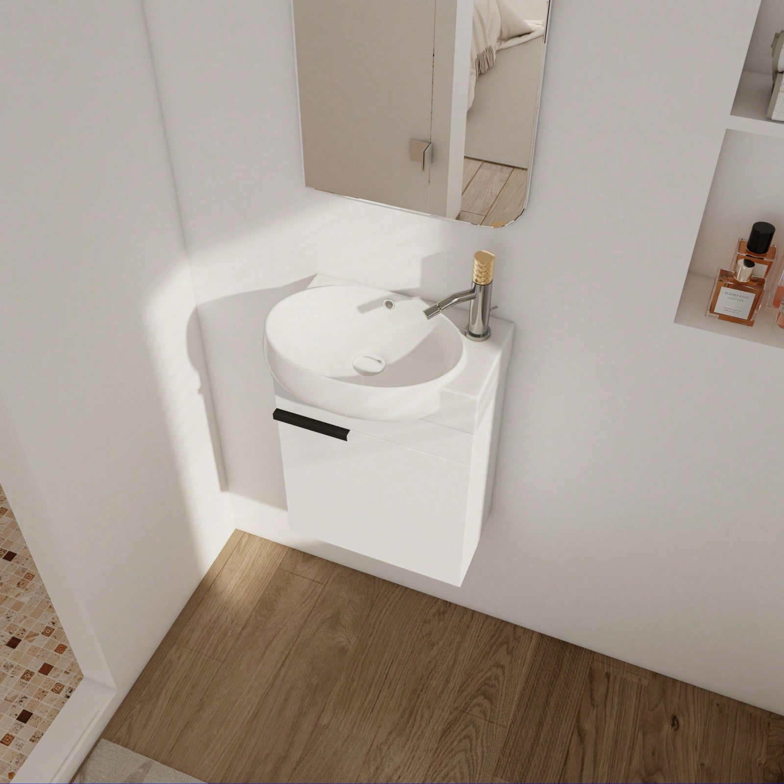 - Vanity Base Material: Plywood with Melamine Surface