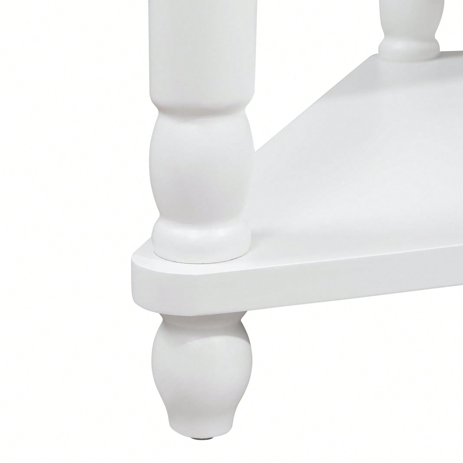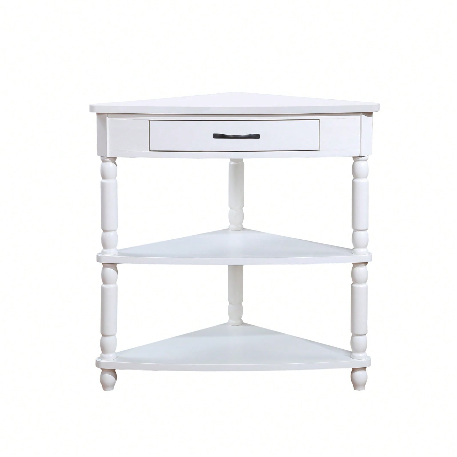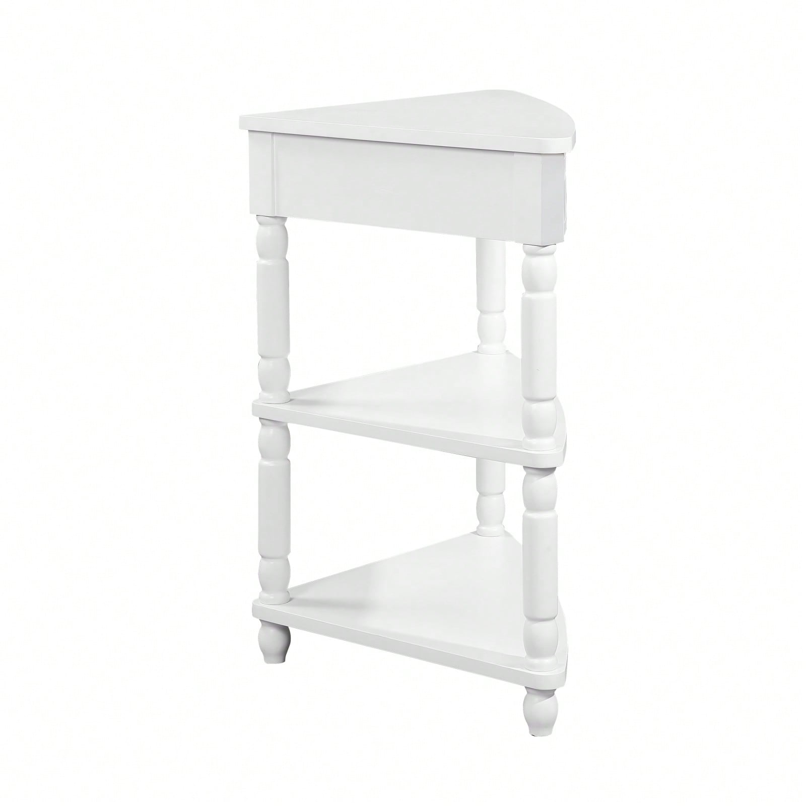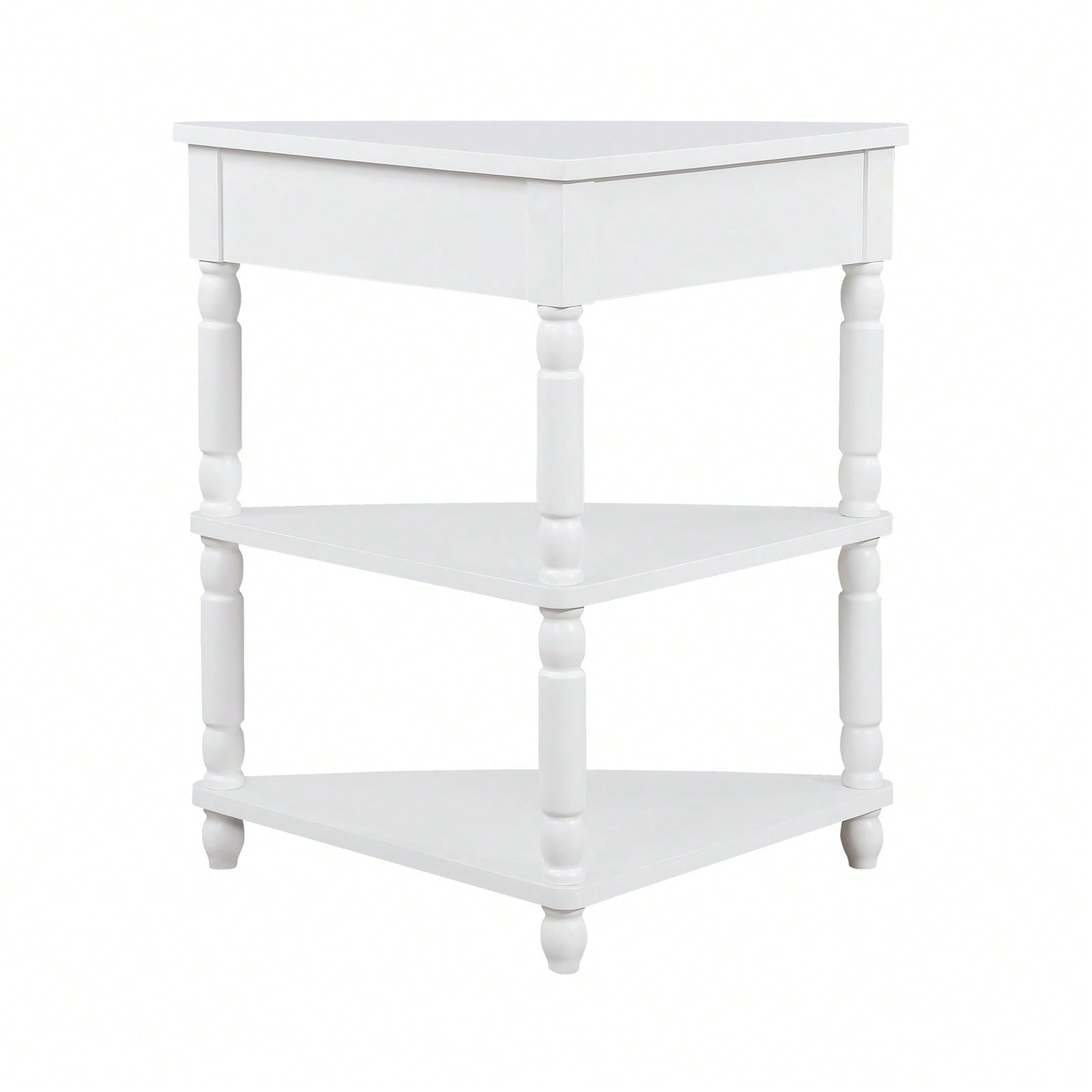 Small Triangle Corner Table with 3 Tiers Solid Wood Legs Space Saving Design Waterproof Milk White Finish