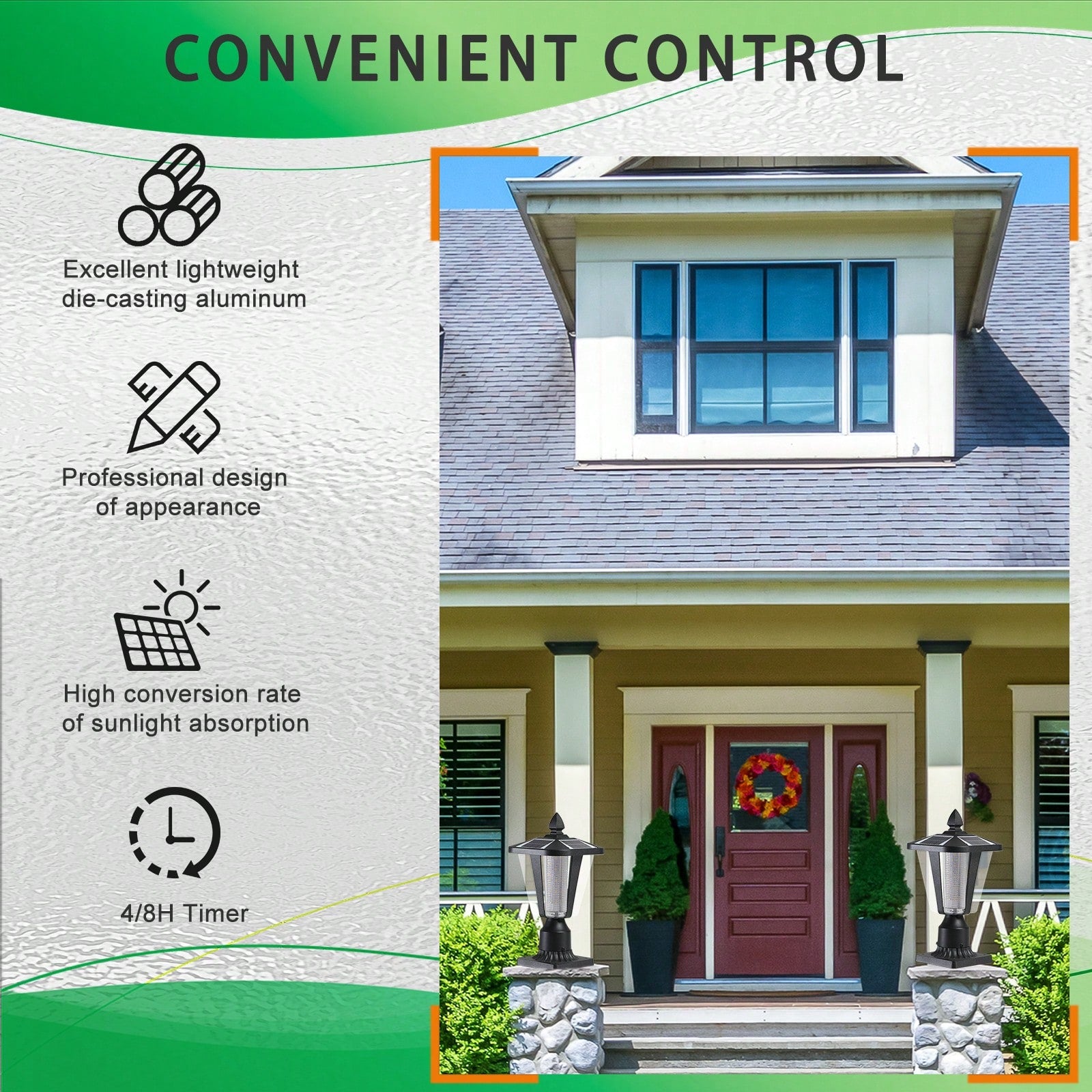The solar column headlights are designed to enhance outdoor spaces with their elegant appearance and efficient functionality. Powered entirely by solar energy, these lights automatically charge during the day, turning on at dusk and off at dawn, providing hassle-free illumination. They effectively convert sunlight into electricity, ensuring that your garden or yard remains beautifully lit at night. The dimmable LED feature allows for adjustable brightness, catering to different lighting needs and preferences. These lights are perfect for various outdoor settings, adding a decorative touch while being friendly.