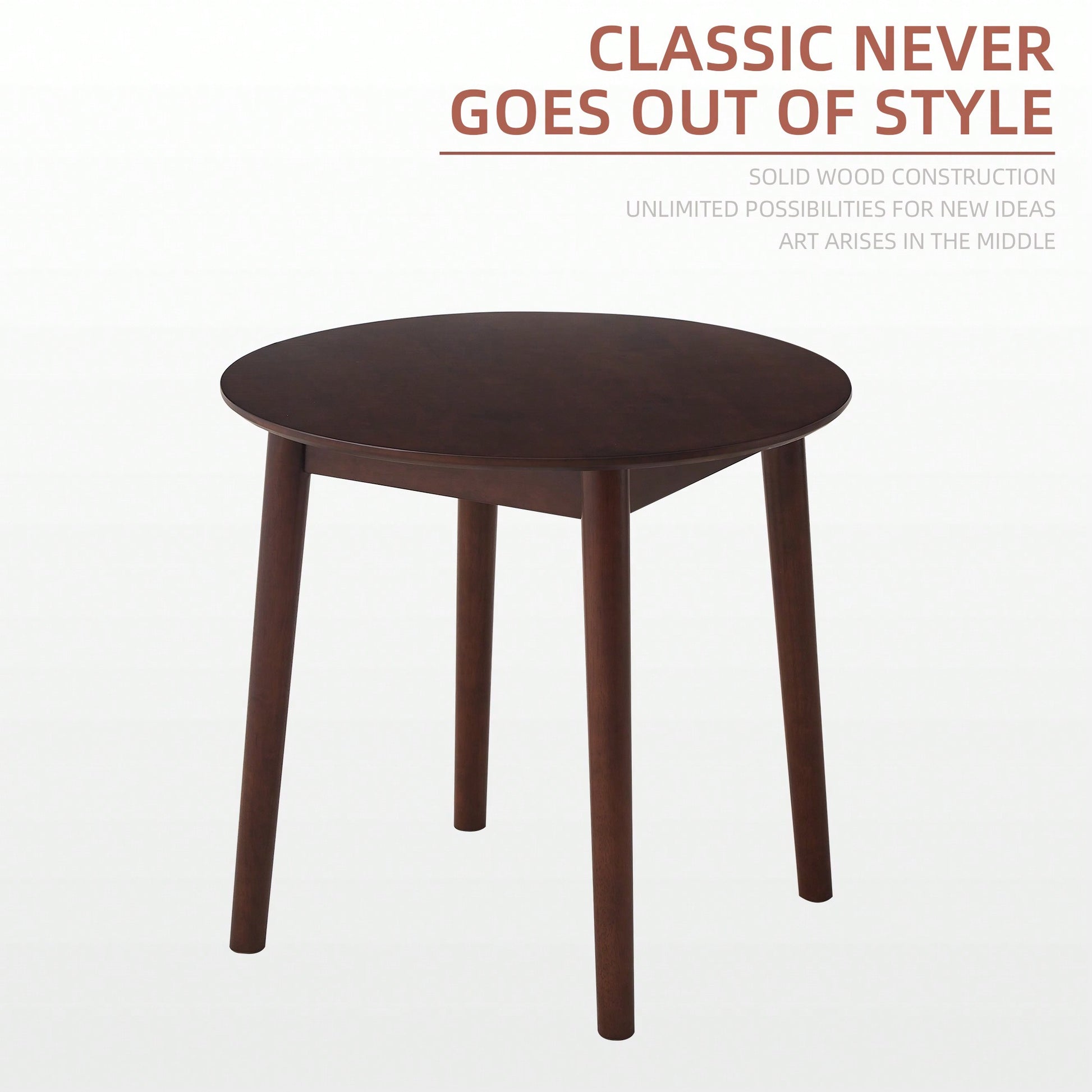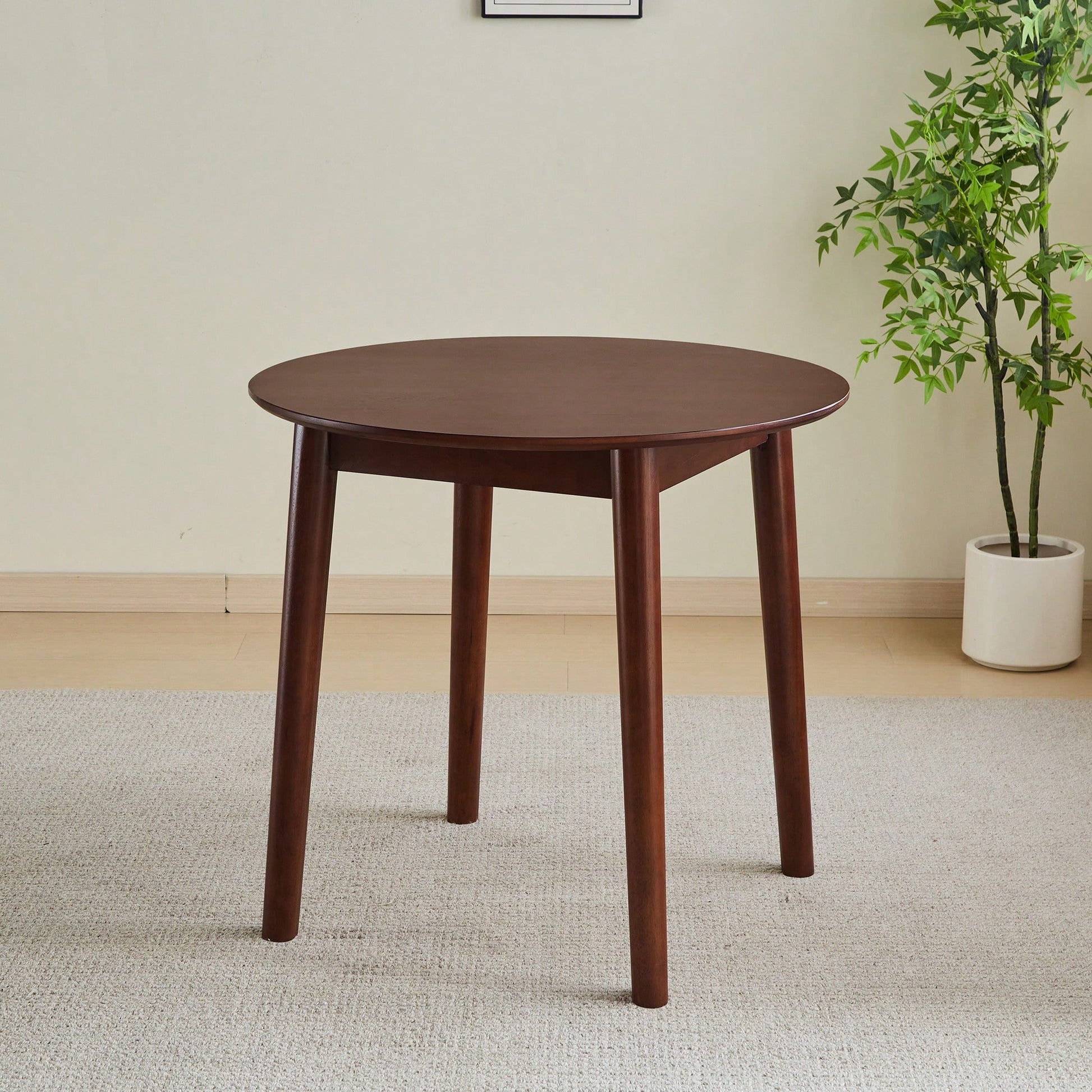 **Key Features** - Solid wood construction made from rubber wood - Diameter of 31.5 inches, suitable for 2-4 people - Sturdy four-legged design supports up to 200 pounds - Versatile use as a dining table or coffee table - Easy to install in under 10 minutes **Product Description** This round dining table is made from solid rubber wood, showcasing a beautiful natural wood grain that combines modern and rustic aesthetics. With a diameter of 31.5 inches, it is perfect for small family gatherings or intimate dining experiences, comfortably seating 2-4 people. The table features a stable four-legged structure that can hold up to 200 pounds of evenly distributed weight, making it durable for everyday use. Its compact design allows it to fit into various spaces, whether in a dining area, lounge, or office. The table is equipped with non-slip pads to prevent floor scratches and ensure stability. Cleaning is effortless, as the smooth wooden surface can be wiped down with a cloth. **Specifications** - Material: Rubber wood - Diameter: 31.5 inches - Seating Capacity: 2-4 people - Weight Capacity: 200 pounds - Assembly Time: Less than 10 minutes
