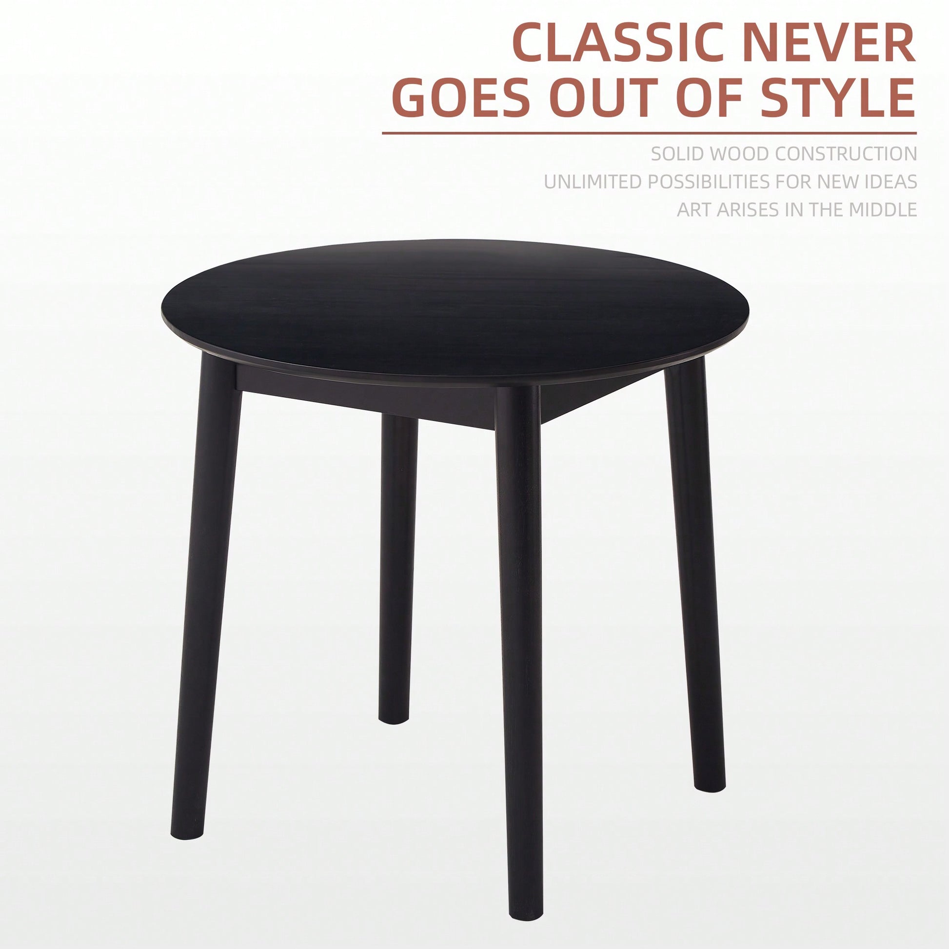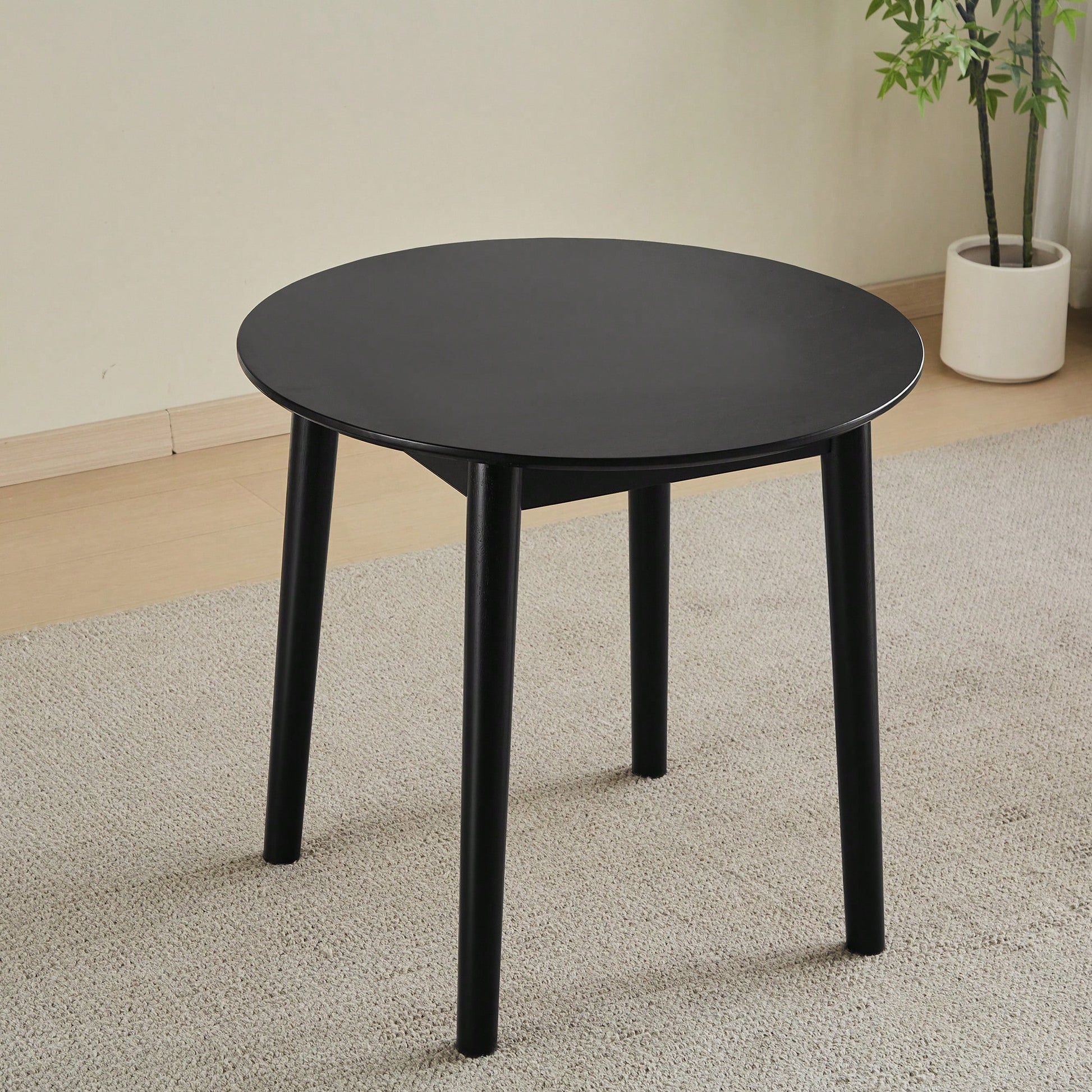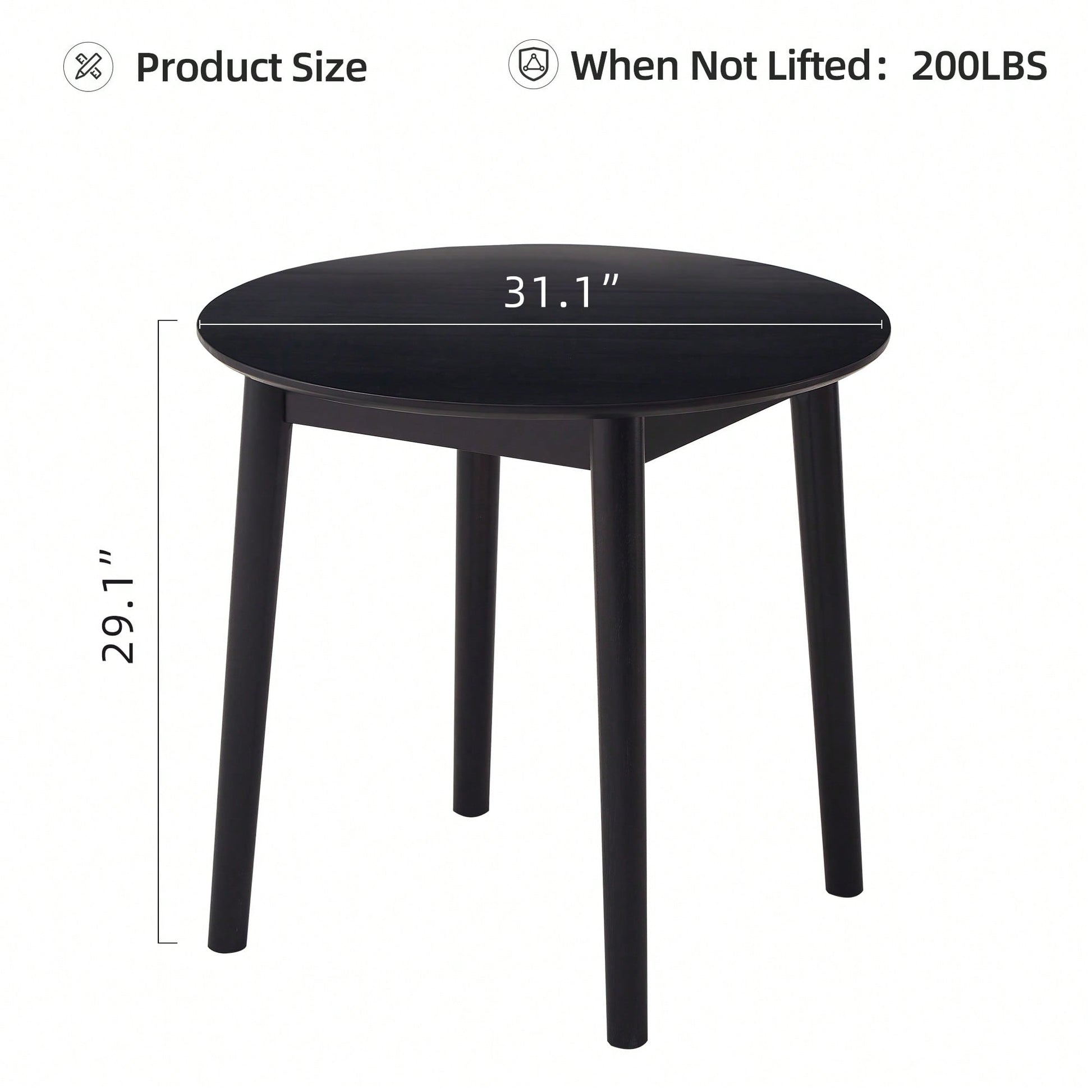 Solid Wood Black Round Table For 2-4 People 31.5 Inch Diameter
