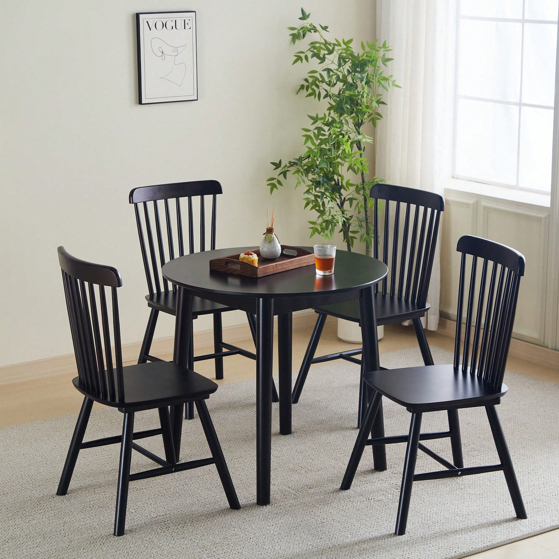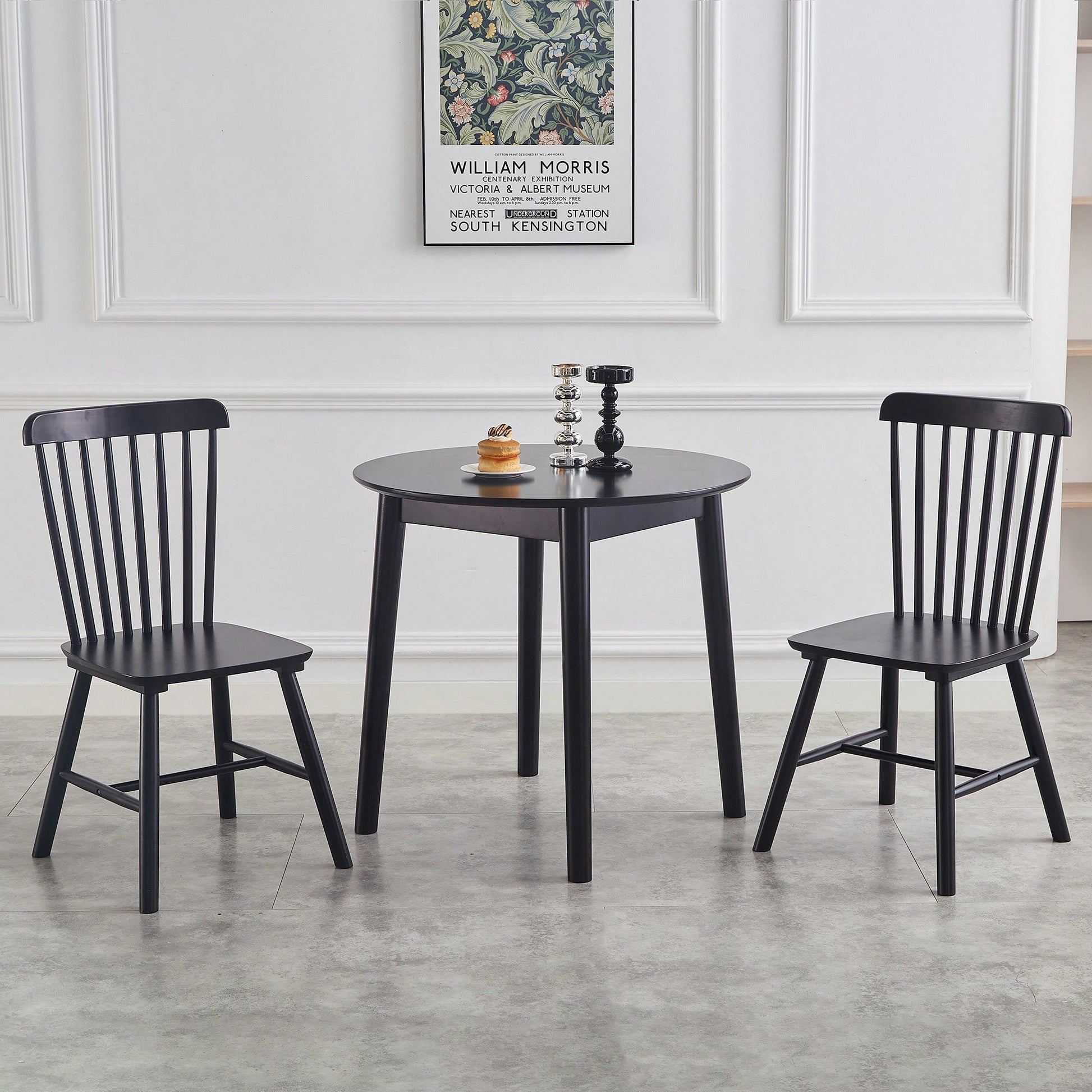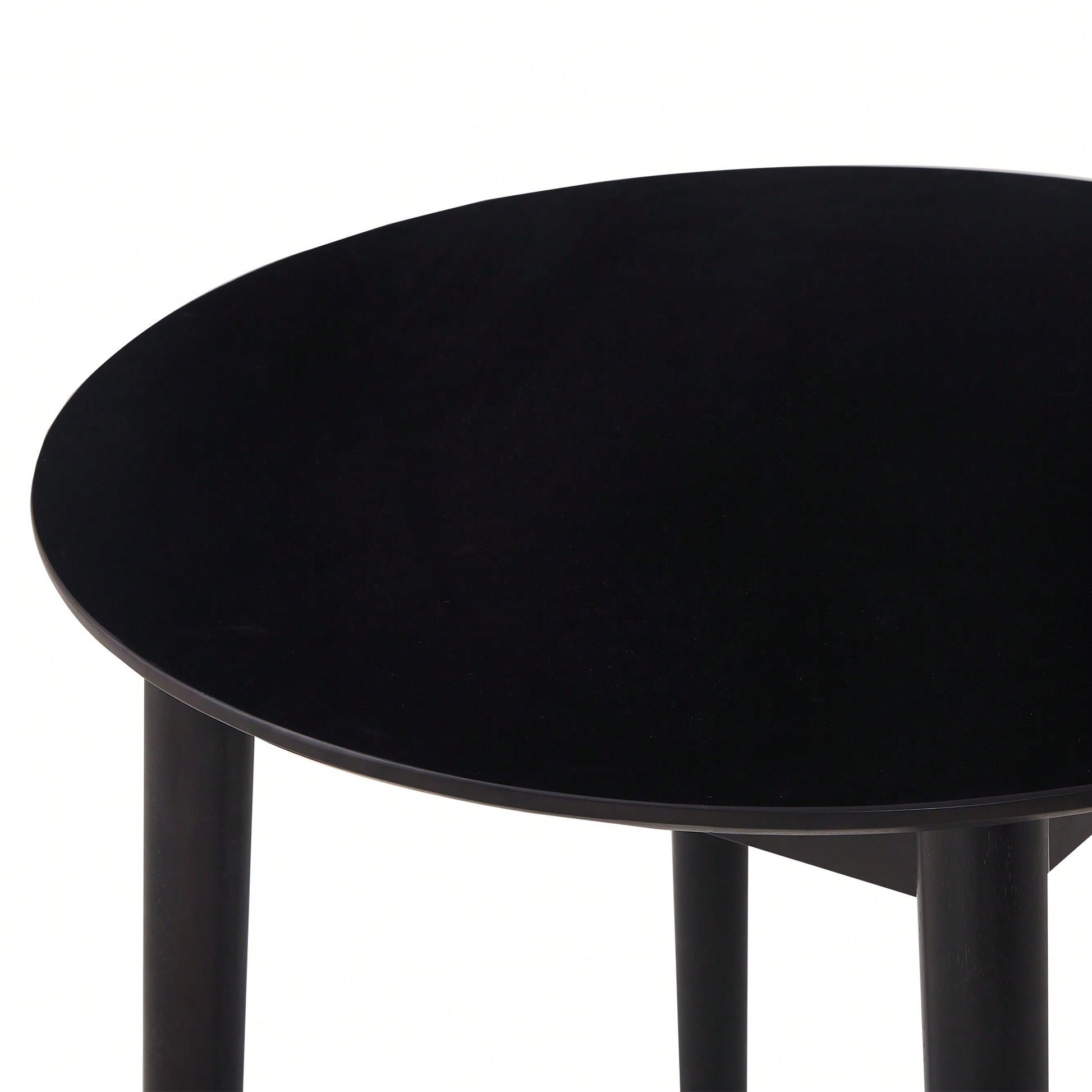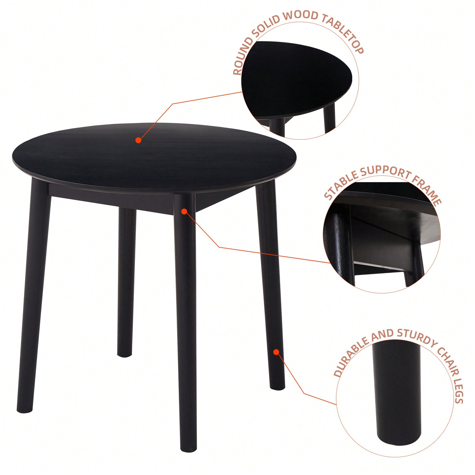 Solid Wood Black Round Table For 2-4 People 31.5 Inch Diameter