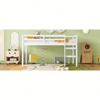 **Key Features** - Ample space underneath for storage, perfect for toys, bookshelves, and cushions - Low height design enhances stability and reduces safety concerns - Wider ladder steps for easier access and solid support - Crafted from premium rubber wood and composite wood for durability - High guard rails for added safety **Product Description** This solid wooden twin loft bed features a sleek grey finish and is designed to maximize space in your bedroom. The generous area beneath the bed is ideal for storage and organization, allowing for a neat and tidy environment. Its low height design ensures stability and safety, while the wider ladder steps provide ease of access. Constructed from high-quality rubber wood and composite wood, this loft bed is built to last, with a sturdy structure supported by 13 poplar plywood slats. The contemporary minimalistic design fits seamlessly into any decor, and a variety of classic colors are available to match your style. Assembly is straightforward with all necessary hardware and instructions included. **Specifications** - Material: Rubber wood, composite wood, poplar plywood slats - Bed Type: Twin loft bed - Color: Grey (various colors available) - Safety Features: High guard rails, low height design - Assembly: Easy, with manual and hardware included