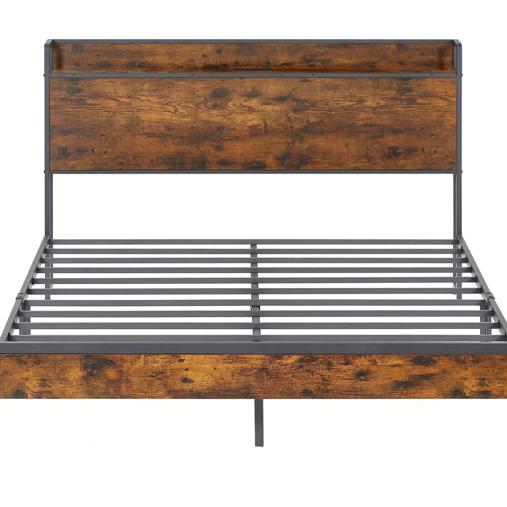 Queen Size Bed Frame with Storage Headboard Charging Station and Drawers Easy Assembly No Box Spring Needed
