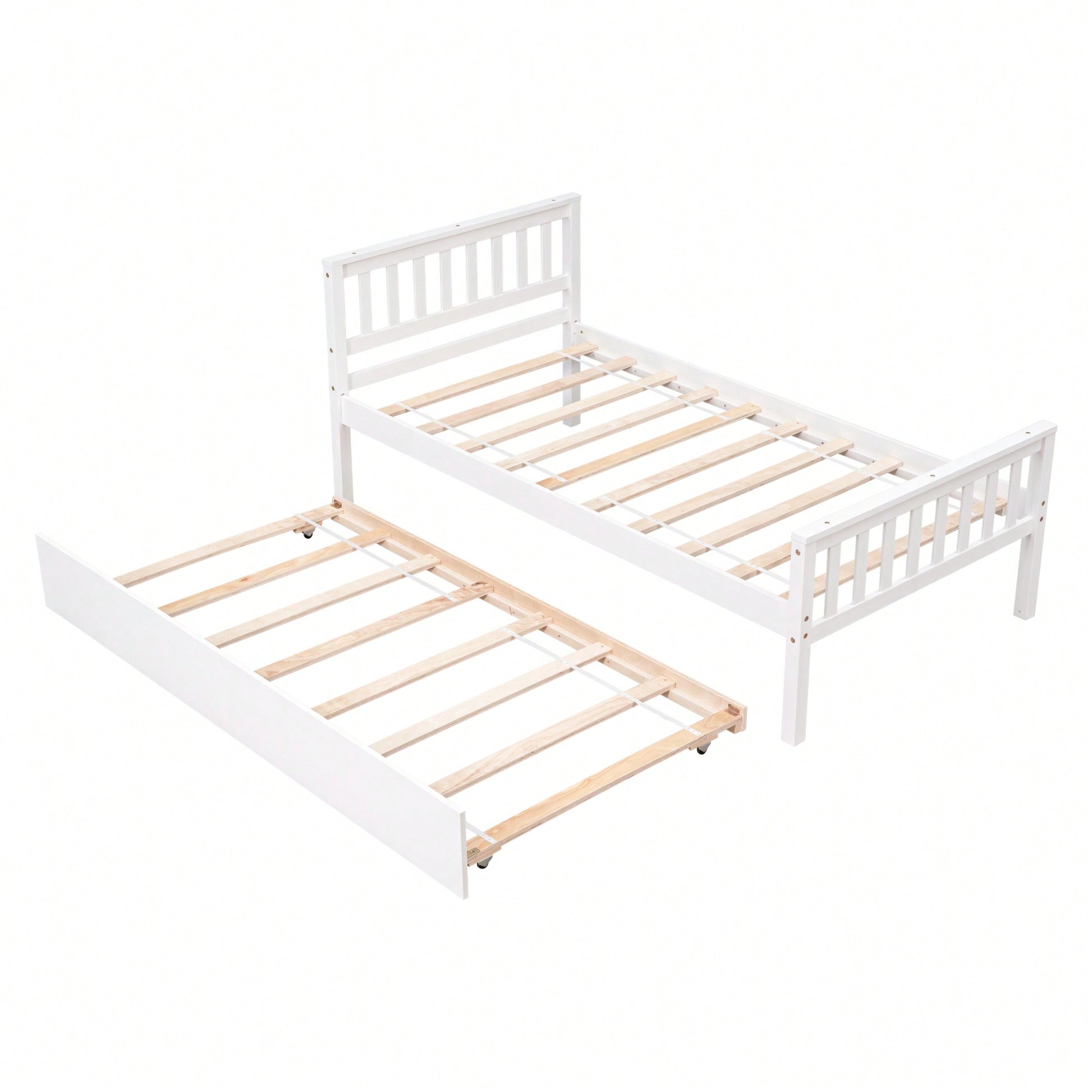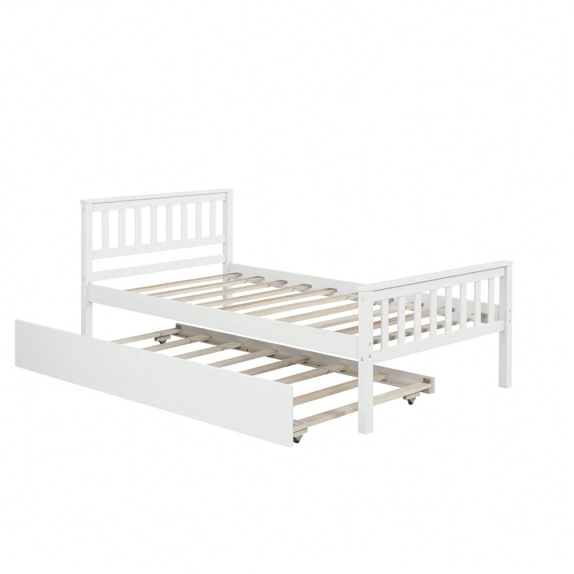Space-Saving Twin Bed With Trundle And Headboard, No Box Spring Required, Ideal For Small Bedrooms And Living Spaces, White Finish