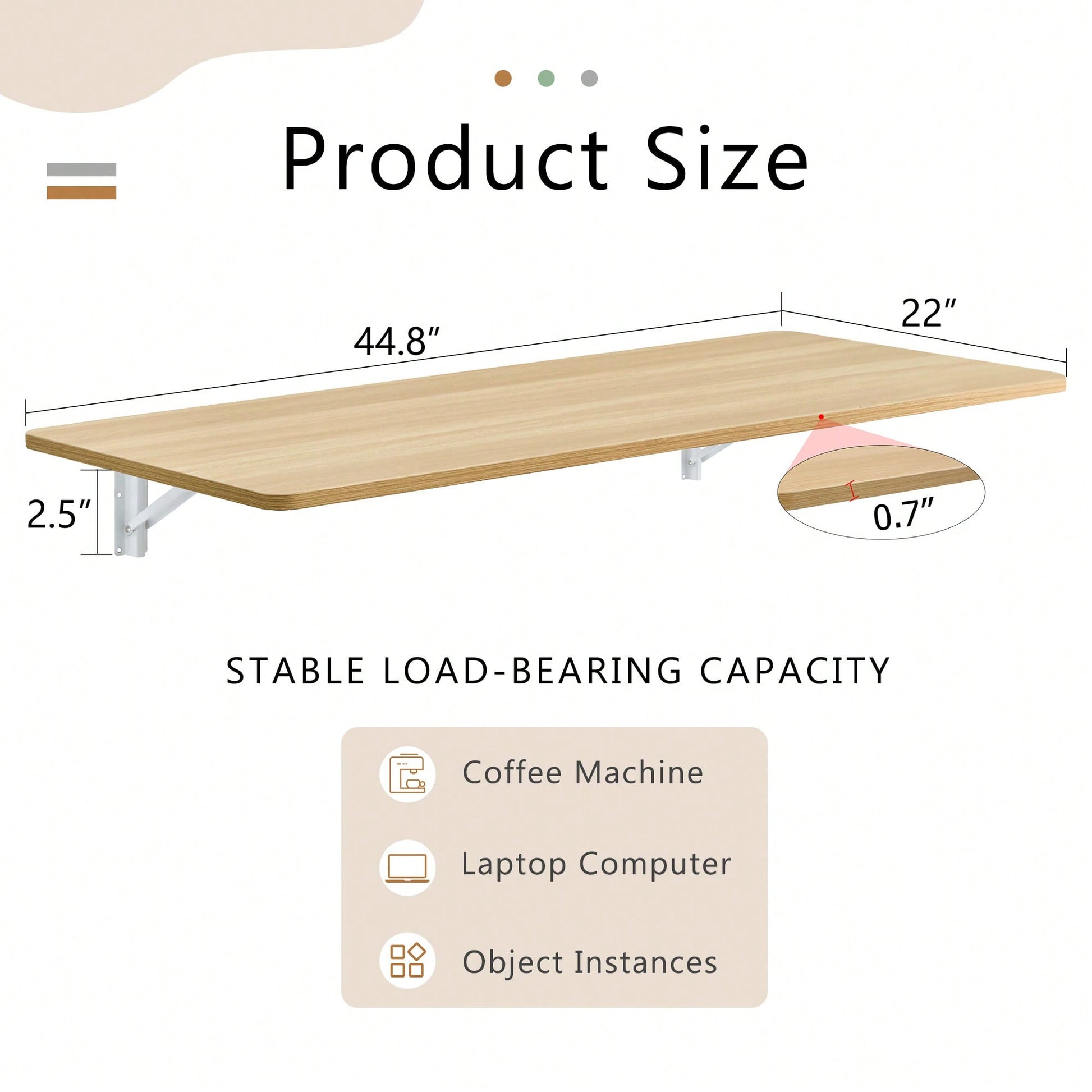 This wall-mounted folding table is the perfect solution for maximizing space in your home. Designed for small areas, it easily folds up for use and down for storage, making it ideal for garages, laundry rooms, home offices, and kitchens. Built with durable 14-gauge cold-rolled steel brackets, it can support heavy use and has a high weight capacity of up to 100 lbs. The elegant minimalist design seamlessly integrates into any decor, while the friendly, formaldehyde-free wood ensures a safe environment. With smooth rounded corners, it adds an extra layer of safety for your home.