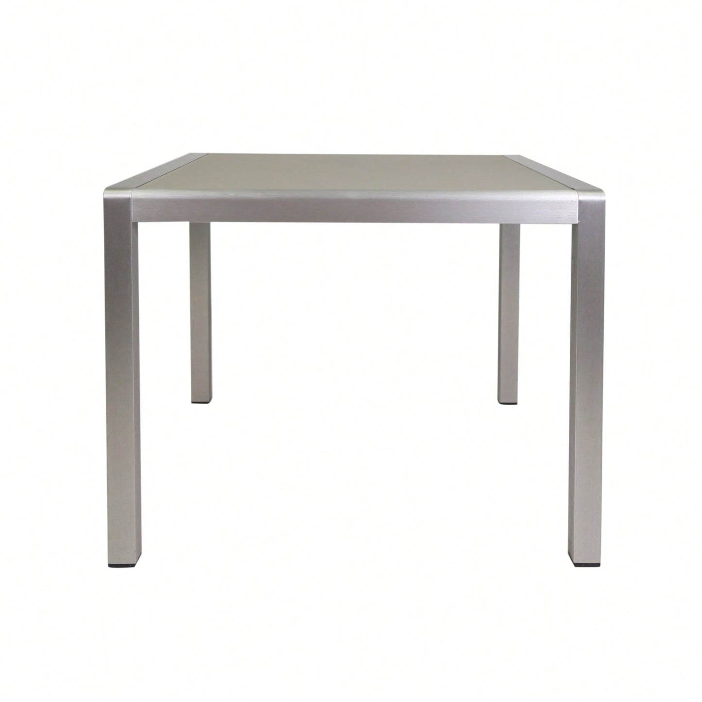 Square Outdoor Dining Table With Anodized Aluminum Frame And Tempered Glass Top 35 Inches Silver And Gray