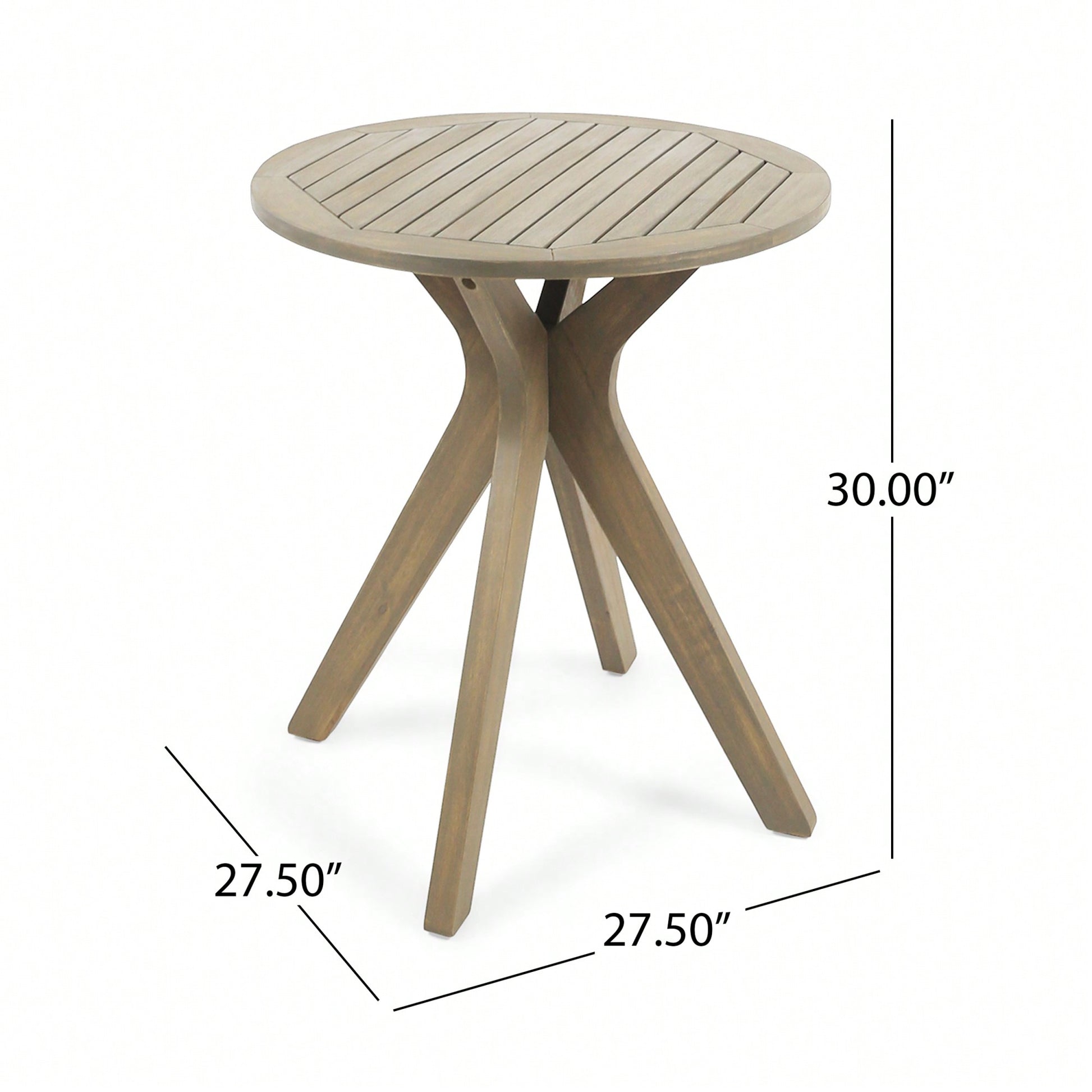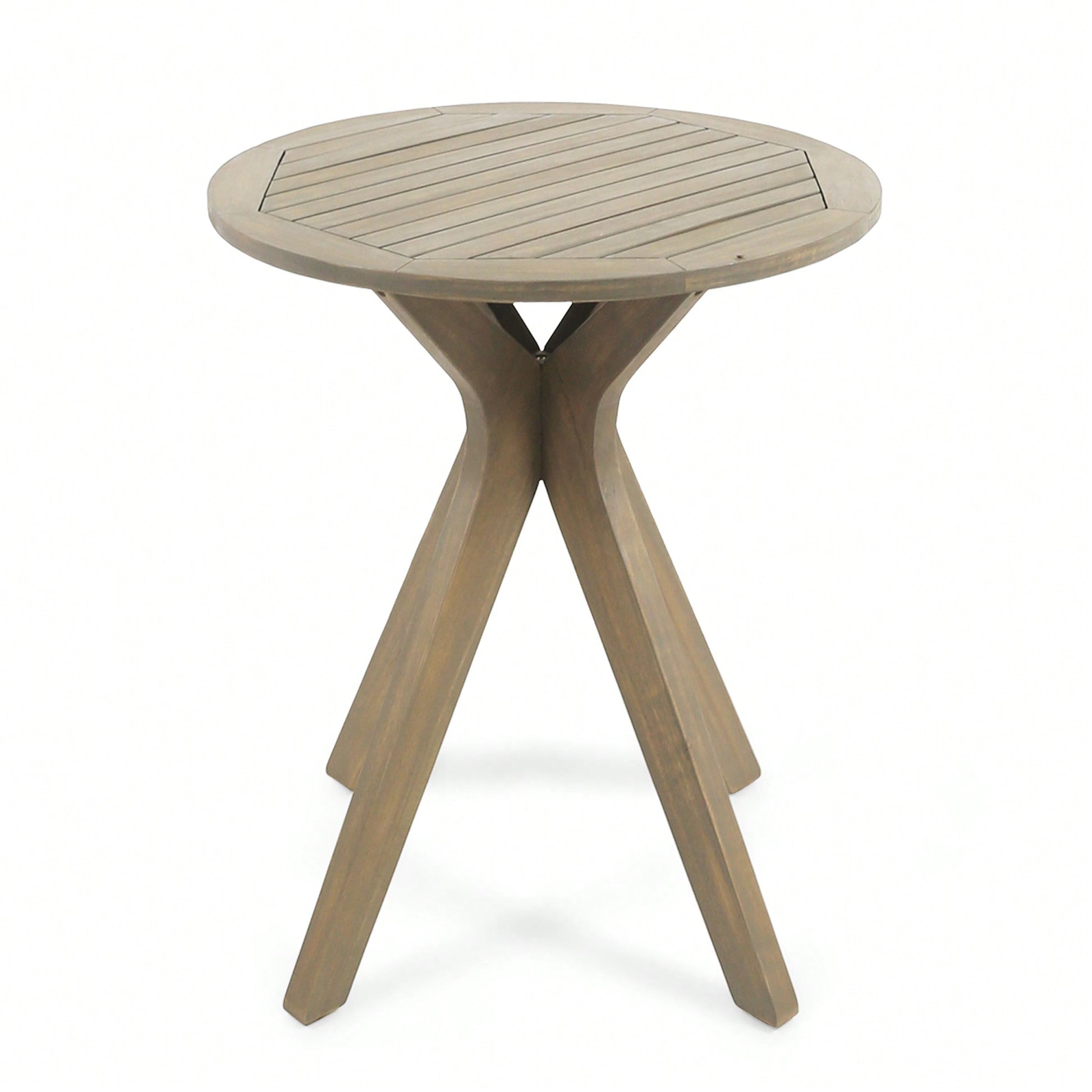 This bistro table is designed to elevate your outdoor dining experience, whether you're hosting a barbeque or enjoying a quiet evening meal. Made from beautiful acacia wood, it showcases a slat-panel construction that adds a touch of sophistication to your backyard or patio. The round table top allows for easy conversation and dining, while the sturdy cross-base ensures stability on various surfaces. With its rustic charm, this table can seamlessly fit into any outdoor decor, making it the perfect addition to your space.