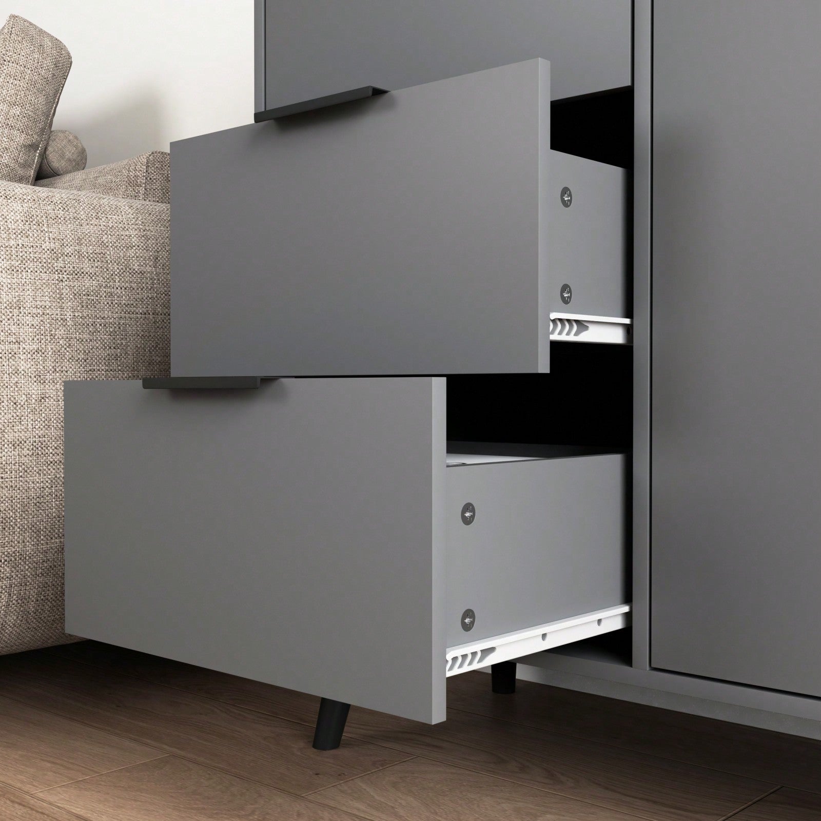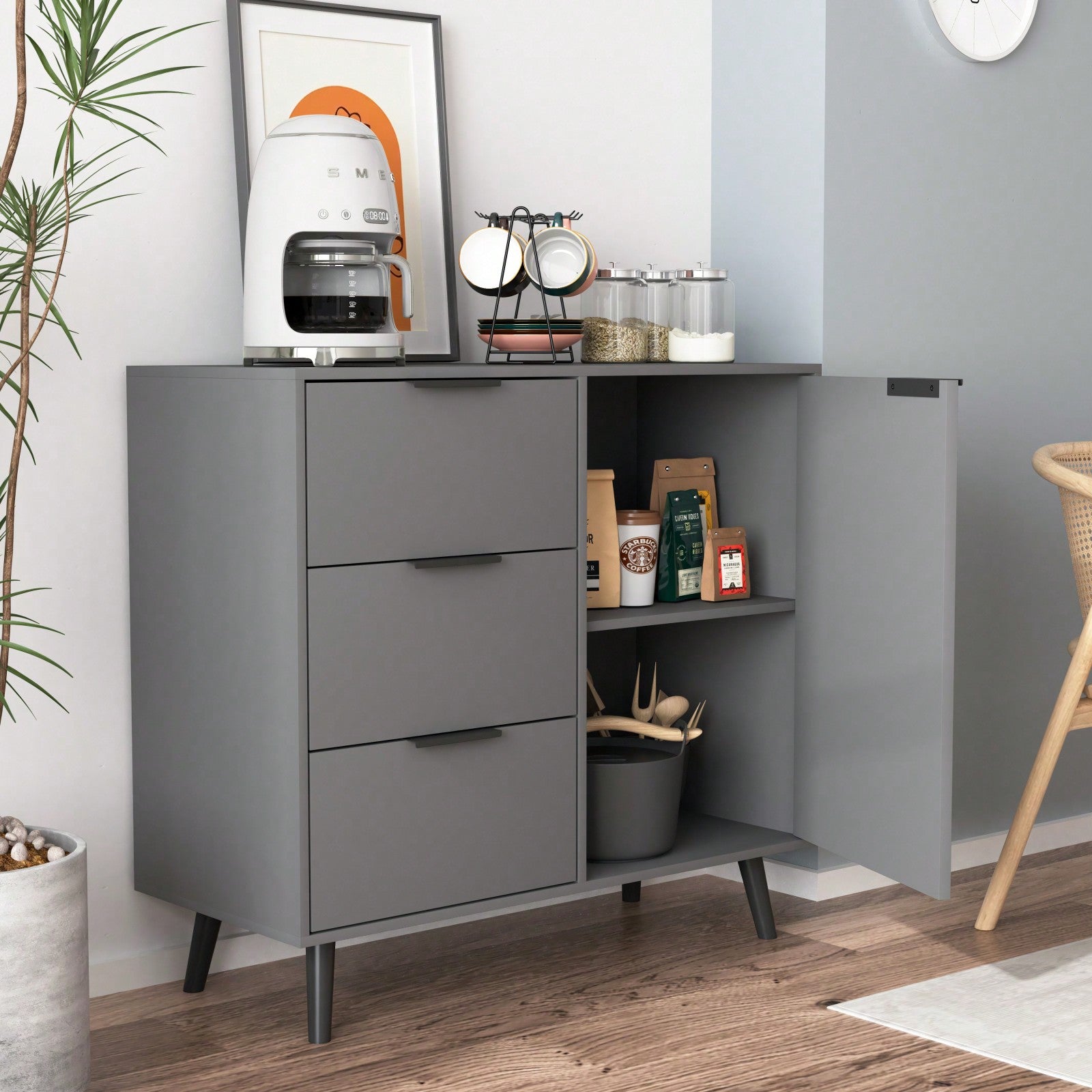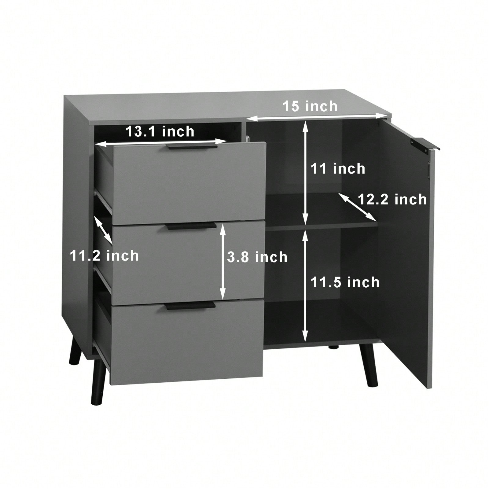 Storage Cabinet With 3 Drawers & Adjustable Shelf, Mid Century Cabinet With Door, Accent Cabinet For Living Room, Home Office, Entryway