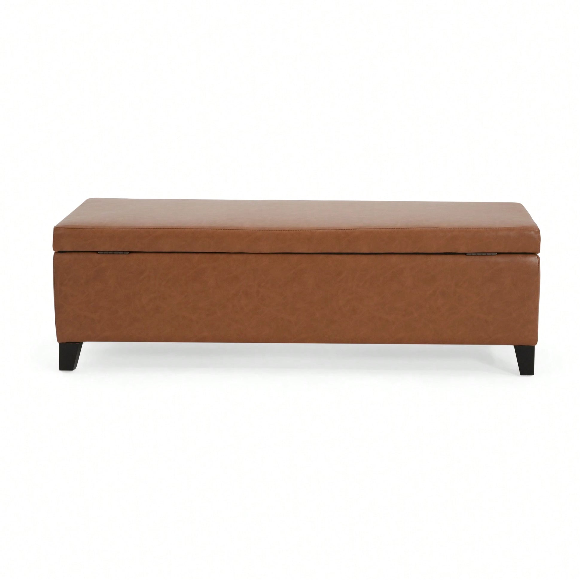 1. Features - Faux leather upholstery for a sophisticated look - Dense foam padding and pocket coil spring system for maximum comfort - Ample storage space with pressure hinges for easy access - Durable plywood and wood construction with non-marking foot caps - Versatile use as an ottoman, coffee table, footstool, or extra seating 2. Product Description Transform your living room with this stylish faux leather rectangle ottoman. Combining minimalist elegance with a sleek design, it offers luxury seating thanks to its dense foam padding and pocket coil spring system. Built to last, the ottoman features durable plywood and wood construction, supported by sturdy birch wood legs that enhance its contemporary appeal. With ample storage space and pressure hinges that keep the lid open, this multi-functional piece is perfect for any room, including the bedroom, living room, dining room, or entryway. Specifications - Material: Faux leather, plywood, wood, birch wood legs - Storage Type: Lid with pressure hinges - Assembly: Easy assembly required, only legs need to be attached