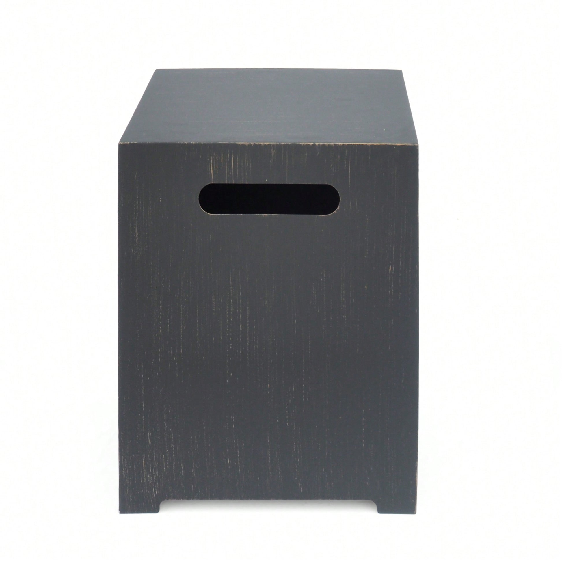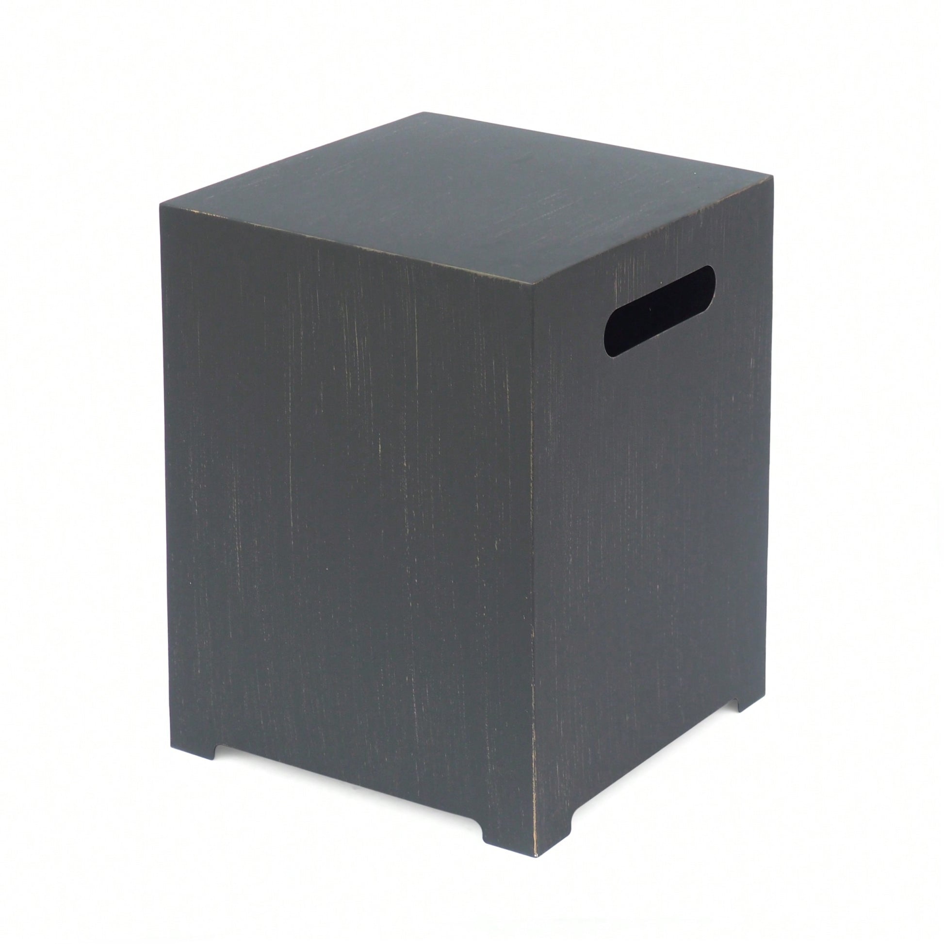 This stylish tank holder side table is the perfect addition to any modern interior. With its sleek and minimalistic design, it features a chic metal frame that not only offers an appealing aesthetic but also provides exceptional stability and structure. Its versatile nature allows it to function as a tank holder while seamlessly blending into your existing decor as a side table. Crafted from durable powder-coated iron, the frame is designed to withstand regular use and features a sophisticated dark gray finish for an understated charm. Measuring at 15.25 inches wide, 15.25 inches deep, and 19.75 inches high, it is the ideal size for enhancing your living space. Plus, there's no assembly required, making it a convenient choice that arrives ready to use.