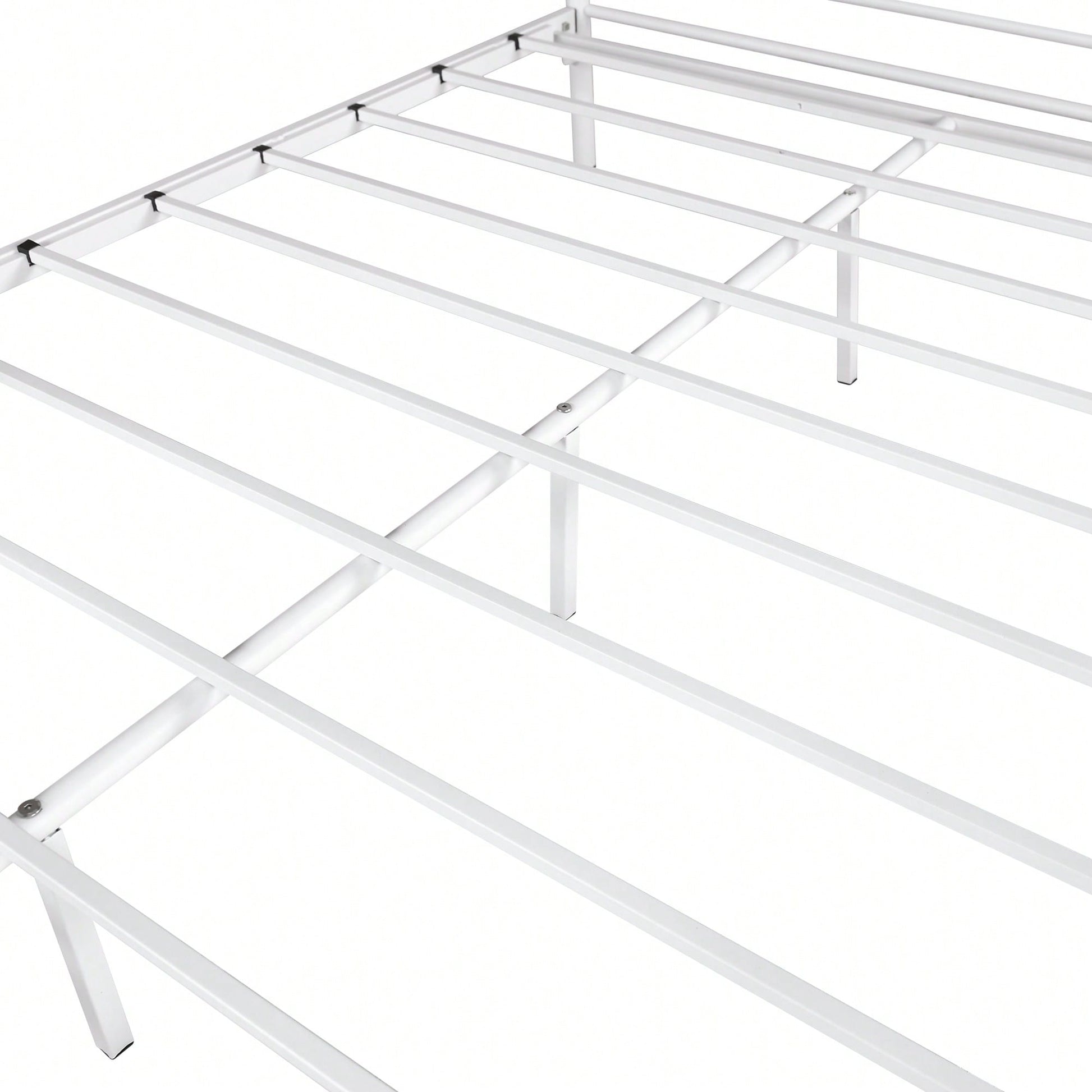 Sturdy Twin Over Full Metal Bunk Bed With Enhanced Guardrail Easy Assembly White Finish