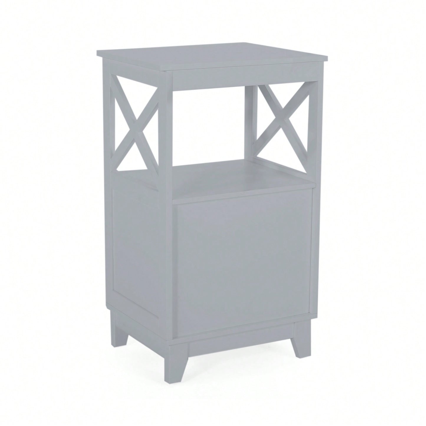 - Two drawers and an open shelf for organized storage