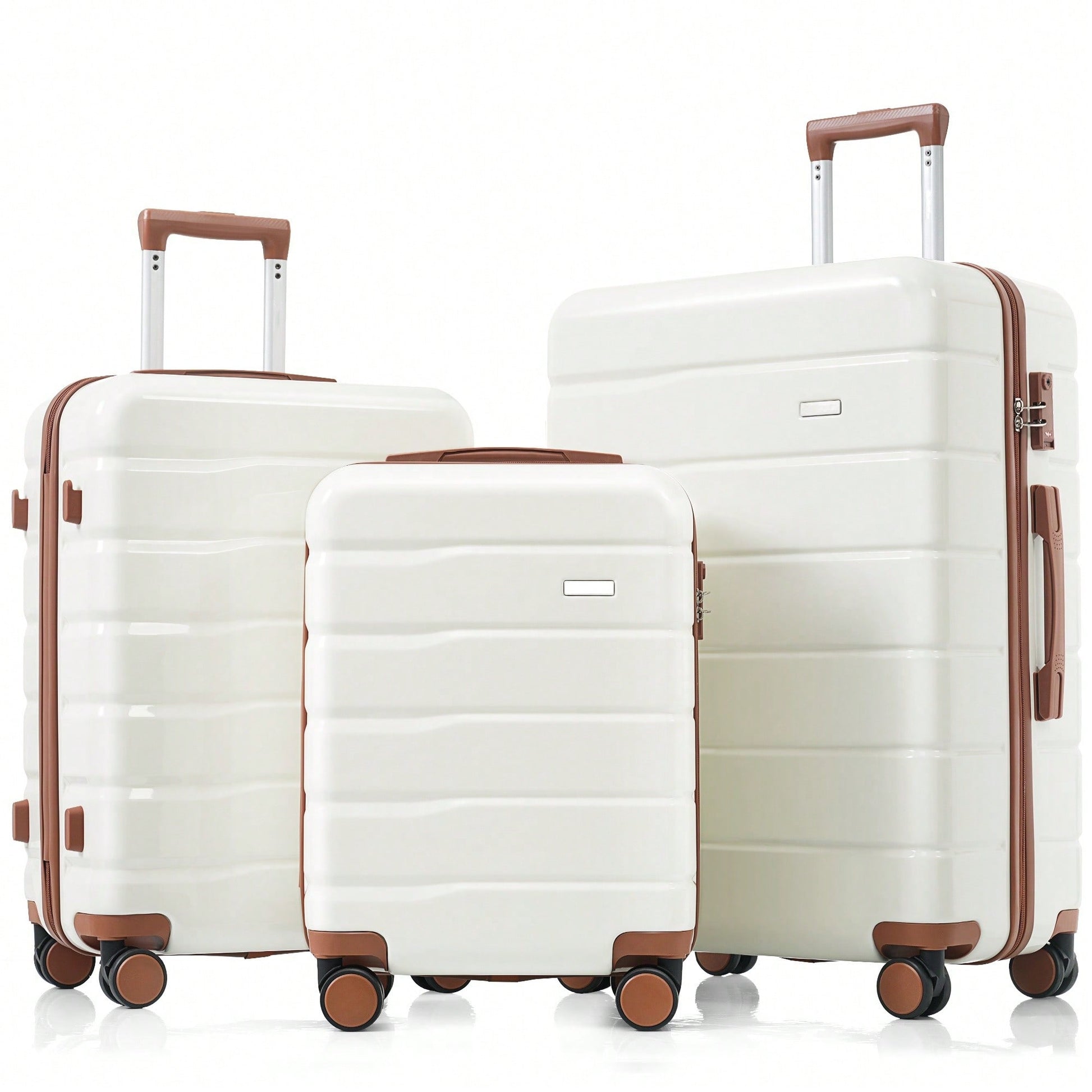 Premium 3-Piece White ABS Hard Shell Luggage Set with TSA Lock 20 24 28 Inch Spinner Wheels