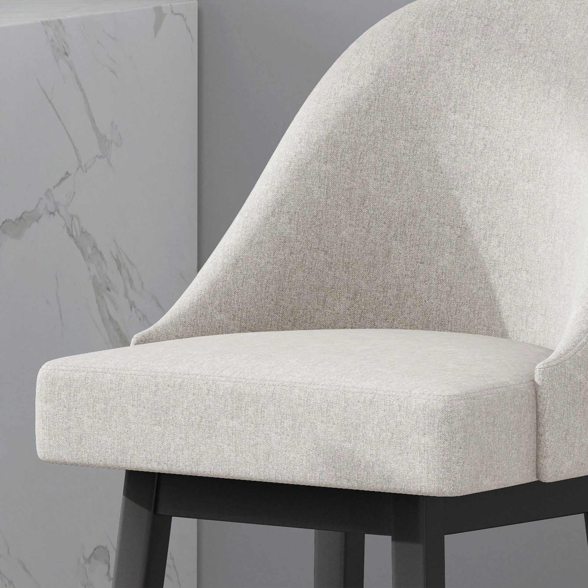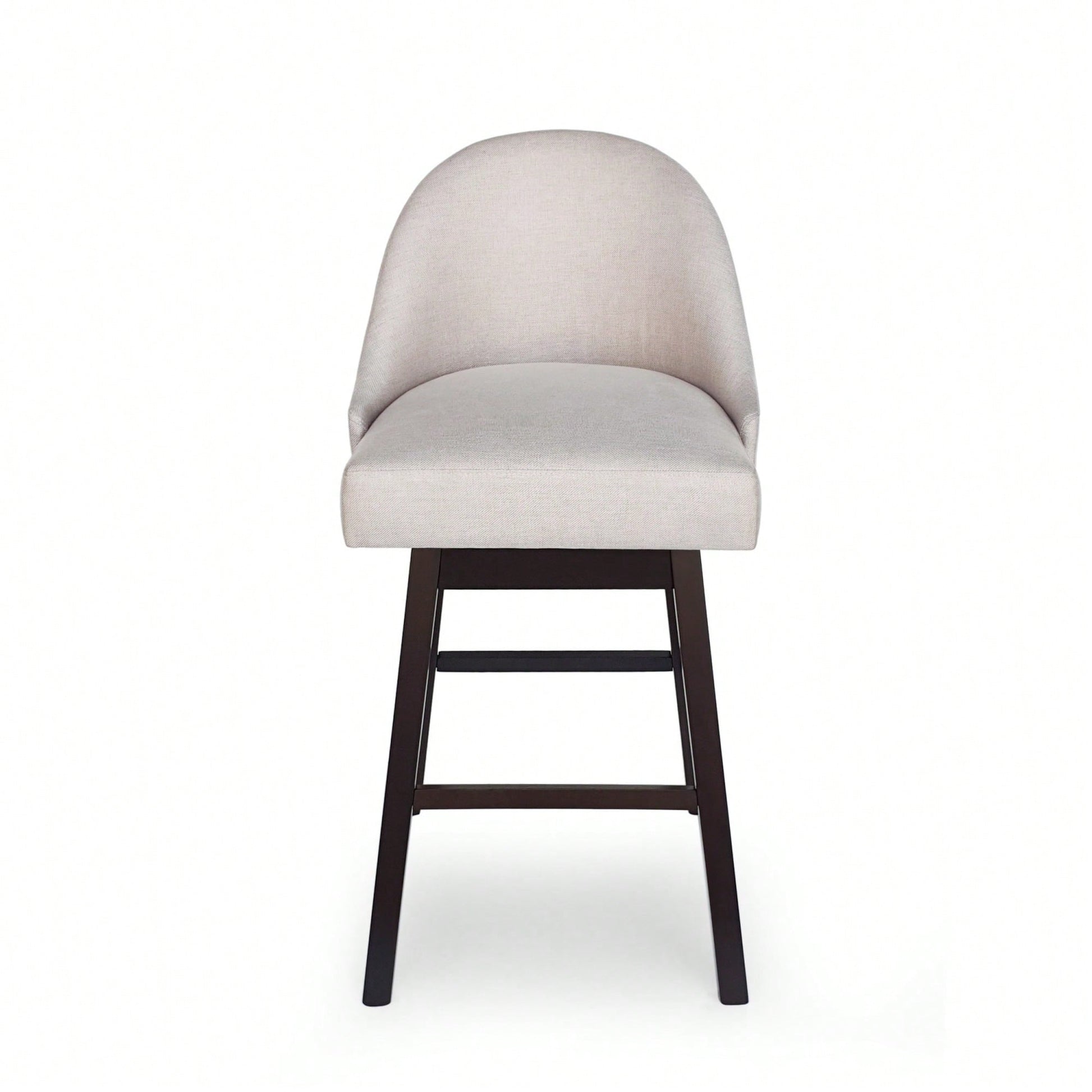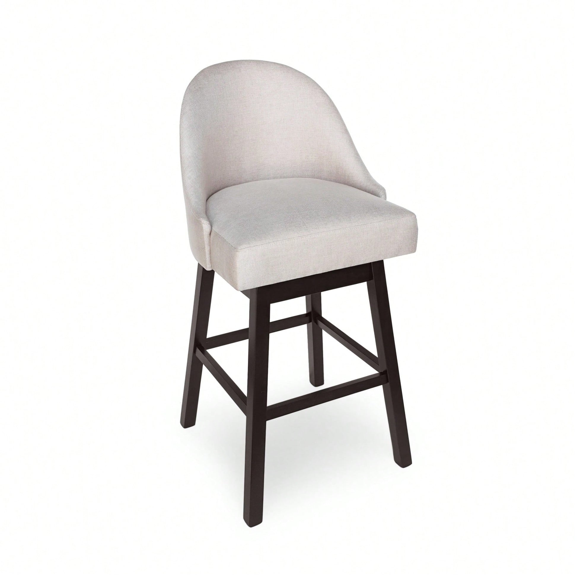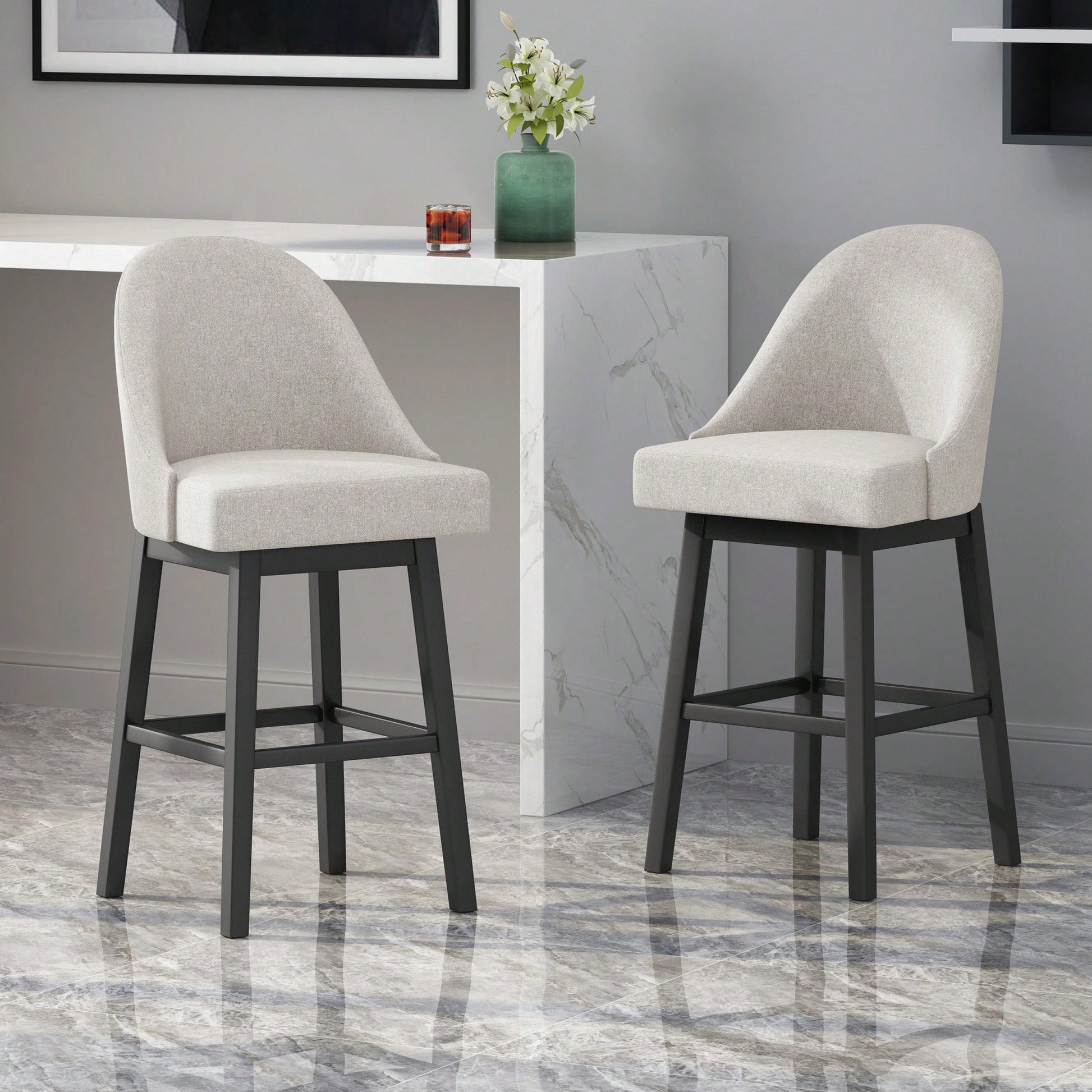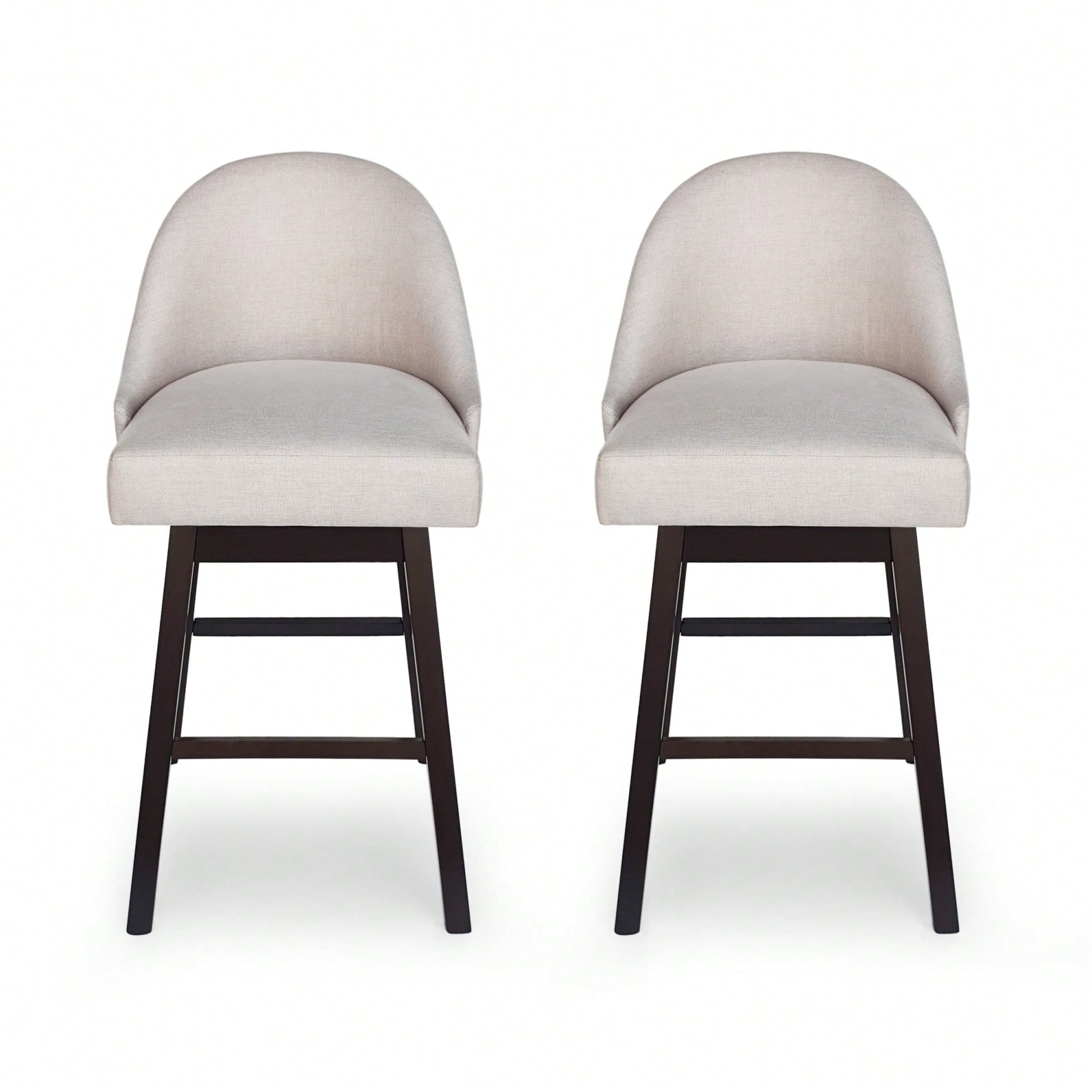 This set of bar stools embodies a modern design that enhances any interior space with its clean and precise lines. The stools are finished with high-quality upholstery and feature a rounded backrest, offering both a chic appearance and solid structure. The swivel function allows for effortless entry and exit from the seat, providing ultimate comfort in your kitchen or home bar.